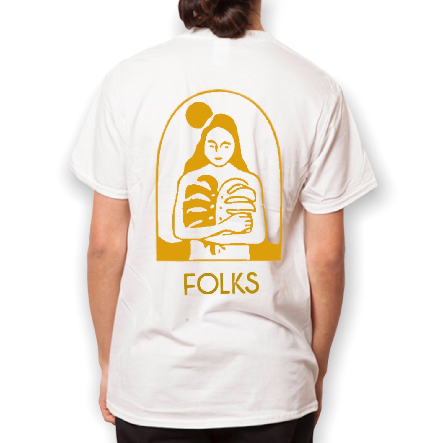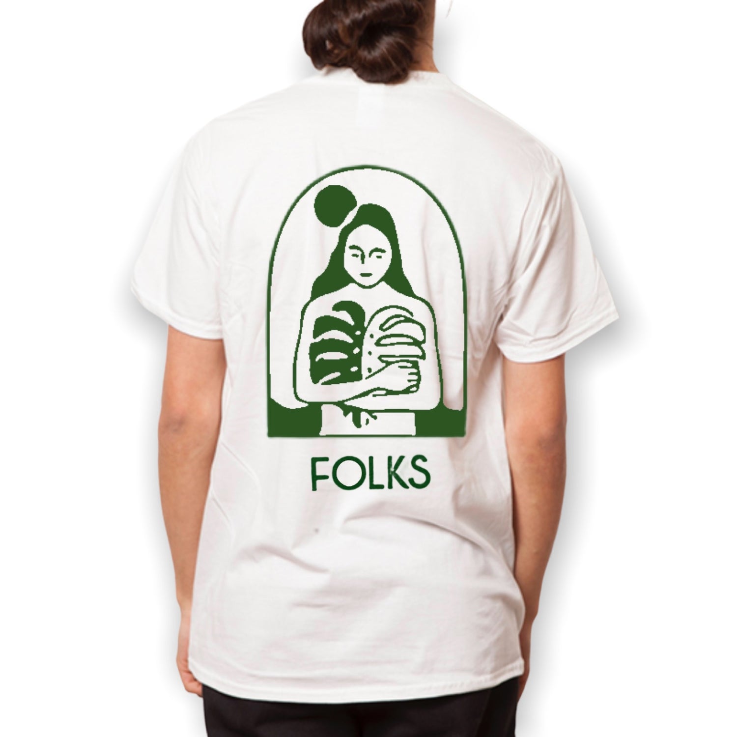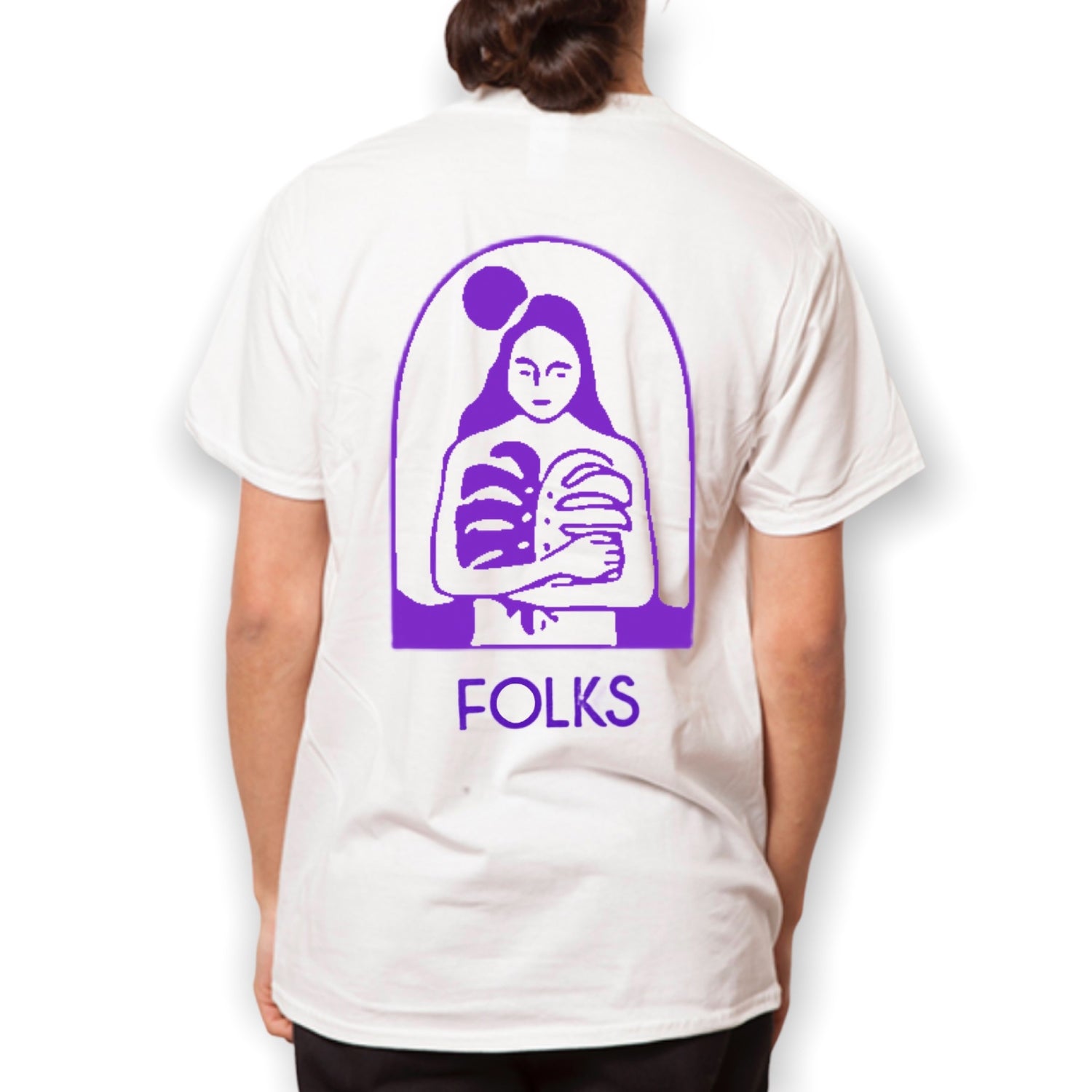 米国ポートランドの共通の友人を介して出会った、東京を中心に活動するアーティスト"ZAWAZAWA"さんに描いていただいたFOLKSロゴをバックにプリントしました。目の細かいコットンで編まれていますので、少しシットリとした質感でとても着心地の良いTシャツです。