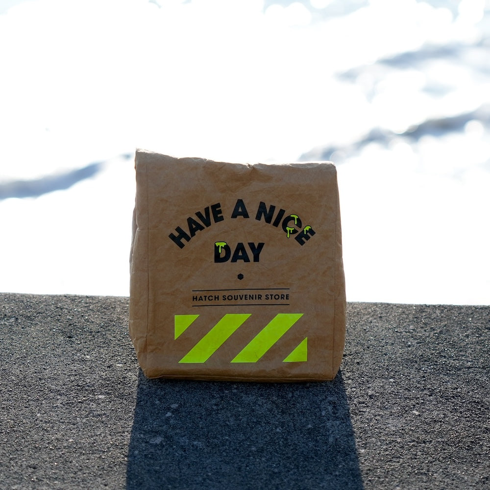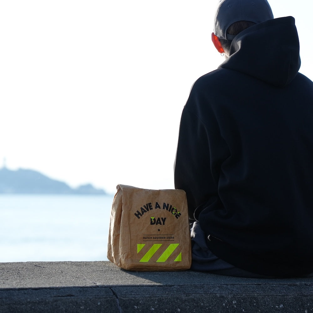 生地をアップデートしました。HATCHオリジナルの紙袋のような見た目のロールトップ仕様のバッグ。内部には保冷効果を持ったクッション性のある素材を使用。蓋にはマグネットがついていて開閉がしやすいです。保冷剤を入れてお使いください。真夏の車の中では保冷効果は弱まります。
