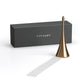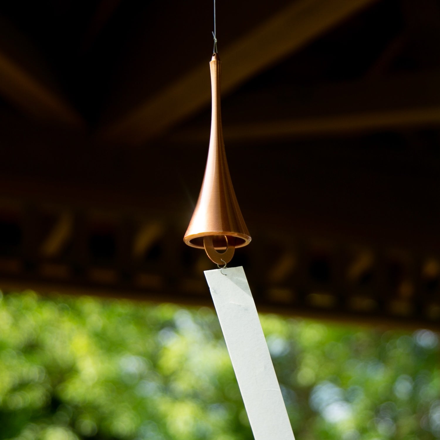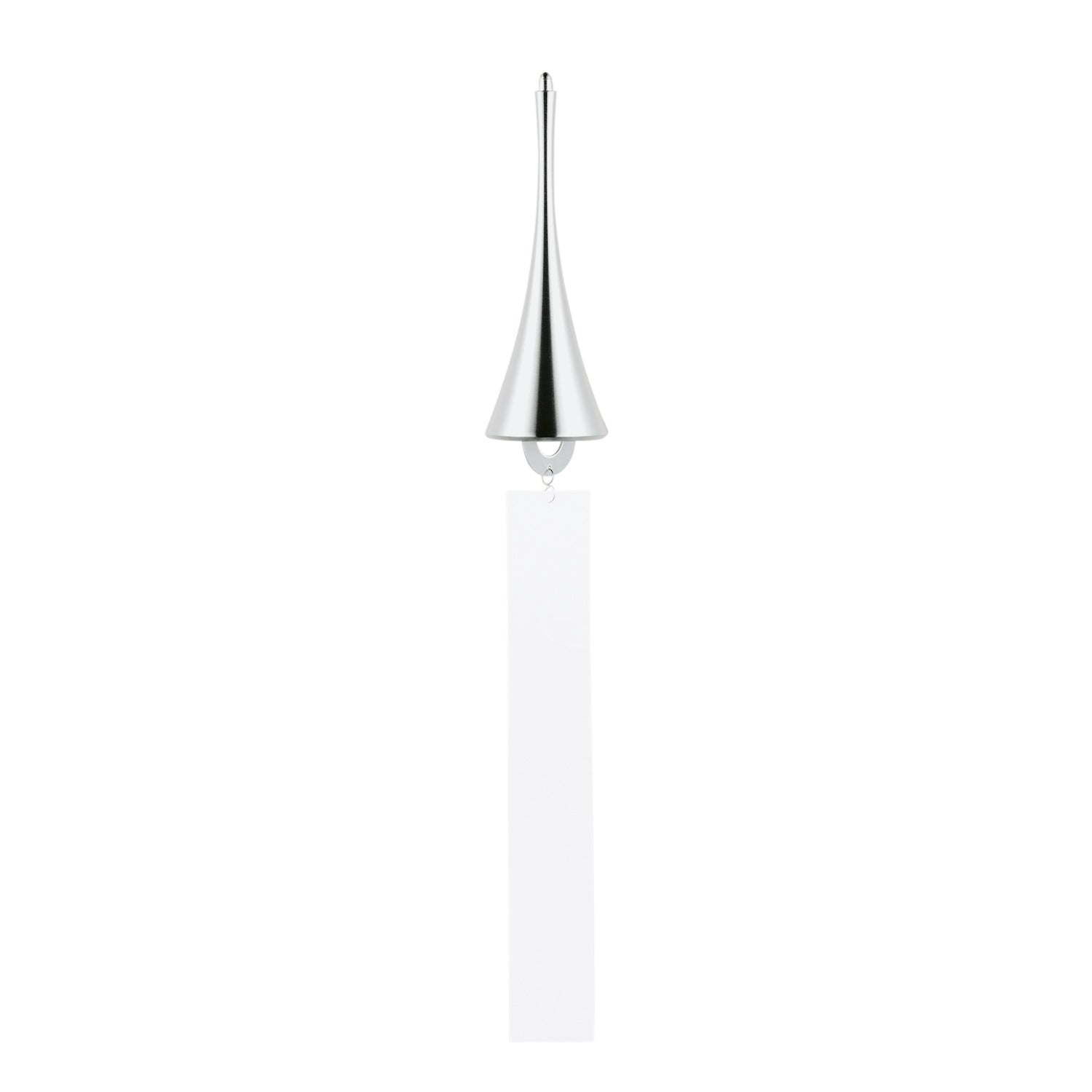 すっきりとしたフォルムが美しい風鈴。ゴールド:真鍮色、シルバー:銀メッキ。富山県高岡市の伝統産業「鋳物」の鋳造・加工技術を生かし、現在のライフスタイルにも合うデザインに仕上げました。素材の美しさを表現するため、職人が一つ一つ手作業でロクロ仕上げを施しています。真鍮ならではの、澄み切った音色をお楽しみください。