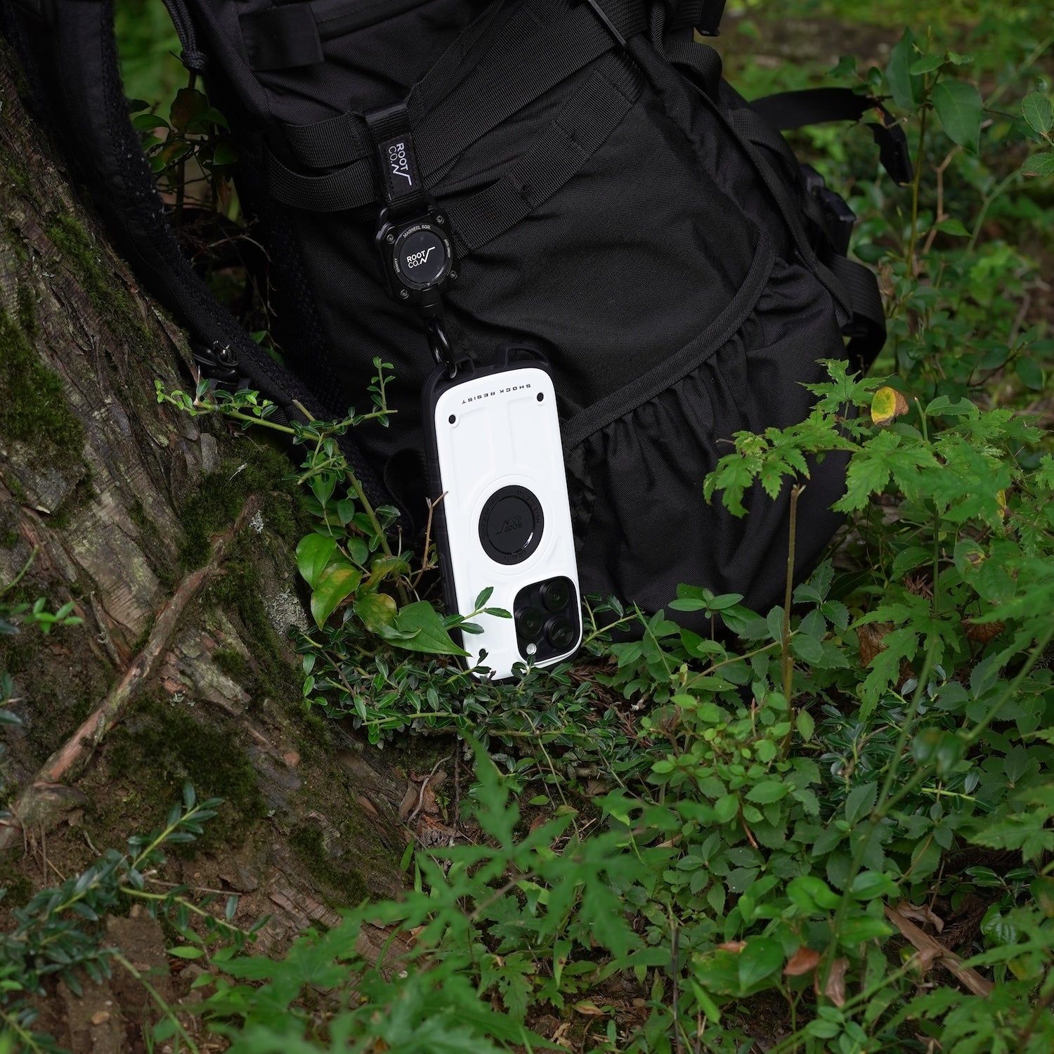 ケース下部に搭載されたカラビナループにケースに直接カラビナを取り付ける事が可能。バックパックやショルダーバッグ・ベルトループ等にそのまま装着できるので、登山やアウトドア時の落下防止に。