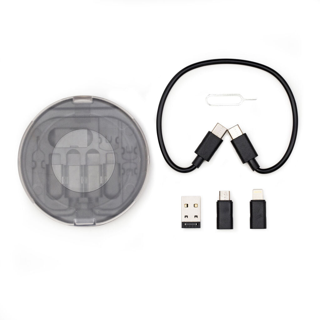 これさえあれば外出先での充電やデスク作業に困らない変換アダプターセット。全てまとめてコンパクトなケースに入っており無くす心配もなく安心。変換アダプタのほかにも、SIMカード取出し用ピン、Micro SIMカードとNano SIMカードを保管できるスペース、さらにはスマートフォンスタンドしてもお使いいただけます。