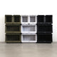 どの色も落ち着いたトーンで、室内収納やガレージ収納、アウトドアなど、さまざまな場面で使いやすいカラーリングになっています。