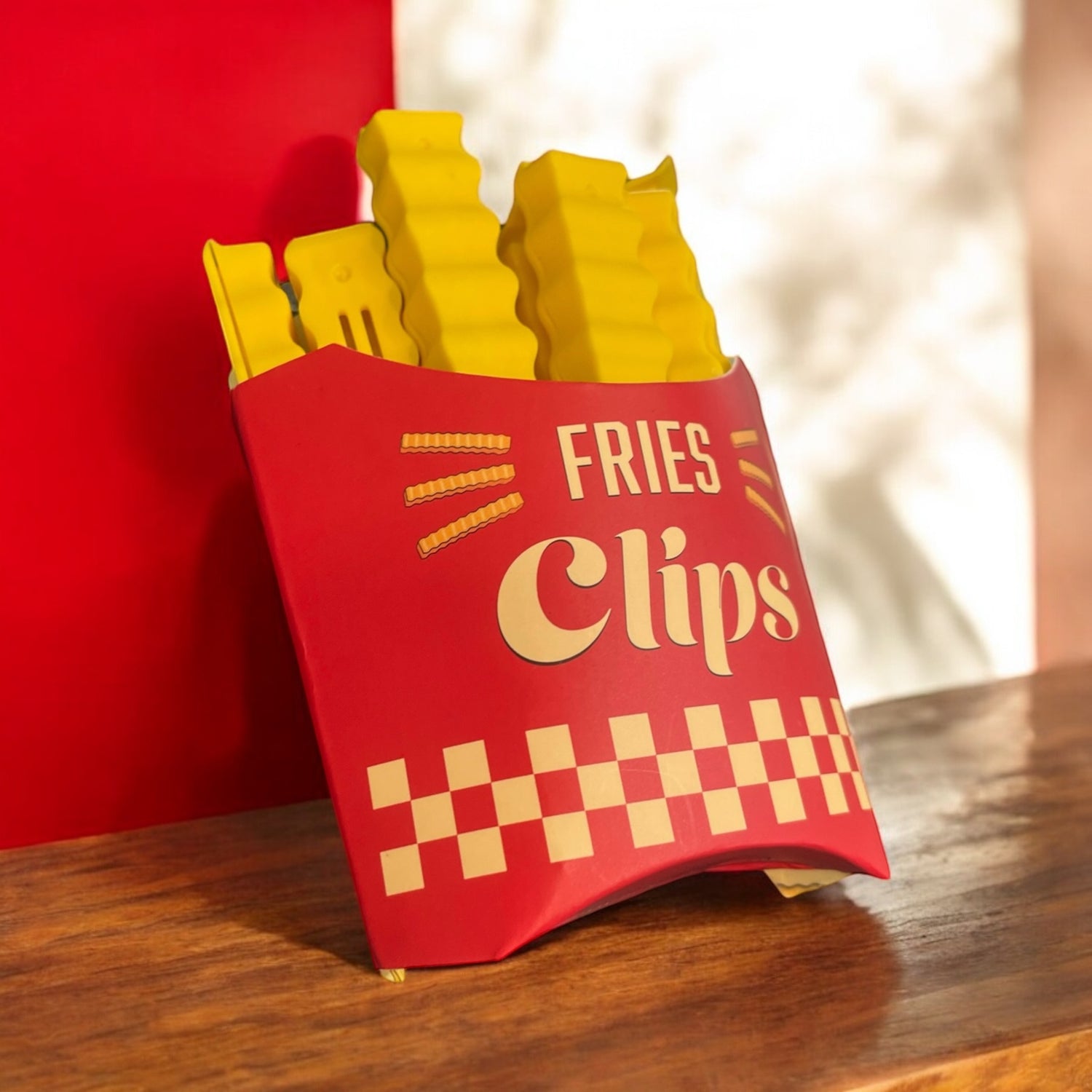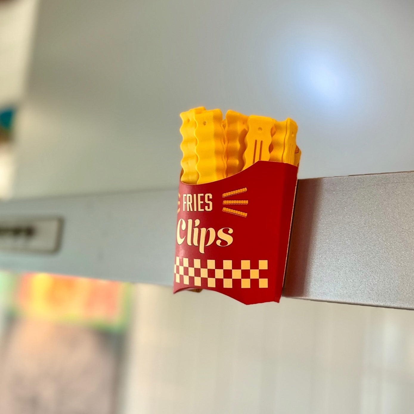 フライドポテトがクリップに。アメリカンなデザインがとってもキュート!背面は磁石なので冷蔵庫などに貼っておけます。