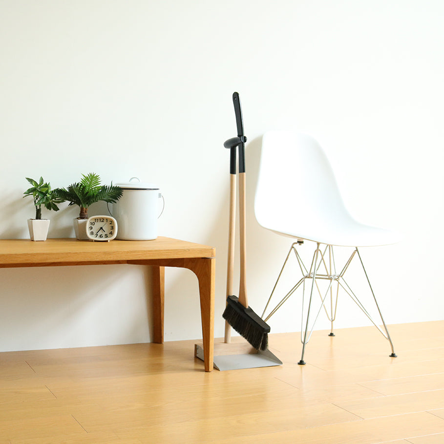 素材 | ほうき:(持ち手)バーチ、(毛)馬毛、ポリエステル ちりとり:バーチ、ガルバニウム鋼板 |