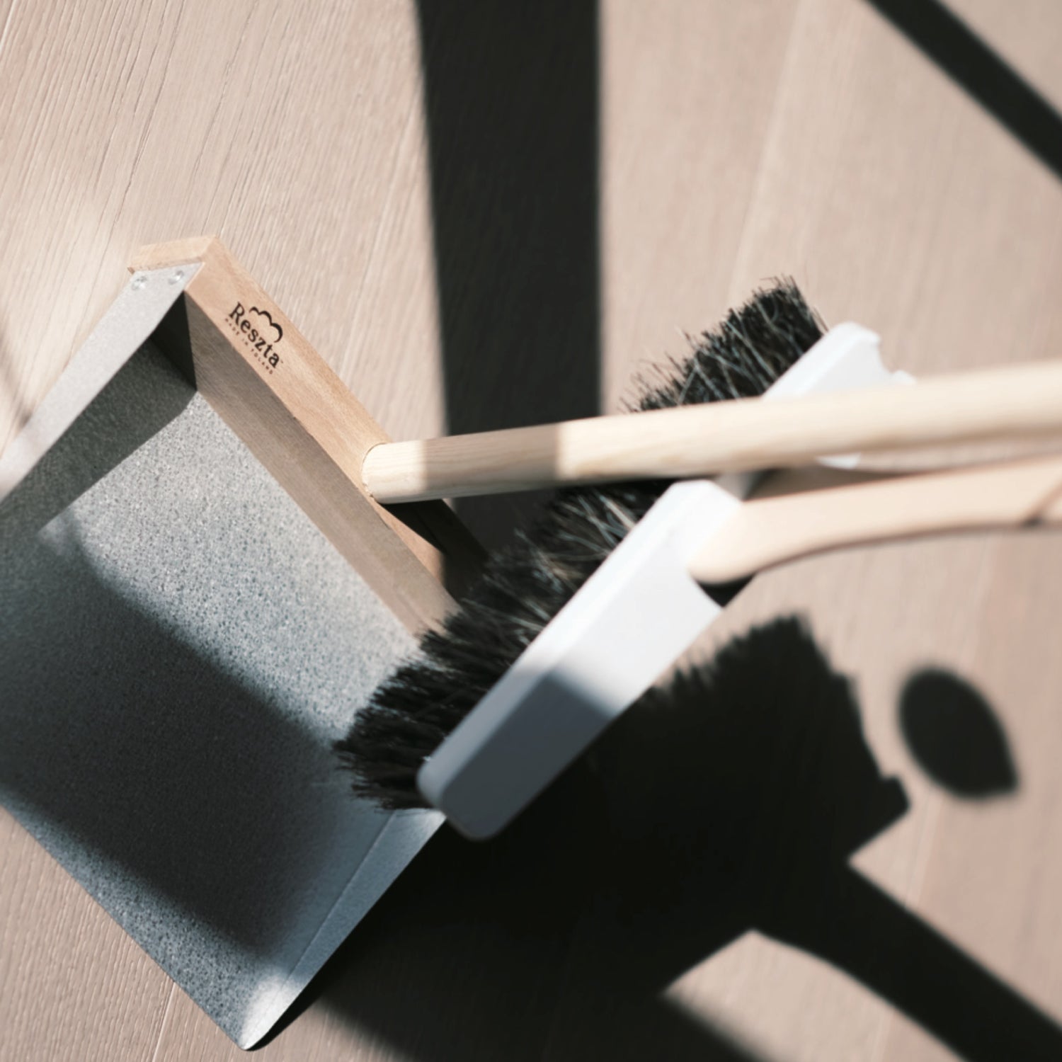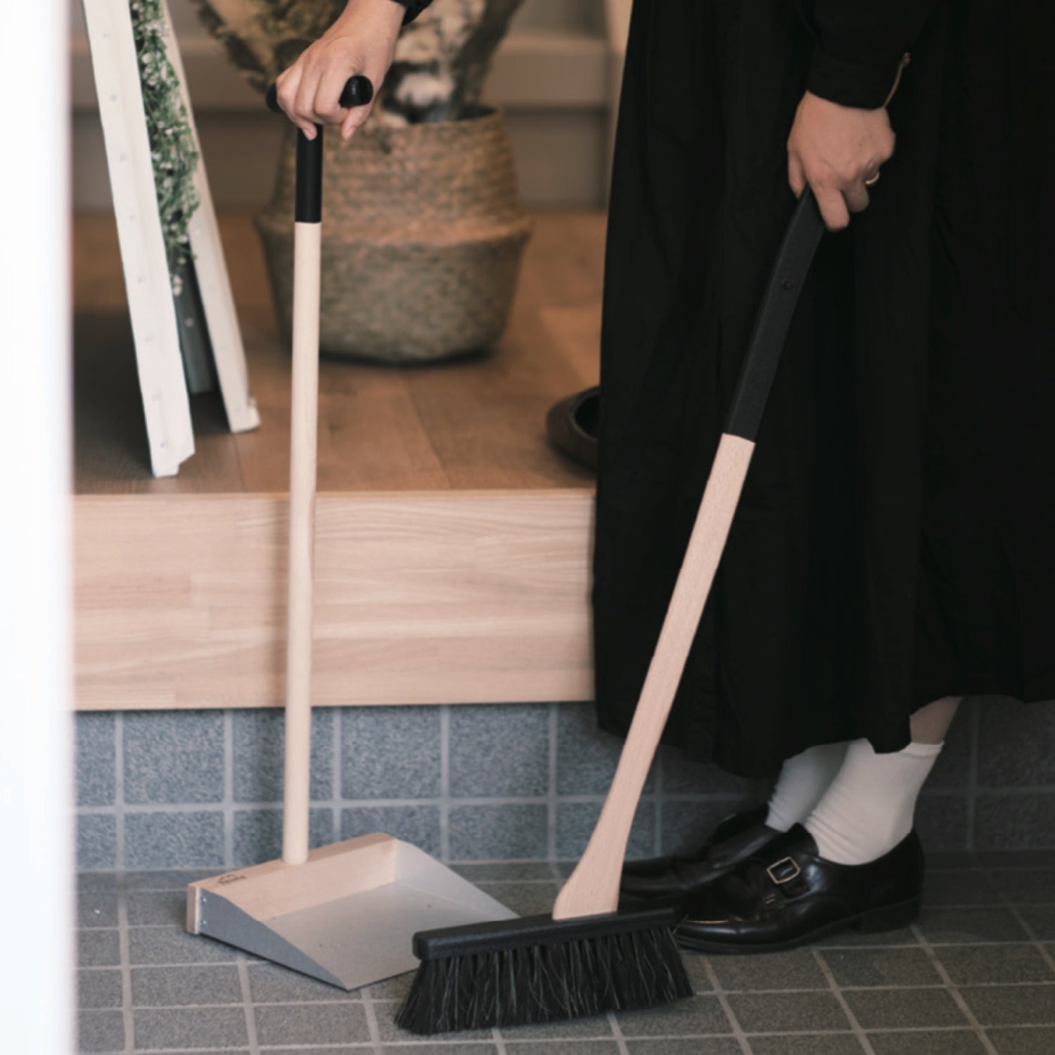 ポーランド生まれの掃除道具ブランドによる、ほうき&ちりとりセット。ほうきはちりとりの持ち手に引っ掛けて収納することができ、自立する作りです。玄関などに出しっぱなしにしていてもインテリアに馴染むスタイリッシュなデザイン。
