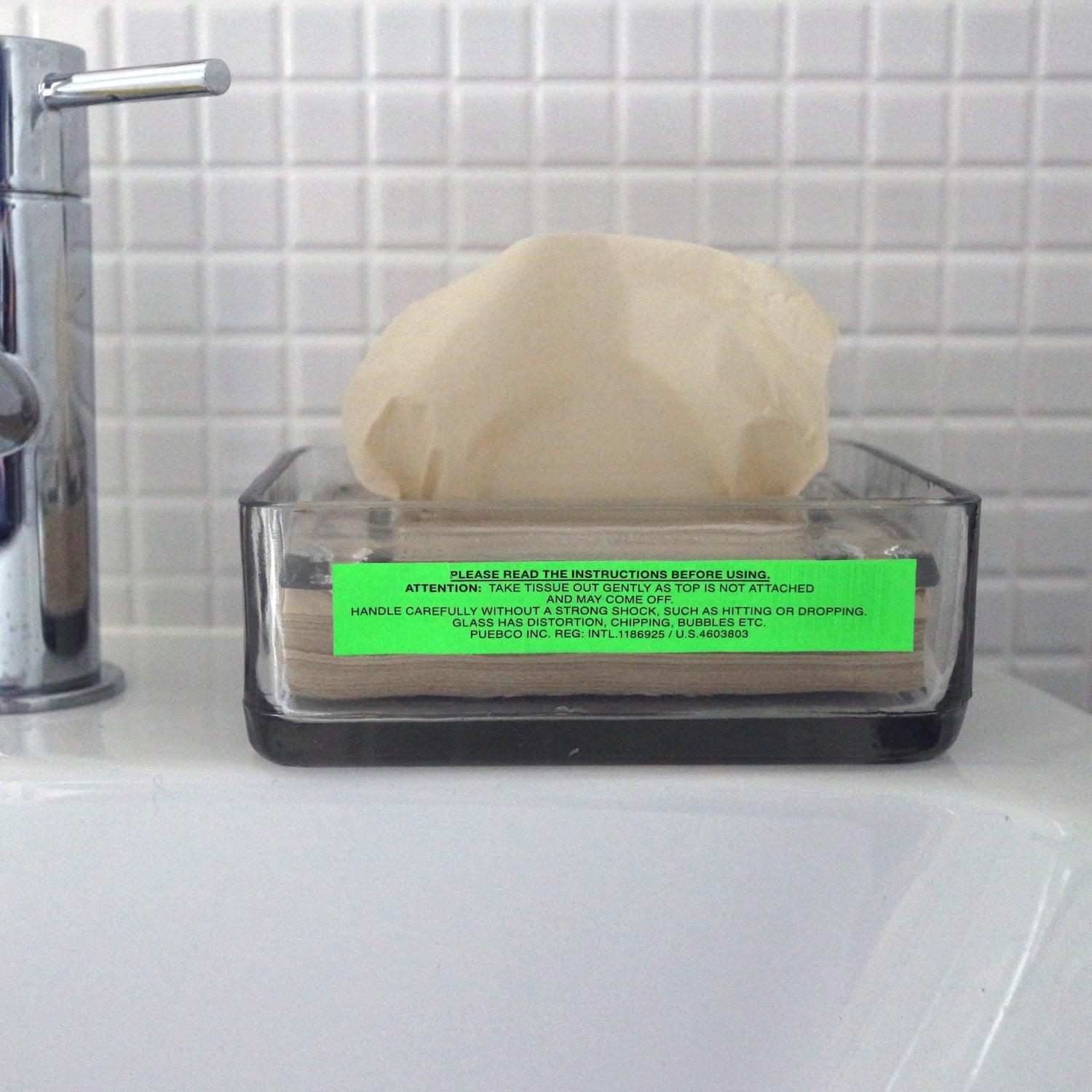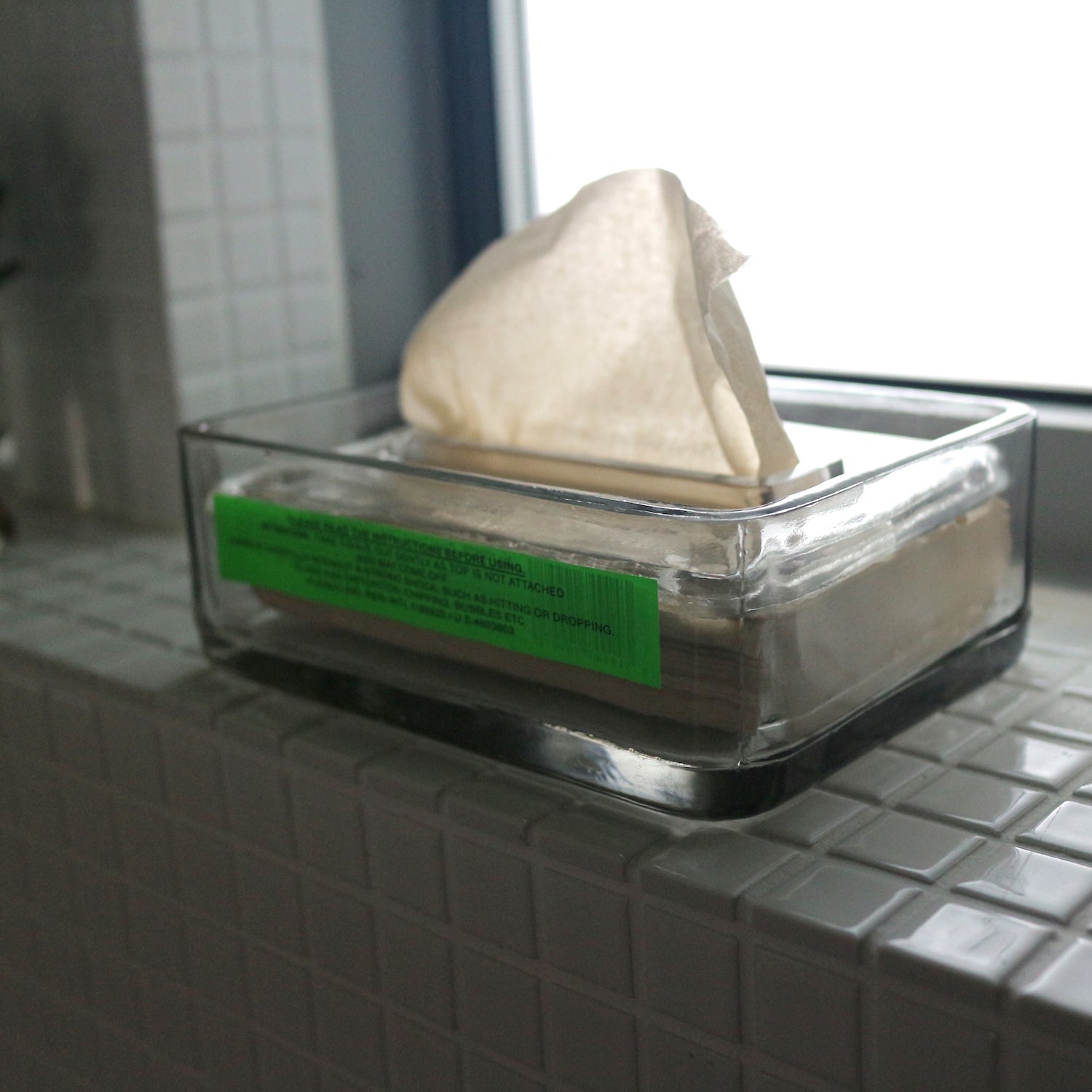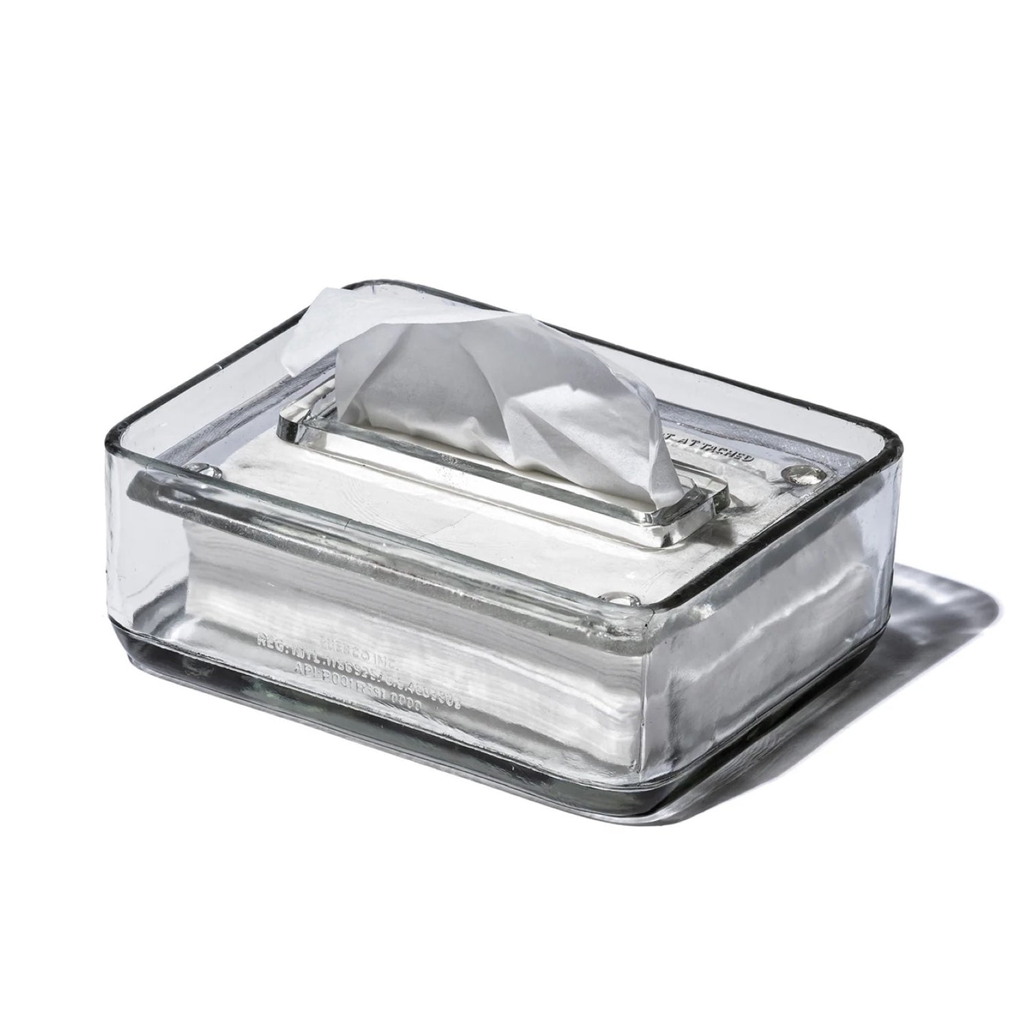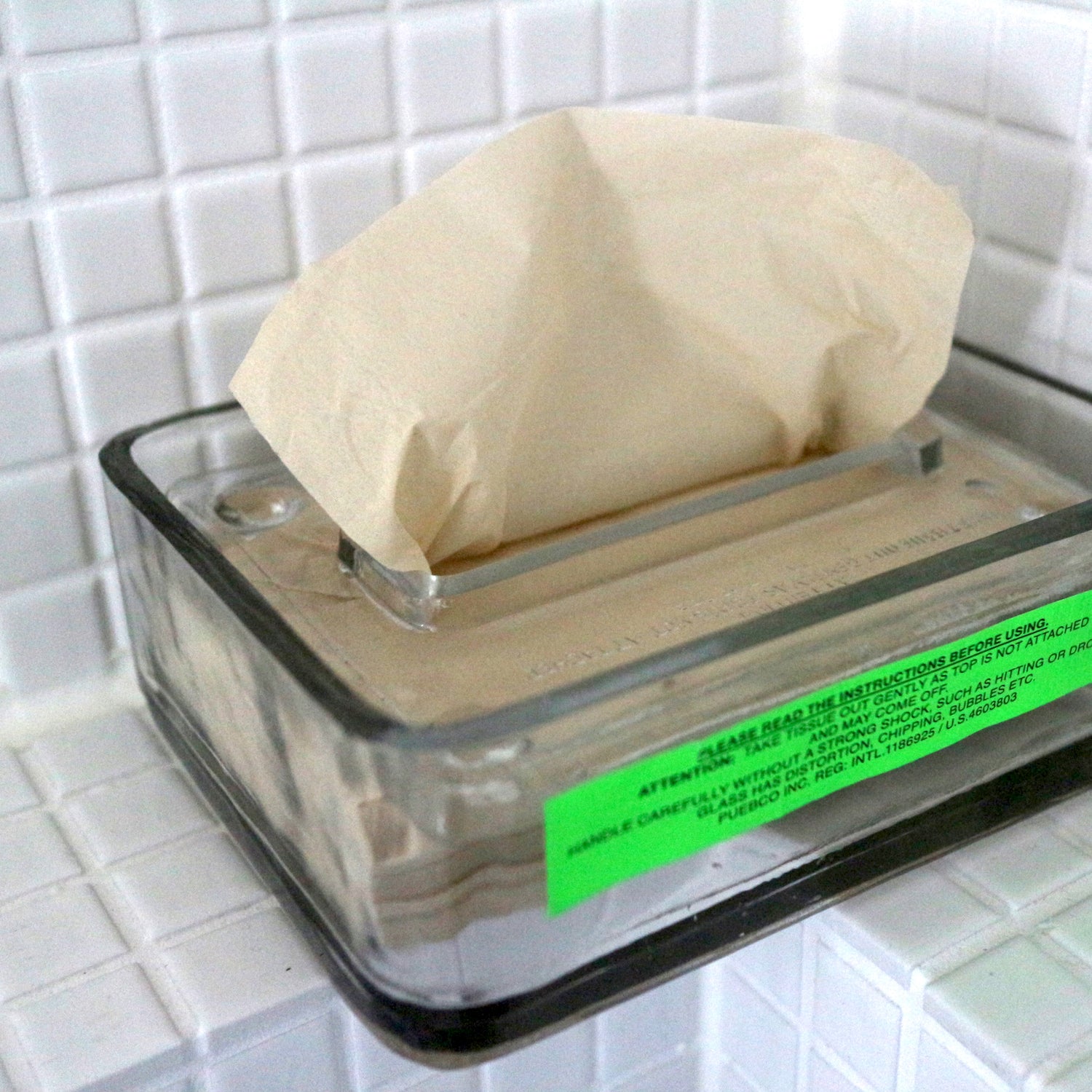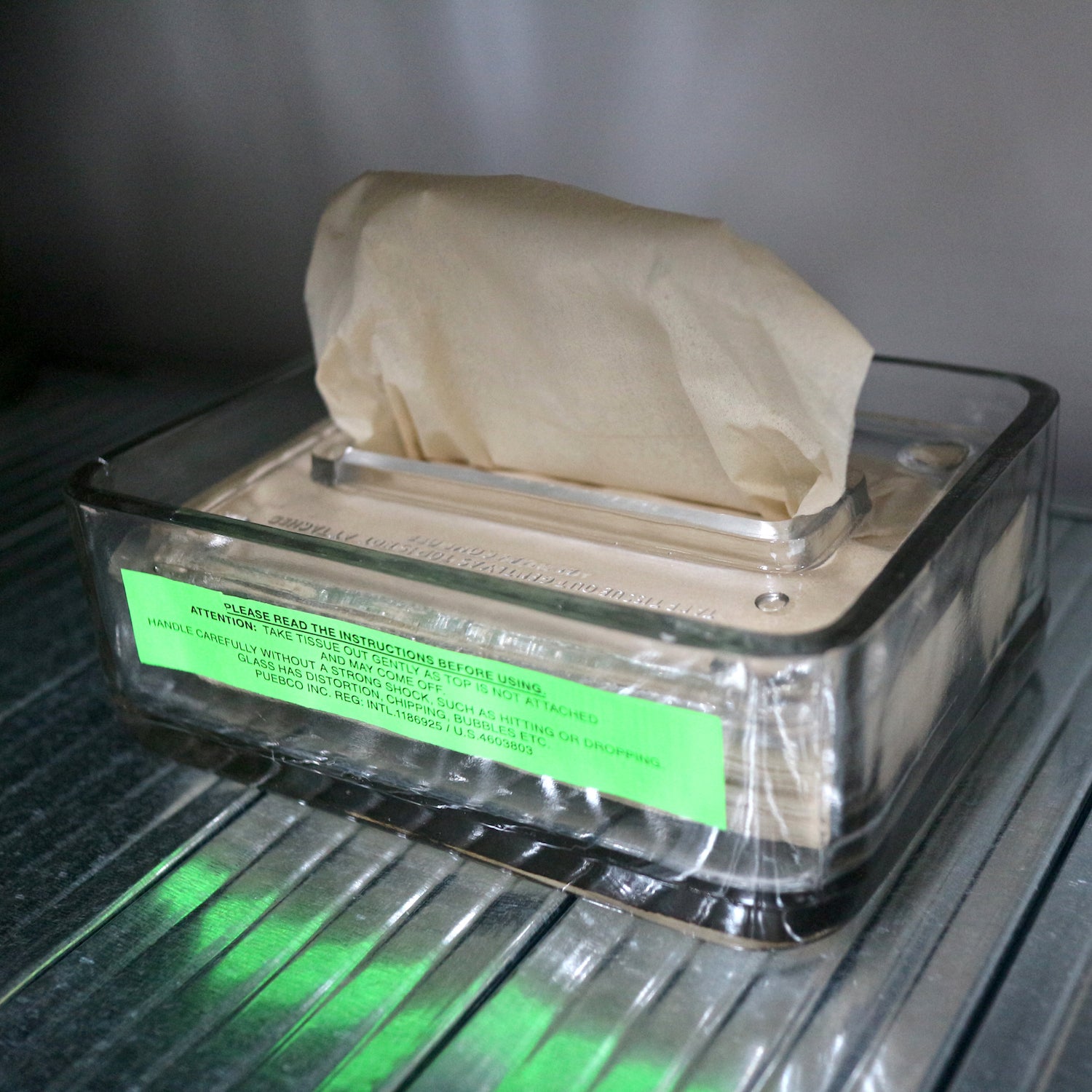 コンパクトティッシュ(目安 : 150x100mm程度)に適したサイズです。強化ガラスではない為、お取り扱いにはご注意ください。ティッシュペーパーは付属しません。