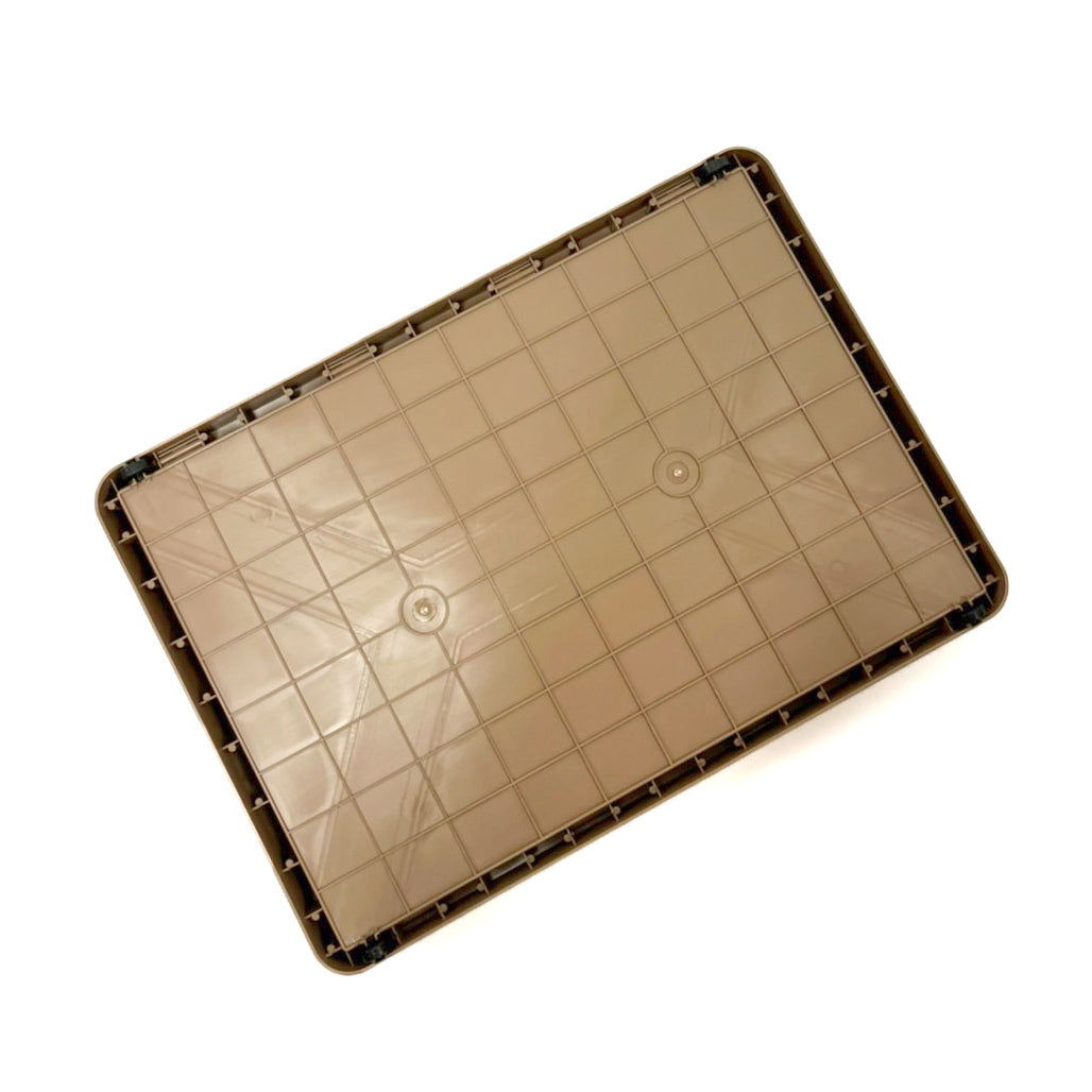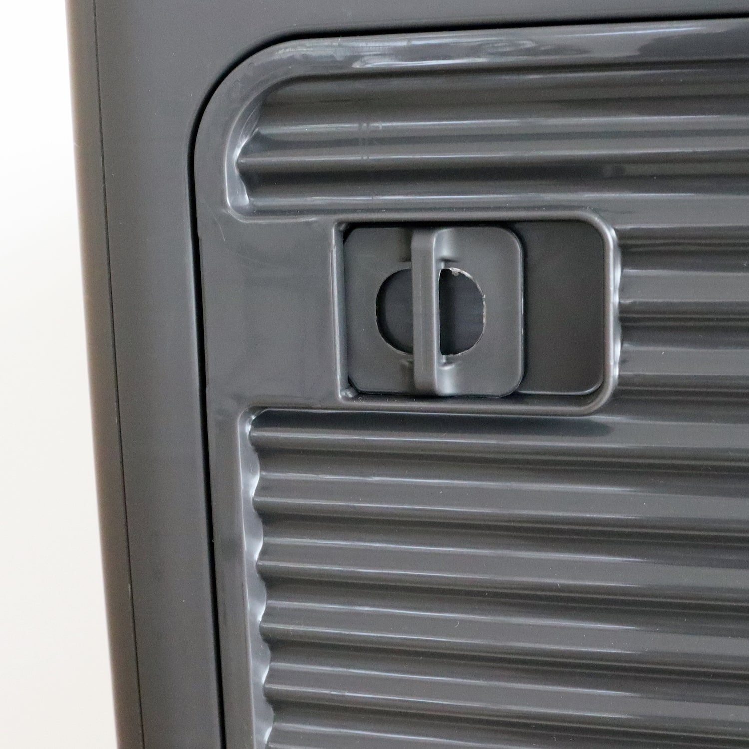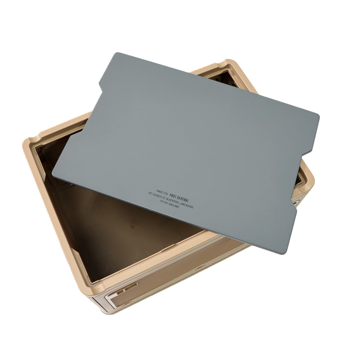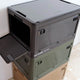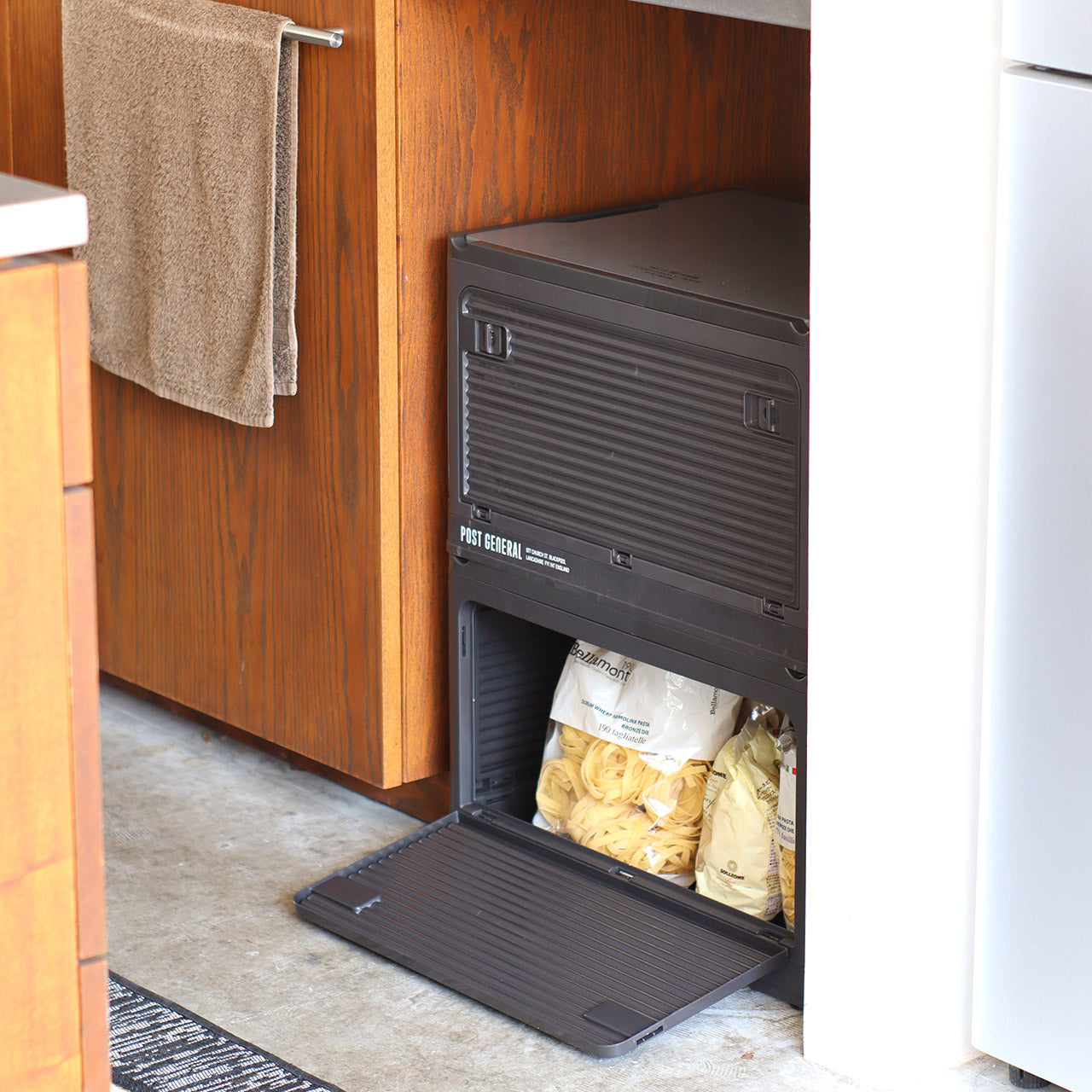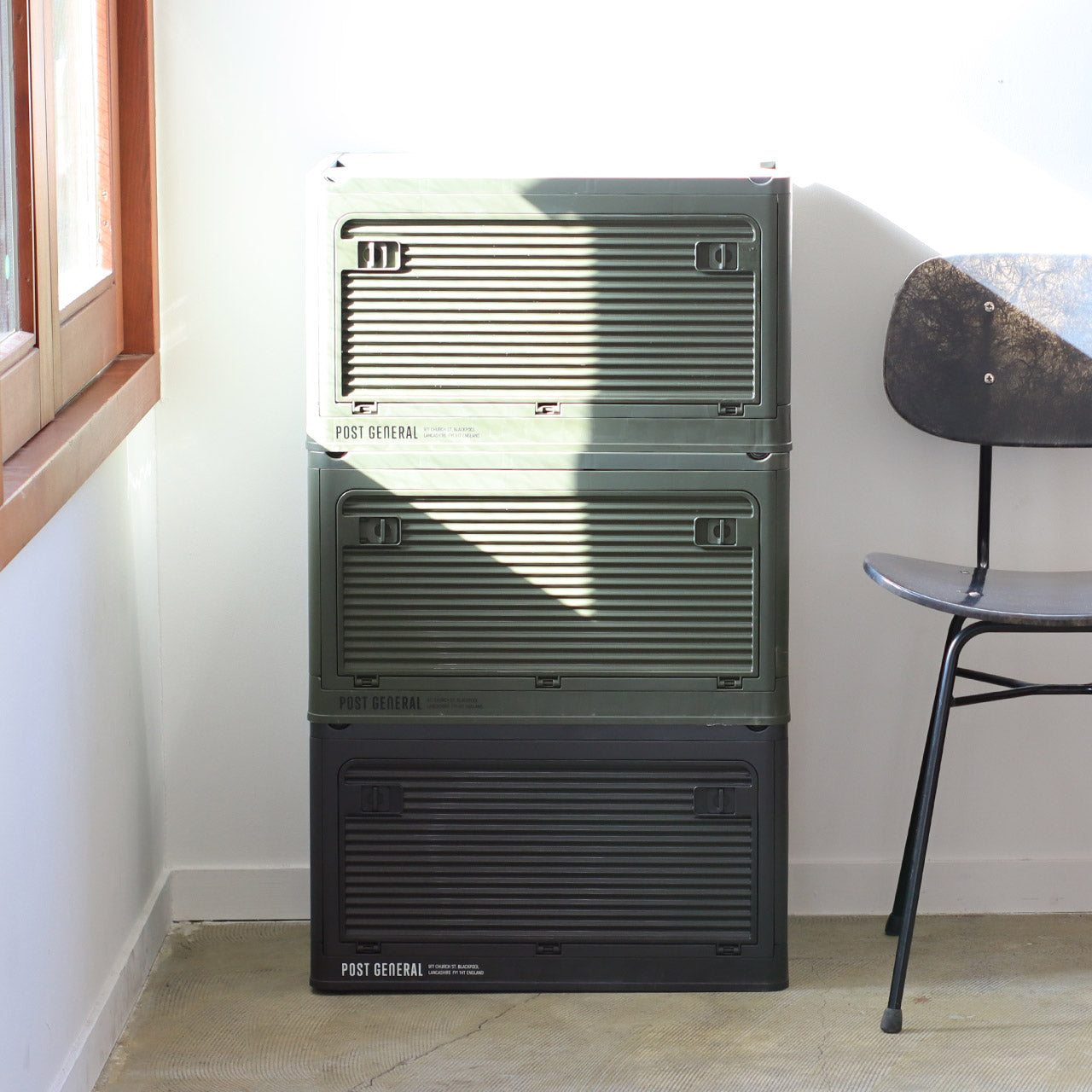 ここ数年色々なコンテナを使ってきましたが、天板とキャスター付きは初めて見ました。ルックスもインダストリアルでお部屋やクルマの景観を底上げしてくれるし、四面パネルも大口径で中のものが取り出しやすい。まさに才色兼備。今では外でも中でもこれをメインコンテナにしてます。