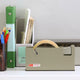 しっかり重みのあるスチール製、サビや傷に強いハンマートーン仕上げ。金属をハンマーで叩いて出したような細かな凹凸が、光の当たり方や角度によって独特の表情を生み出します。スリムなボディはデスク上でも邪魔になりません。壁やデスクに固定するための底面ネジ穴付きの為、業務用にもぴったりなテープ台です。