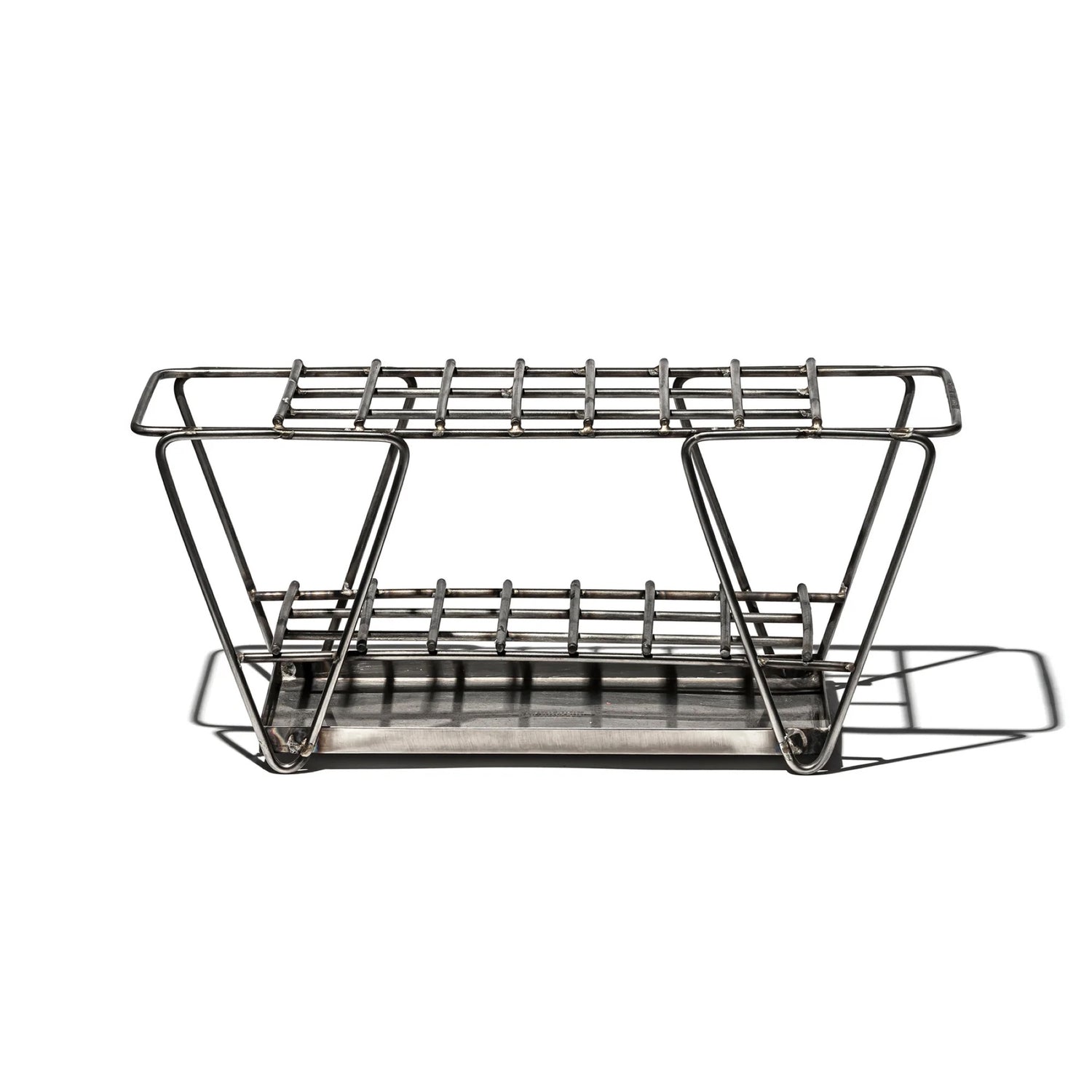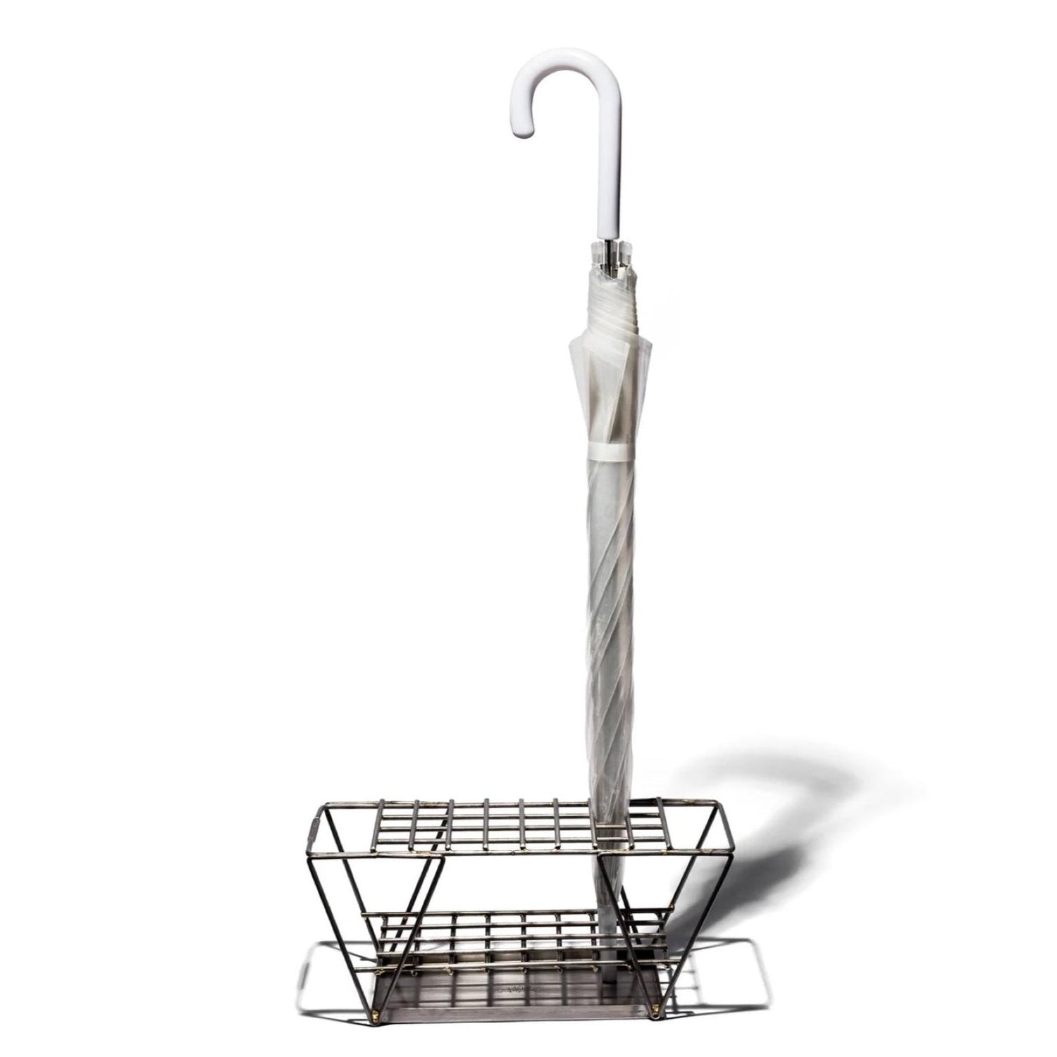 傘立てって雨の日にしか使わないものなんだけど、僕の場合は基本的に玄関に出しっぱなしにしておくので、傘立てであることと、オブジェとしても美しく成立するものを買っています。なので傘立ては自分の中では集めてしまっているジャンルのひとつで、鉄製やらプラスチックやらいくつかお気に入りがありますが、この試験管立てのような傘立てもとても気に入っています。