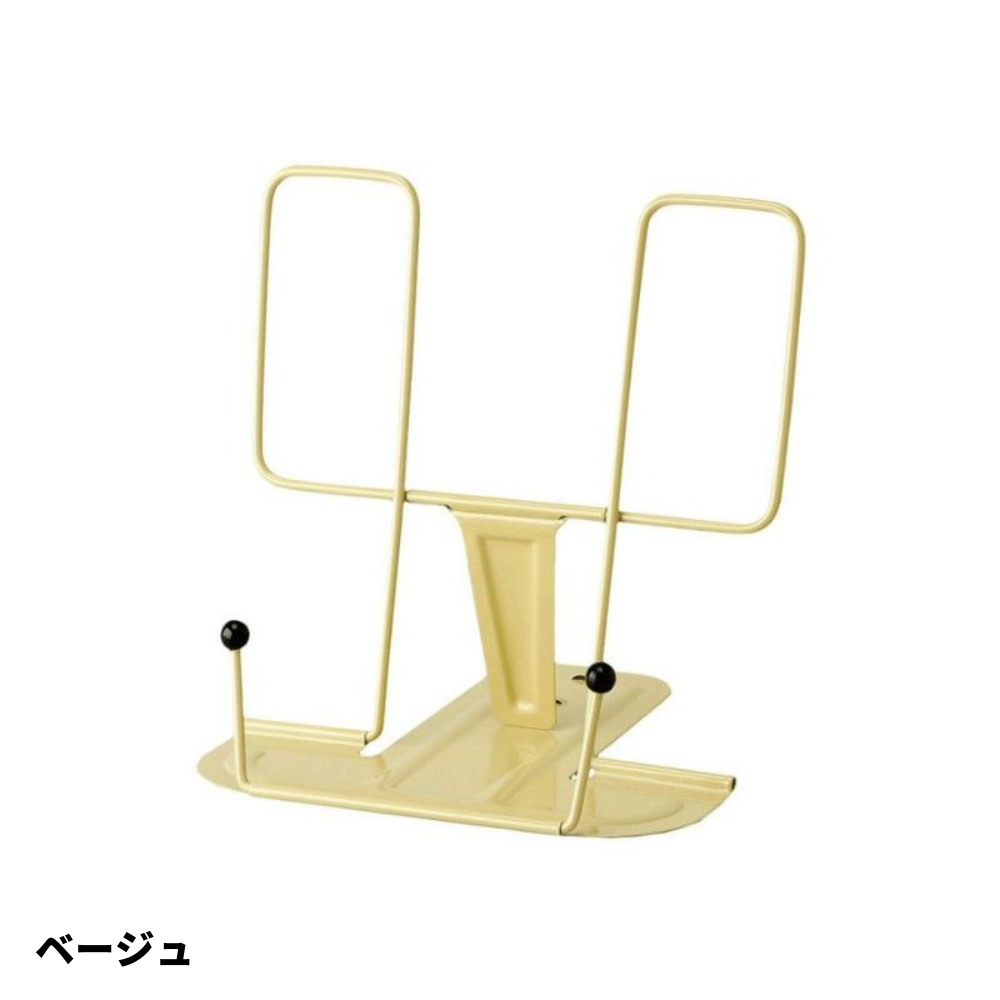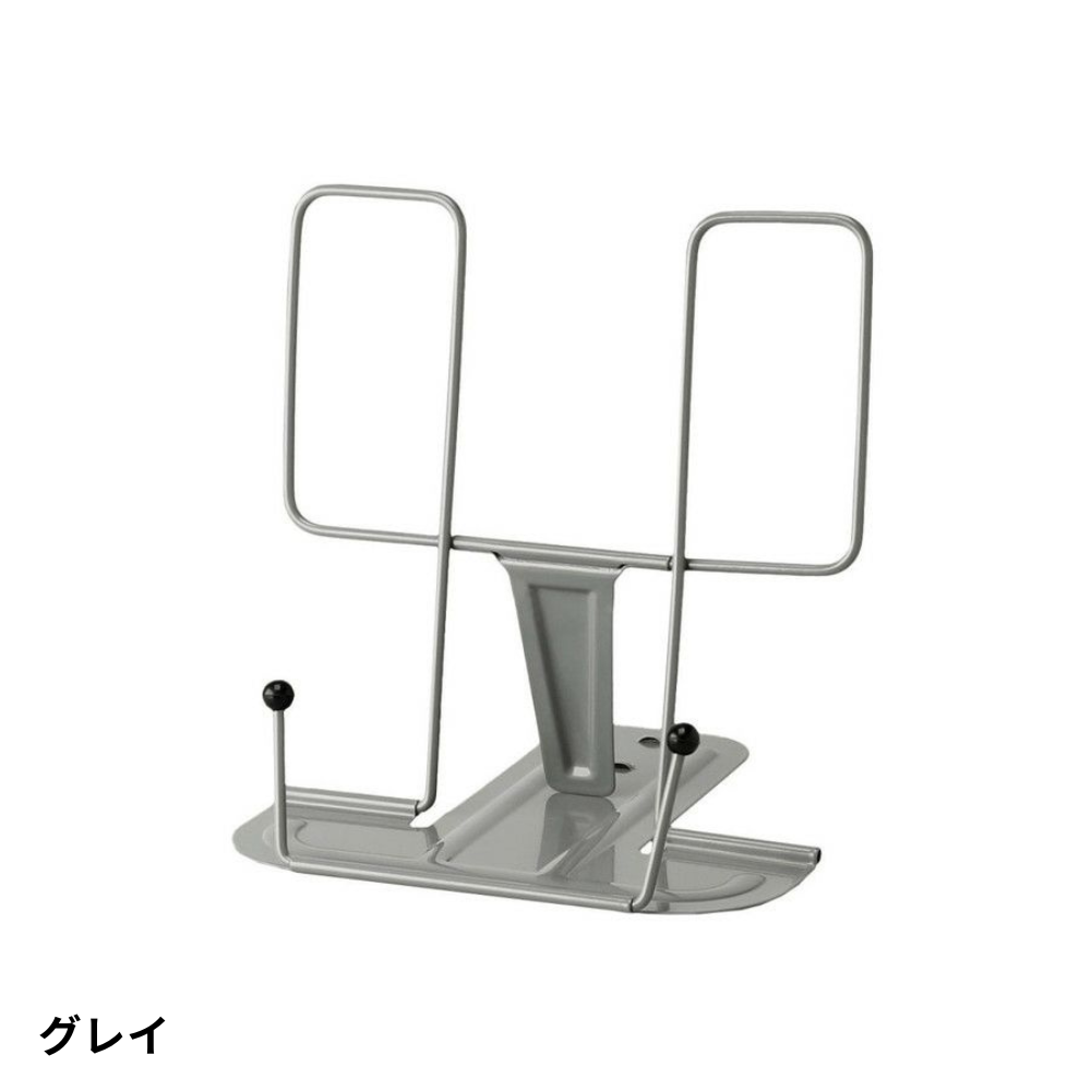 立てる本の大きさや厚みにより角度を3段階で調節できます。丸ポチのついた支えを動かして、ギュッと固定しておけば不意にページがめくれることもありません。