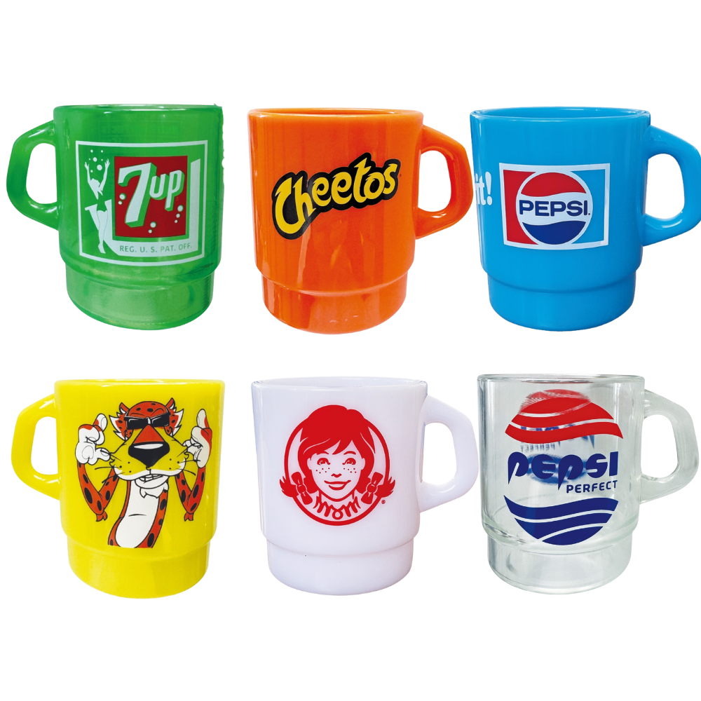 ペプシやスパムなど、お馴染みの企業ロゴが入ったマグです。ポップなカラーとデザインがインテリアのアクセントになってとても可愛いです。スタッキングできるのも便利!プラスチックなので落として割ってしまう心配もないし、ガシガシ使えます。使っていくにつれてロゴが掠れていくのも、ヴィンテージ感が出て良さそう!と思ってます。長く使っていきたいマグです。