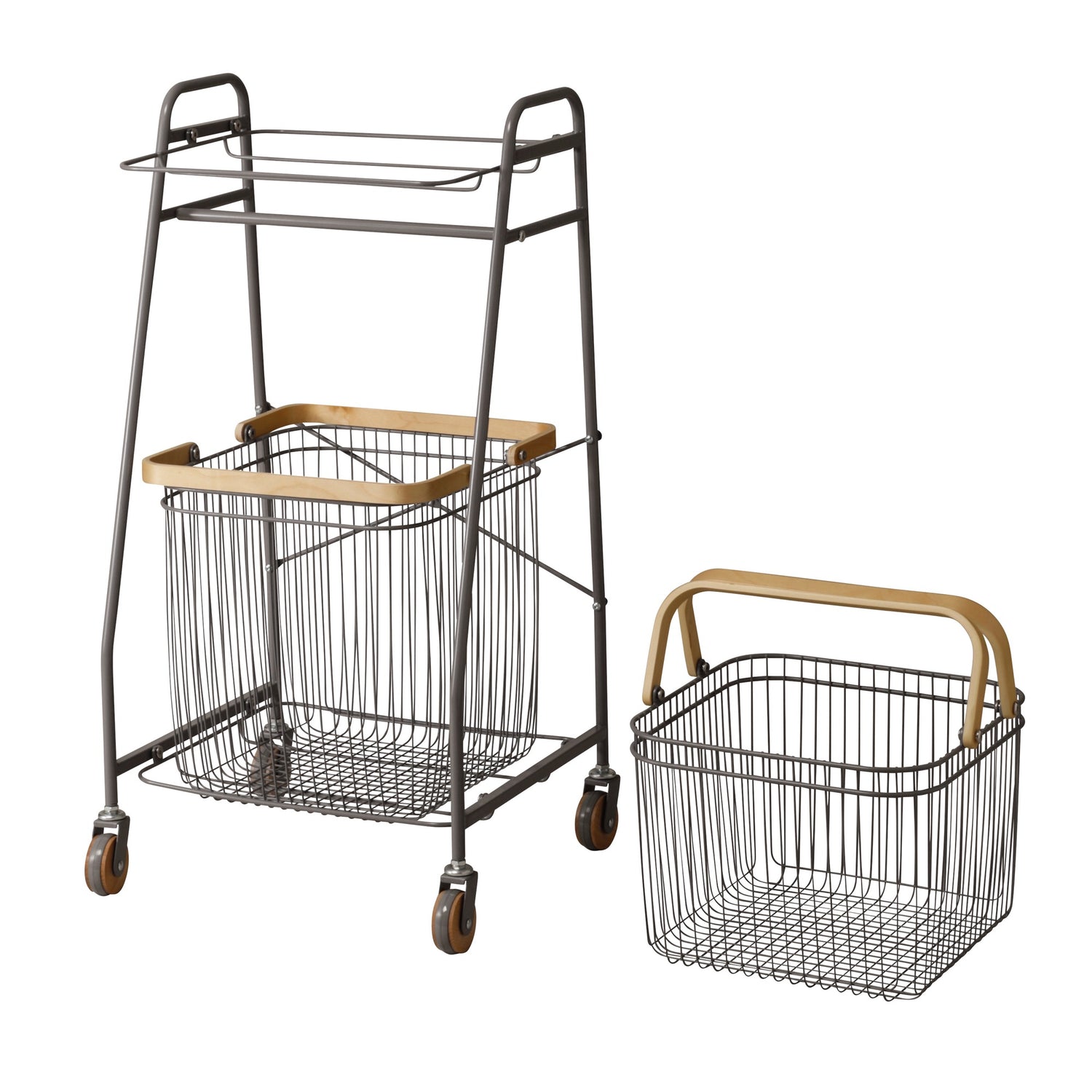 素材 | フレーム・カゴ:スチール 粉体塗装、カゴ取手:天然木化粧合板 |