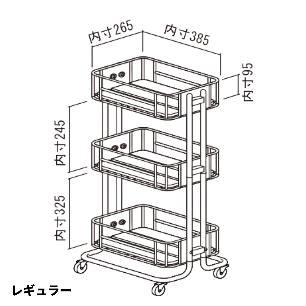 素材 | フレーム:スチール 粉体塗装、カゴ:スチール 粉体塗装、底板:天然木(パイン材) |