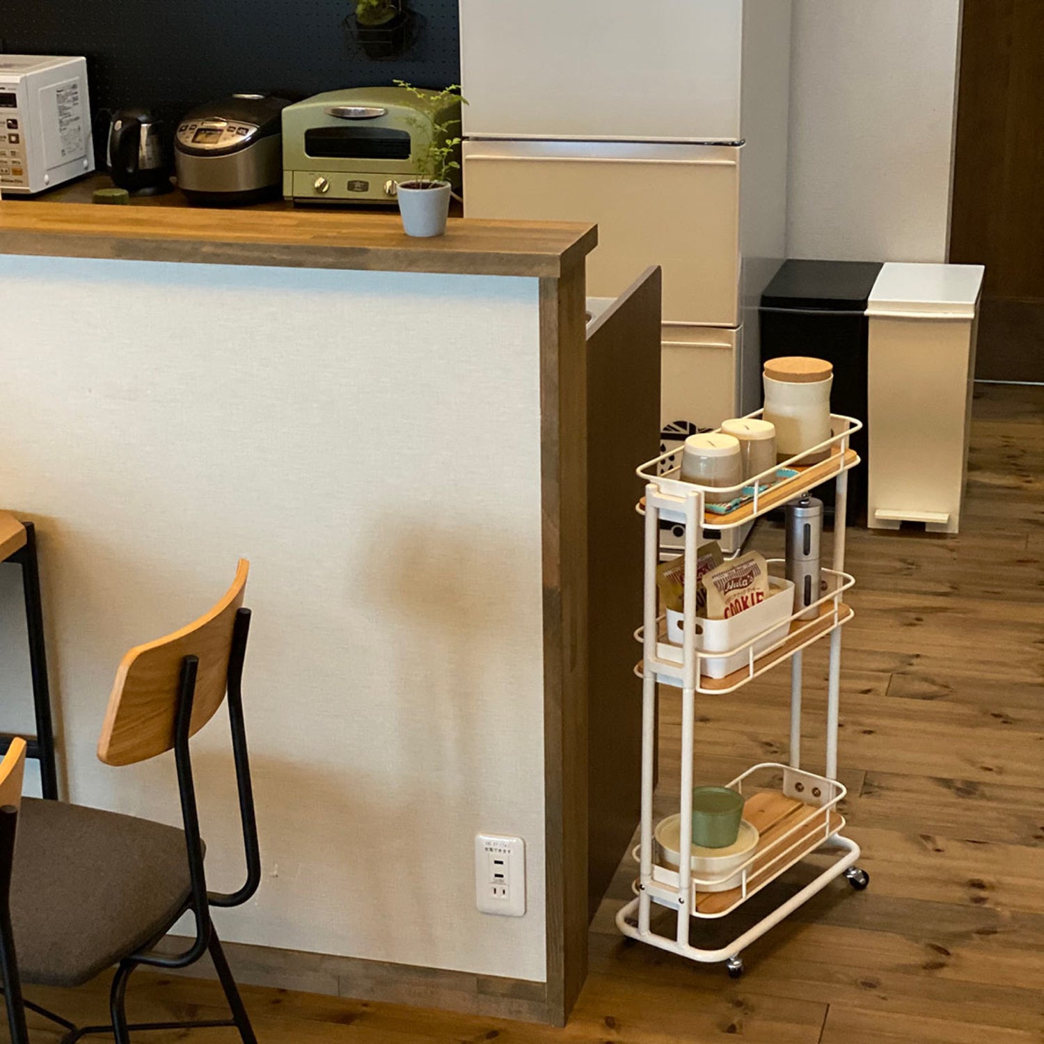 気づくとインダストリアルなインテリアばかり選んでいて、部屋がちょっと重たい雰囲気になりがちだったので、最近はナチュラルなアイテムも少しずつ取り入れるようにしています。でも、ナチュラル過ぎるのは僕の好みじゃないし…と思っていたところで出会ったのがこのワゴン。ナチュラルすぎず、インダストリアルすぎず、「こういうの探してた!」と思える絶妙なバランス感。ヨーロッパの昔ながらの自転車のカゴをイメージして作られているらしく、その佇まいもとても素敵。特に20cmのスリムタイプは絶妙なサイズ感でキッチンにピッタリ。キッチン以外の場所でも邪魔にならず、すごく重宝しています。
