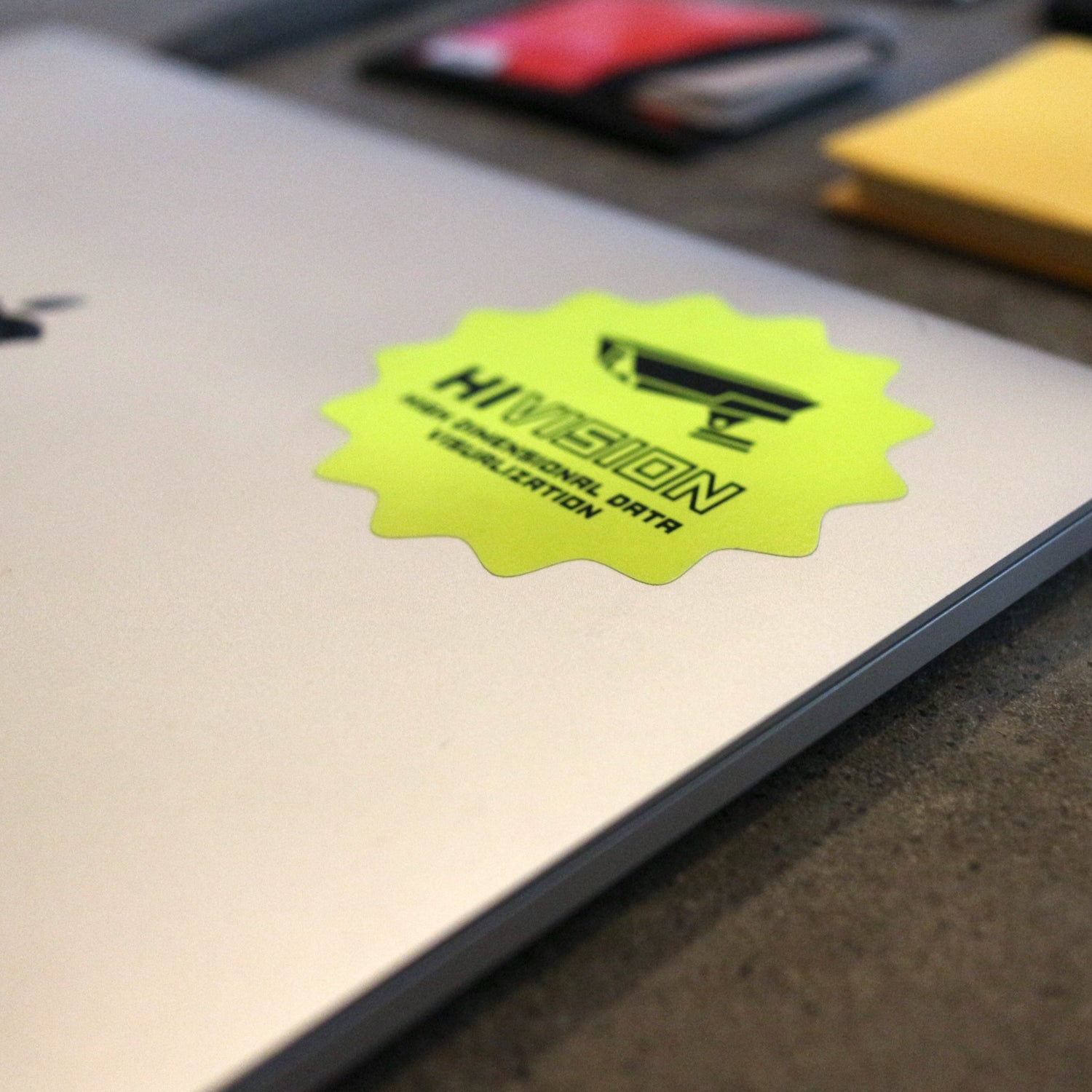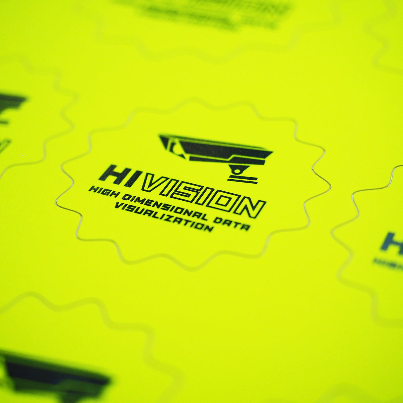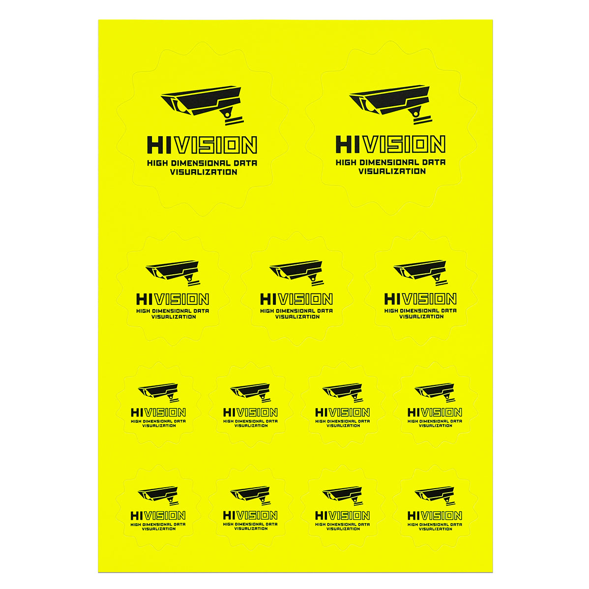 HIVISON ロゴの蛍光ステッカーです。アメリカ80sな蛍光紙素材です。ビニールではなく紙の質感が気に入っています。大中小3種類の大きさが1シートでセットになっているので様々なものに貼って楽しめます。