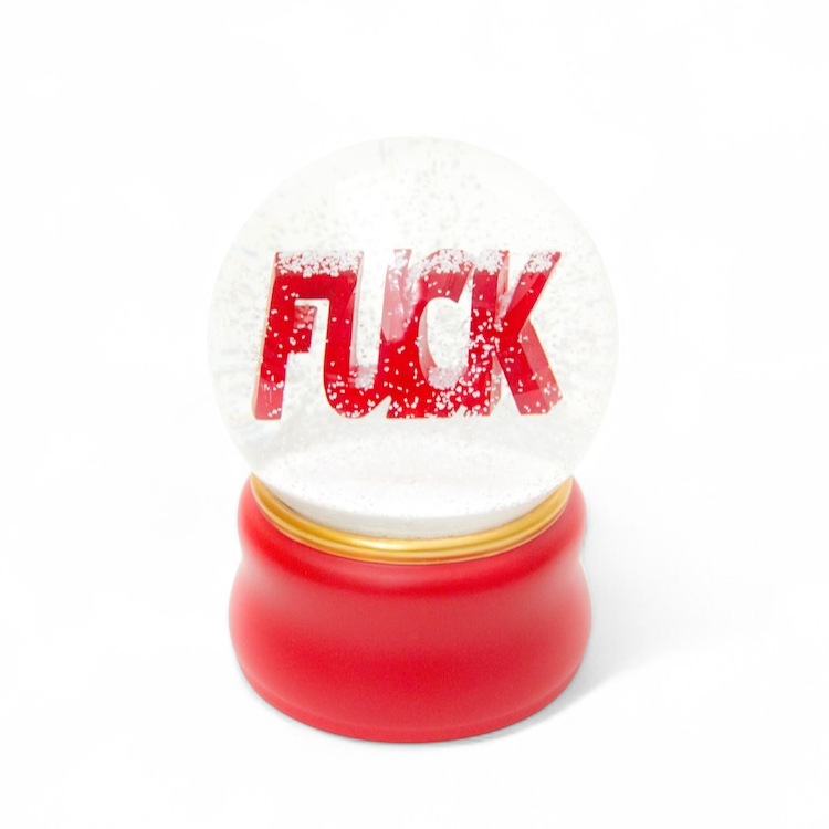 ありそでなかったスノードーム。赤の台座も可愛いく、スノードームの中も赤いF○○K。このセンス大変お気に入りです。部屋の中のサブカルの品々とも相性が良いですね!