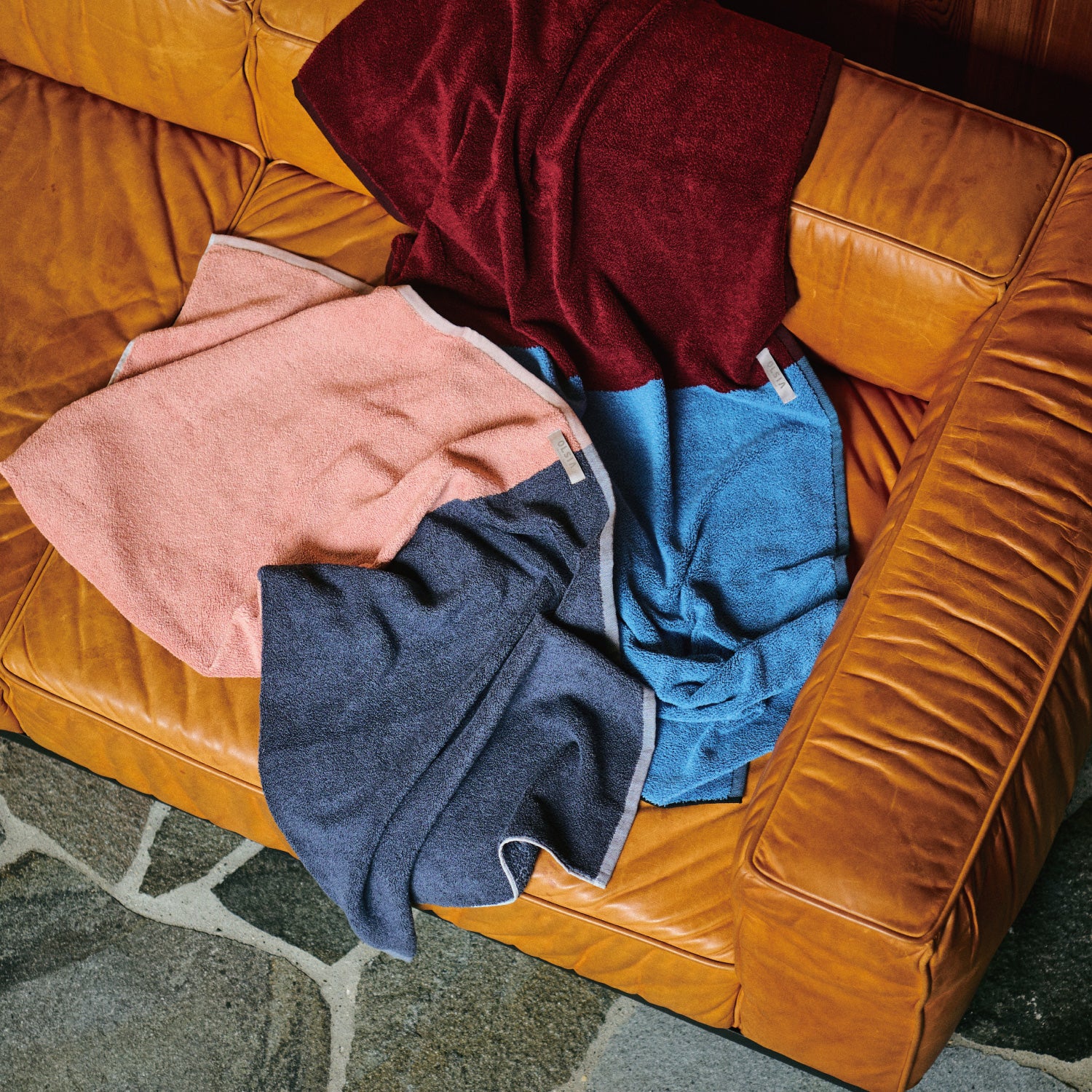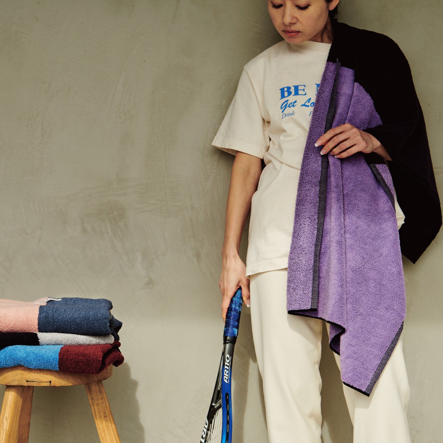 喧騒から離れてのキャンプ、爽快なサーフィン、自分磨きのためのワークアウトなど、家族や仲間とのアウトドアやスポーツシーンでも映えるオリジナルタオルを開発。色の組み合わせが絶妙な2トーン(仏語でドゥコロール)で、そのカラー名を愛すべき人や風景になぞらえてストーリー性を表現しています。コットンに織り交ぜた光沢感のあるバンブーレーヨンは綿よりも吸水性が高いとされ、ボリューム感がありながらさらりとした拭き心地。それぞれ、糸の染まり具合の差を活かすことで表情も風合いも豊かに。