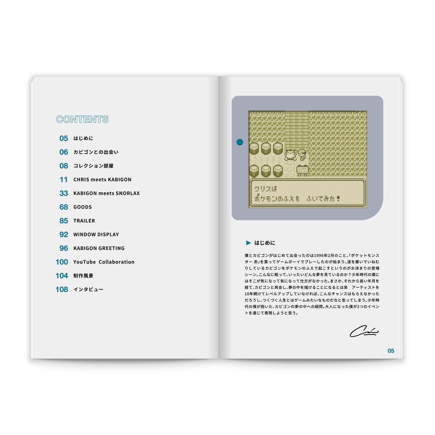 「プロジェクトカビゴン×CHRIS」としてスタートした伊勢丹での第一弾企画「CHRIS meets KABIGON」と、KOMIYAMA TOKYO Gでの第二弾企画「KABIGON meets SNORLAX」での展示作品やグッズ、映像等を収録した公式図録も販売いたします。受注特典として、CHRISが描いたCHRIS ver.のステッカーが付いてきます