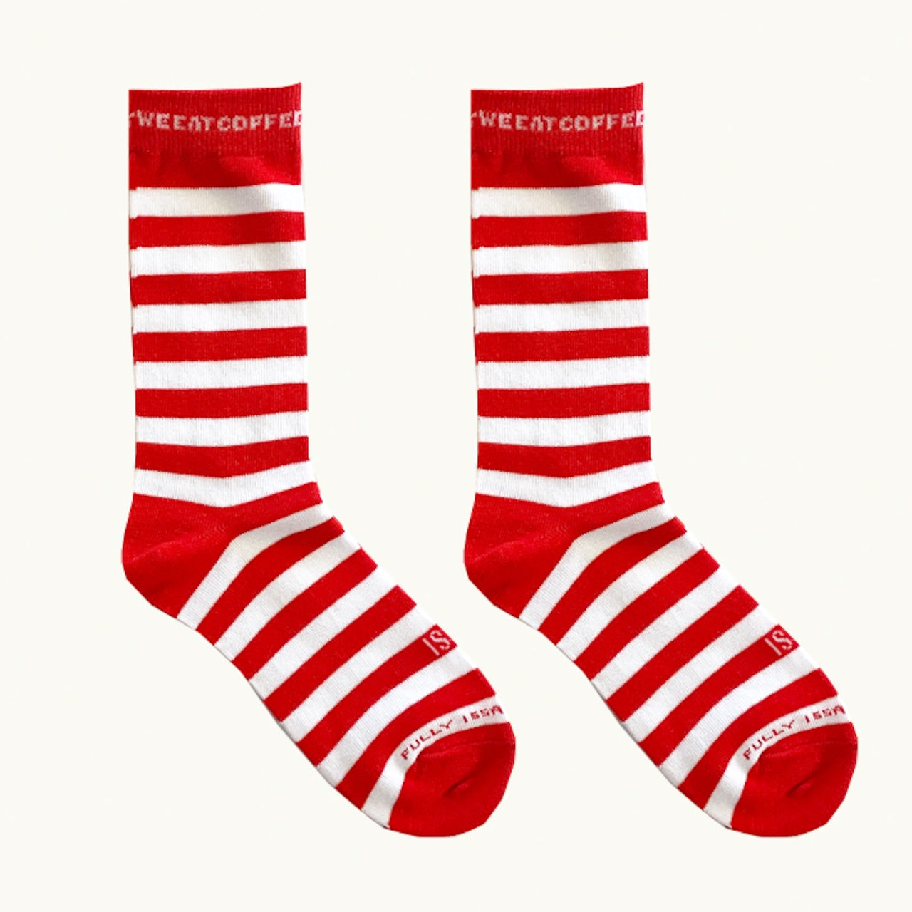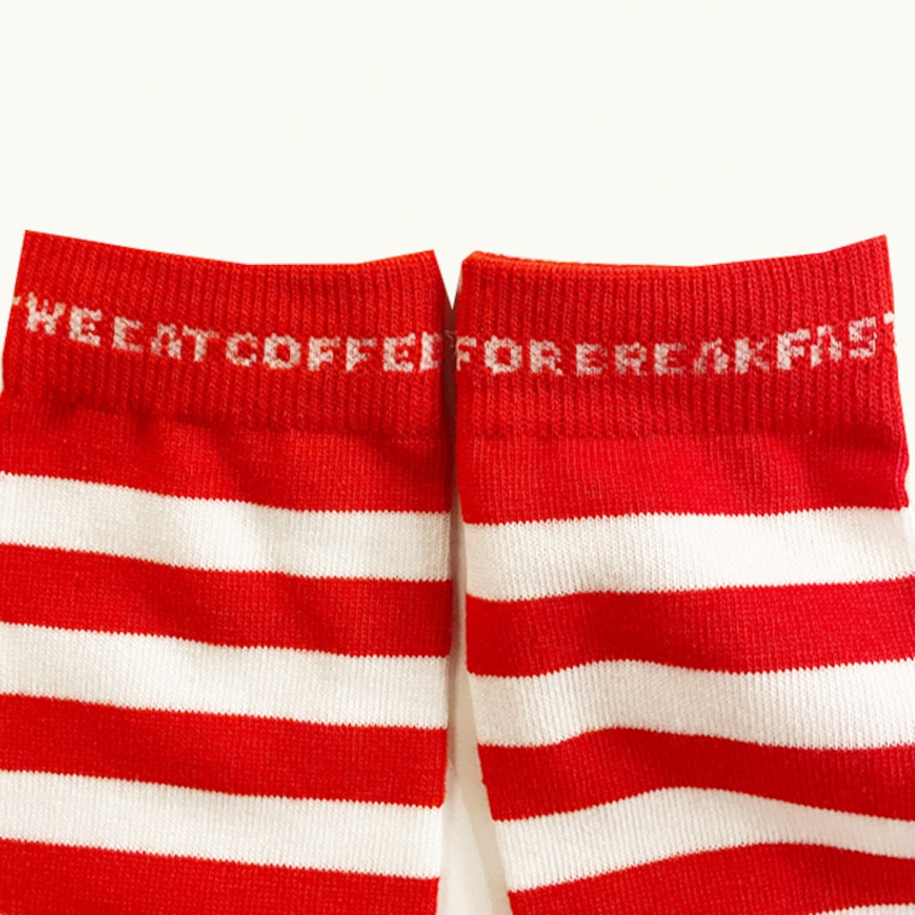 ISSA (The International Specialty Sock Association)公認のバリスタソックス。 足元からチラリと見える幸運のボーダーです! WE EAT COFFEE FOR BREAKFAST