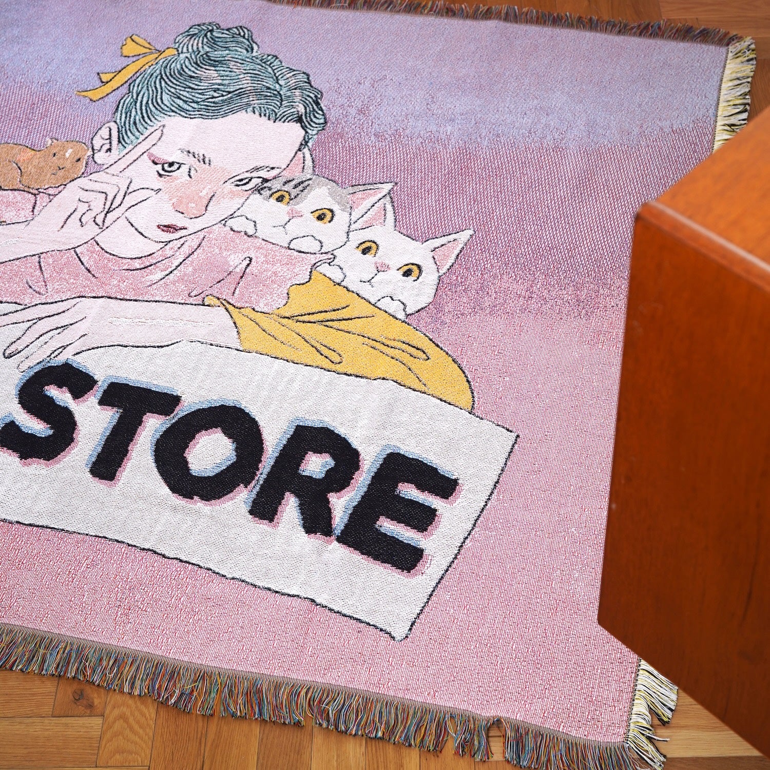 WED STORの12周年のタイミングで、我喜屋位瑳務さんと一緒にジャガード織りブランケットを作りました。掛けても敷いても最高です。2~3シーターソファ・シングルベッドにちょうどいいサイズ感です。しっかり安心な重厚感、織りならではの雰囲気が最高なのであらゆるシーンにFITしてくれます。ネット使用・単体での洗濯が可能です。