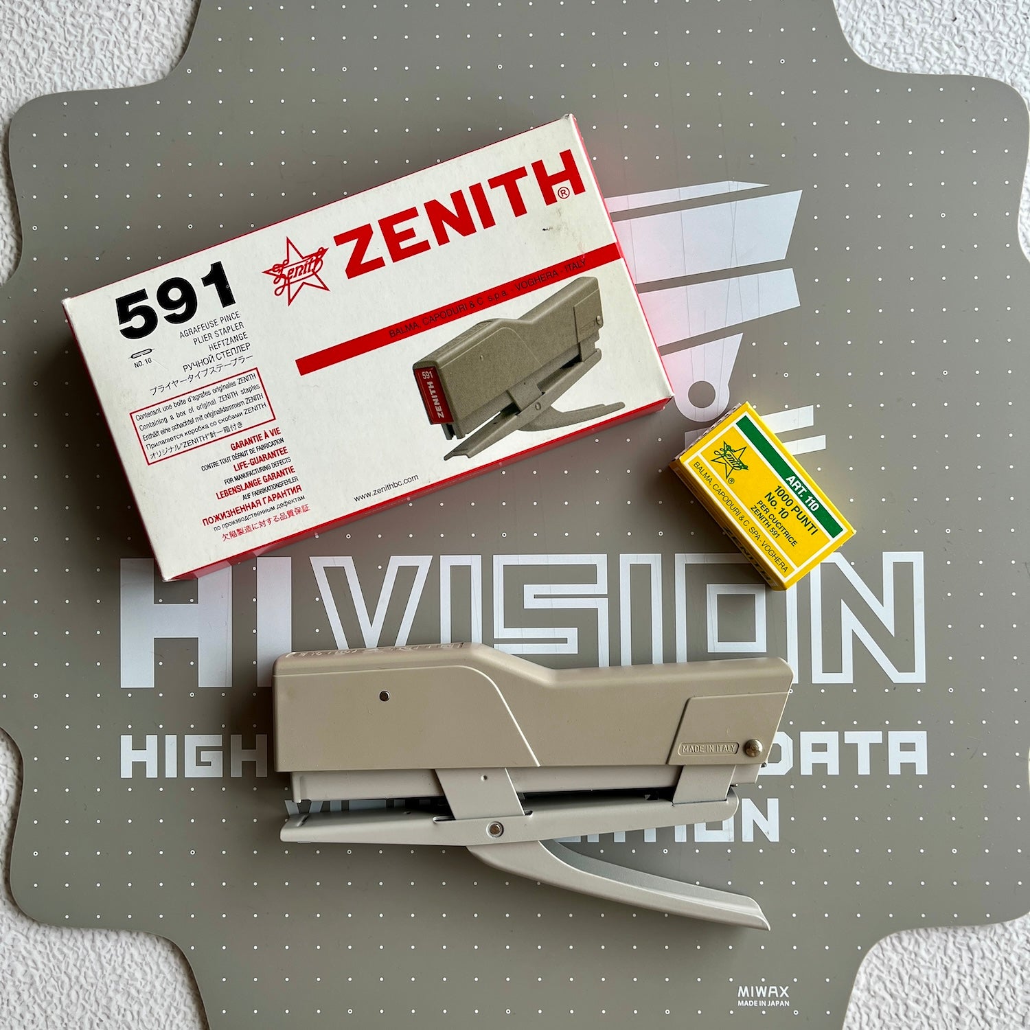 いわゆるホッチキスなデザインじゃないところが気に入ったZENITHのステープラー。ホッチキスっていうのは日本だけらしいです。針を一度に200本も装填できるのも便利。厚い紙束も軽く綴じられます。ついつい出しっぱなしにしてしまう文房具は、置いていて絵になるものを選びます。スタイリッシュで使いやすいステープラーです。