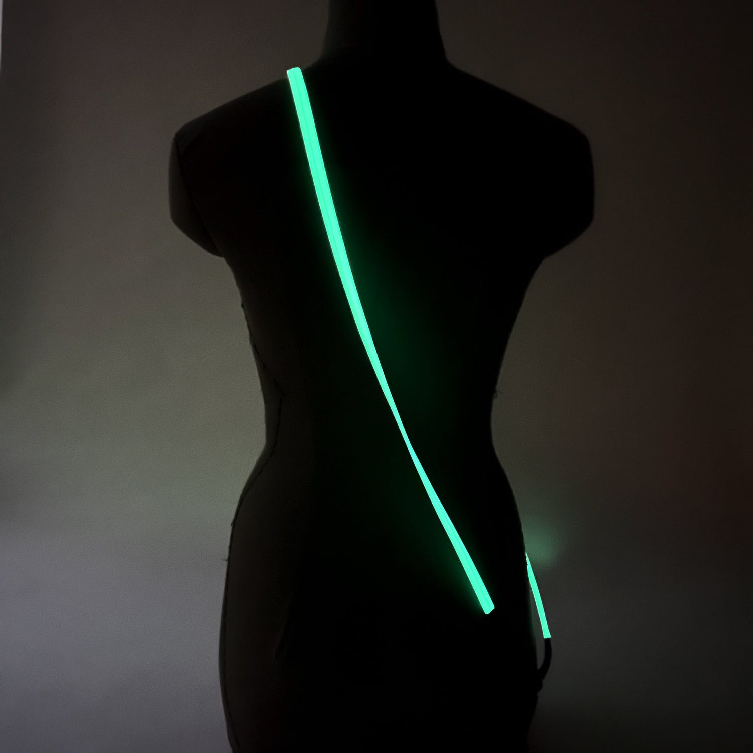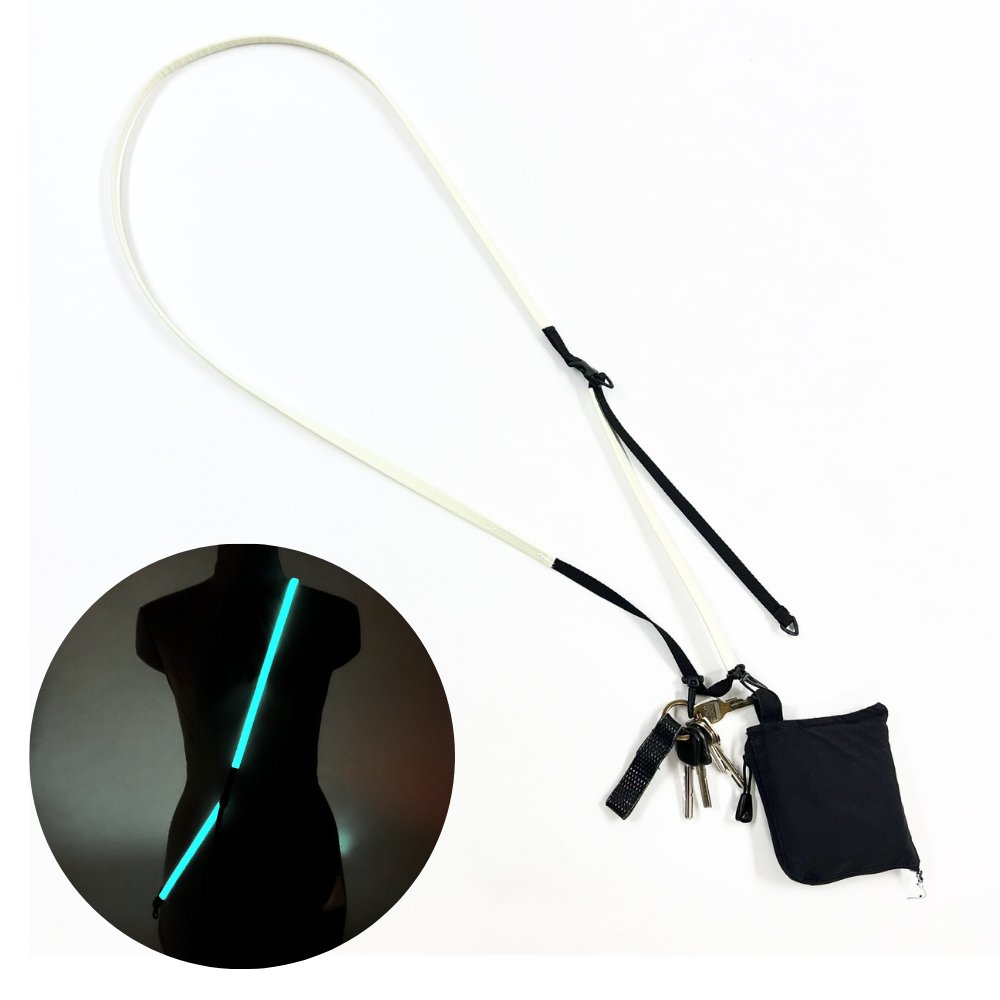 RESmildivオリジナルの蓄光リフレクター生地を使用したスリング。Dカンや三角カンが付属したポーチ類の肩掛け用ストラップとして使用できます。その他にも、自転車運転時のセーフティバンドとして襷掛けして使用するのも良いかと思います。