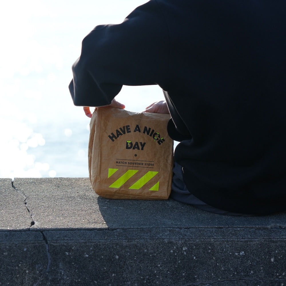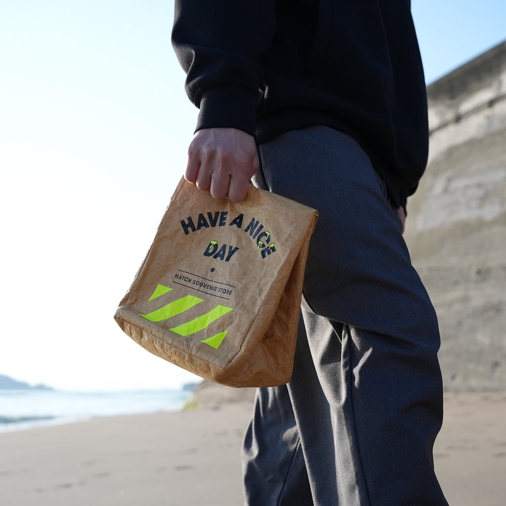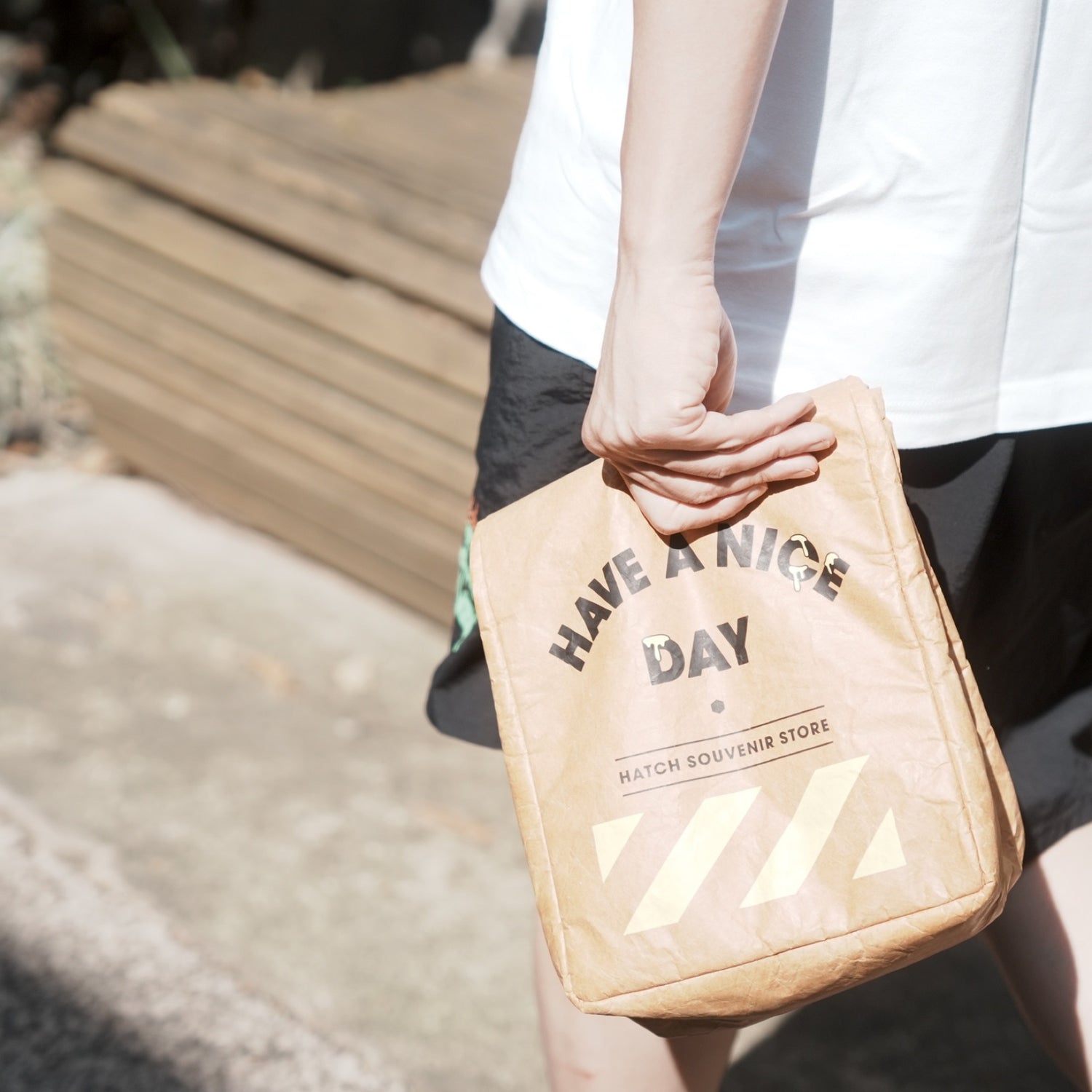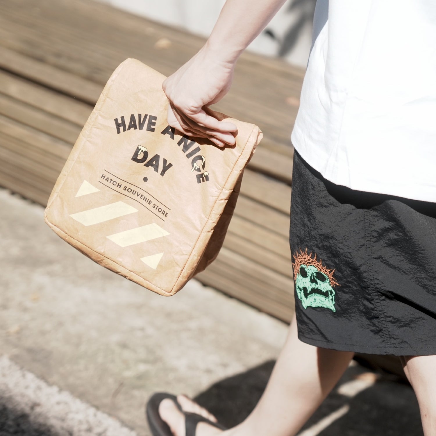 今回再入荷分より生地をアップデートしました。HATCHオリジナルの紙袋のような見た目のロールトップ仕様のバッグ。内部には保冷効果を持ったクッション性のある素材を使用。蓋にはマグネットがついていて開閉がしやすいです。商品の色味について、お使いのPCのモニター環境により実際のカラーと画像の色味が違って見える場合がありますのでご了承ください。