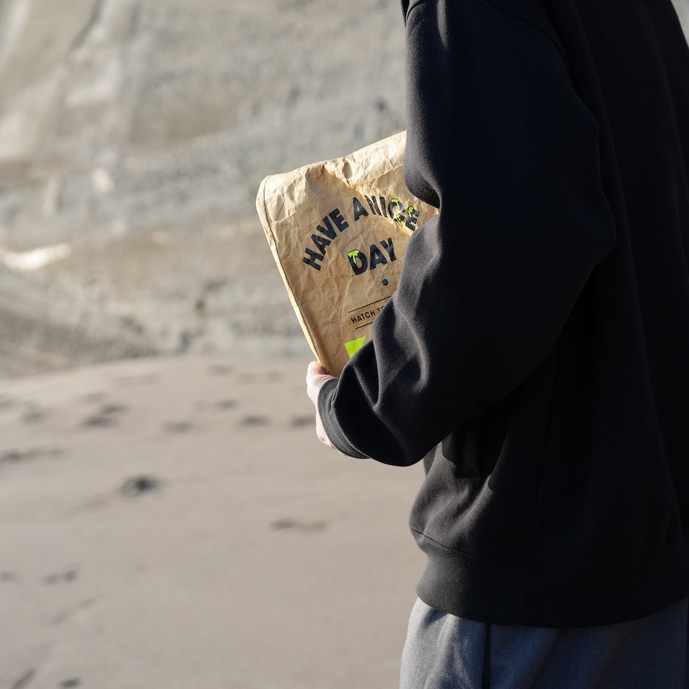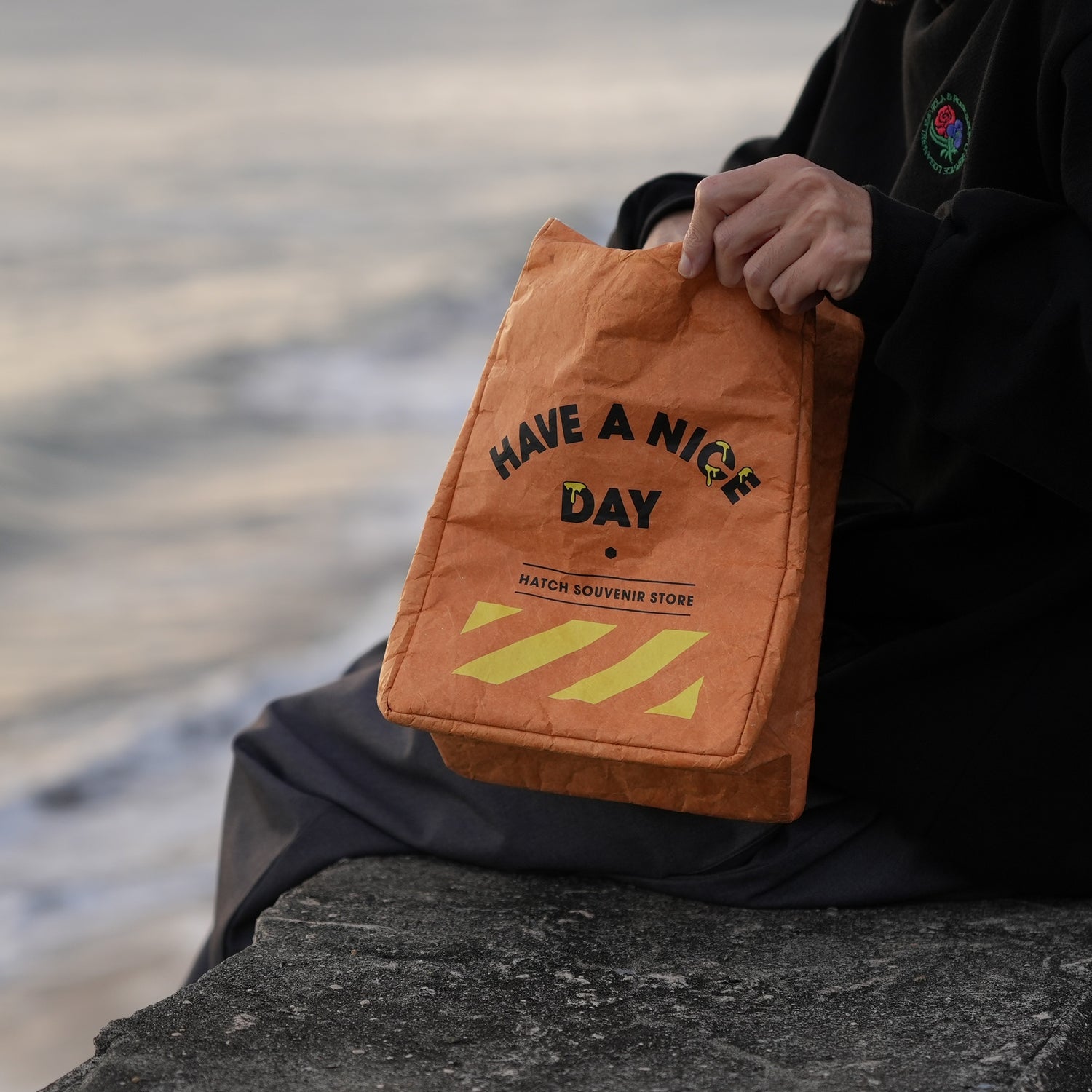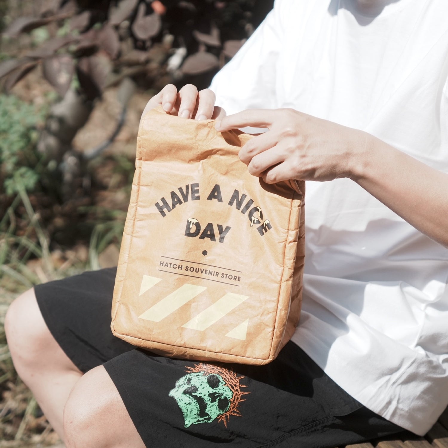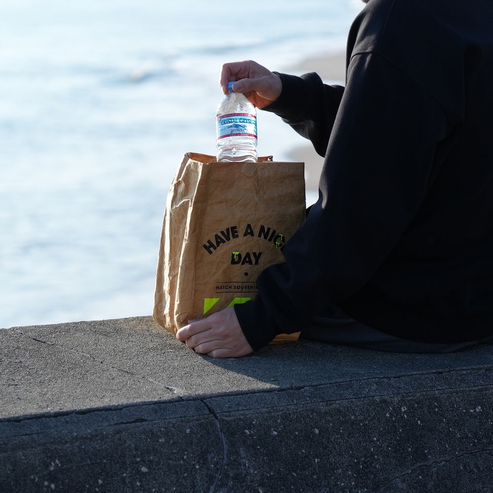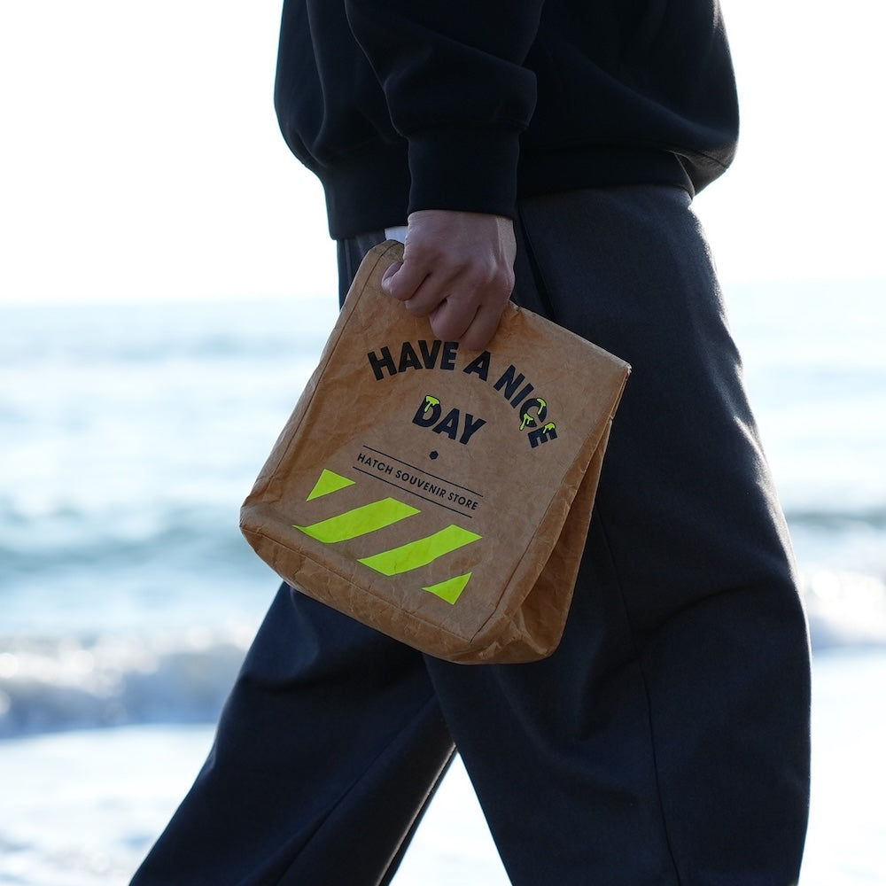 今回再入荷分より生地をアップデートしました。HATCHオリジナルの紙袋のような見た目のロールトップ仕様のバッグ。内部には保冷効果を持ったクッション性のある素材を使用。蓋にはマグネットがついていて開閉がしやすいです。商品の色味について、お使いのPCのモニター環境により実際のカラーと画像の色味が違って見える場合がありますのでご了承ください。