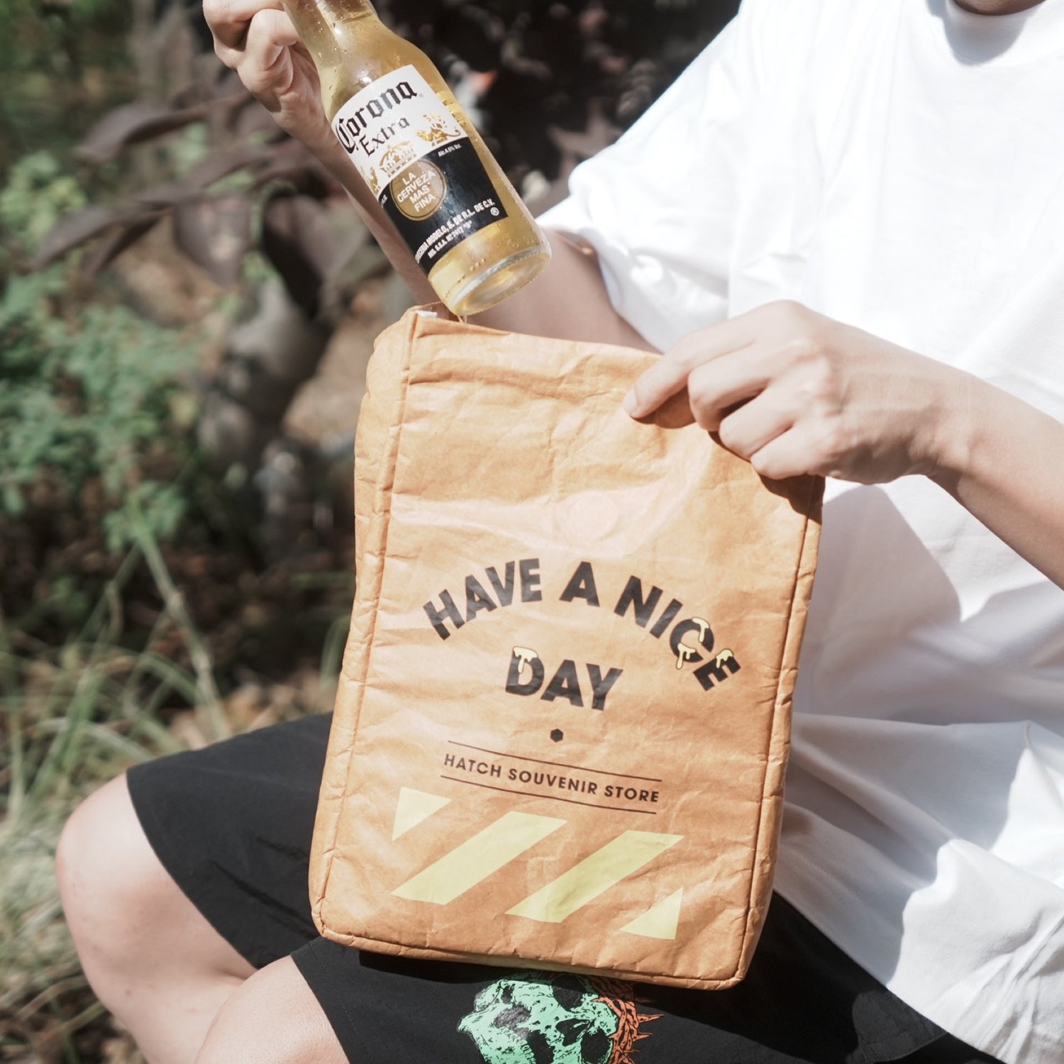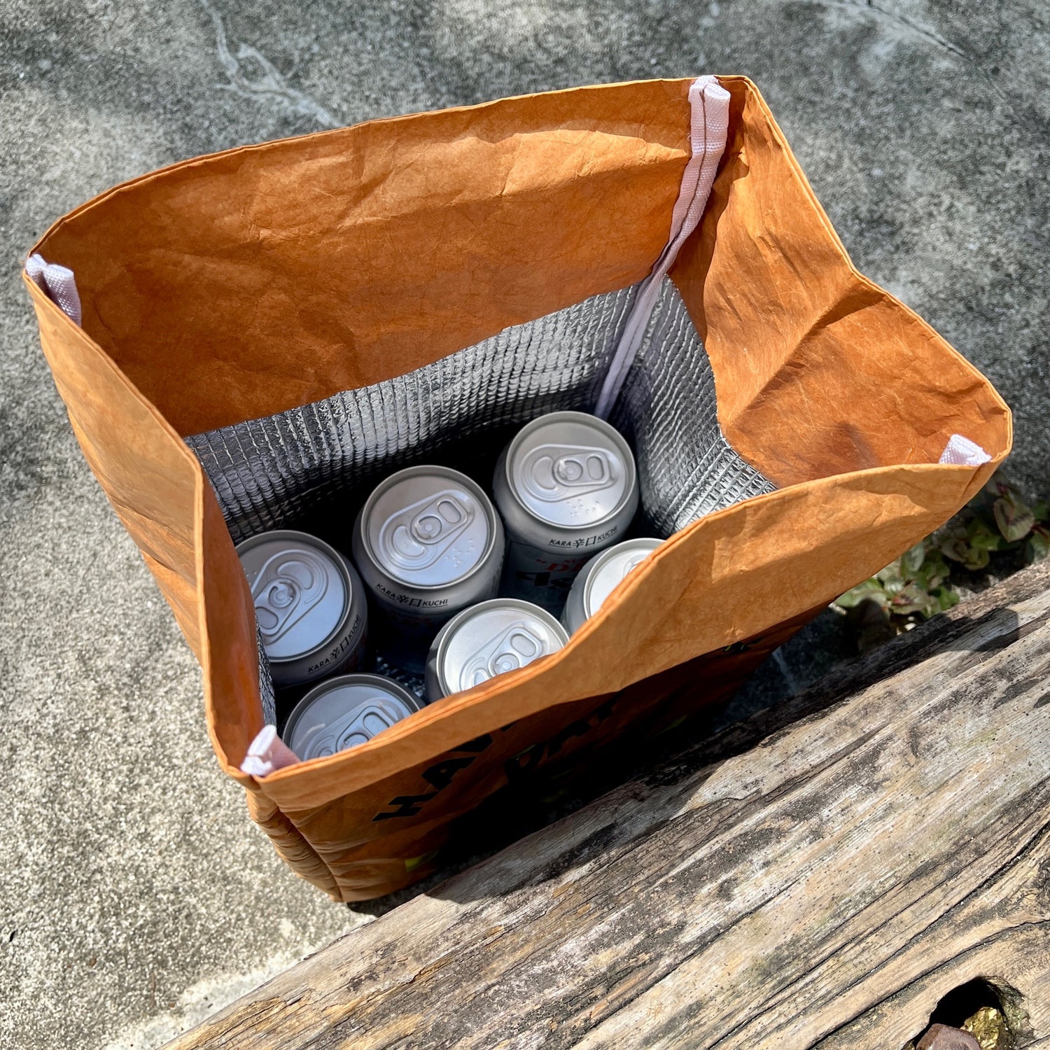 紙袋だと思った?いいえ、内側は保冷効果を持ったクッション性のある素材で、しっかり“できるヤツ”です。350ml缶がきっちり6本イン。ランチバッグにもぴったりのサイズ感で、毎日のお弁当にも、週末のピクニックにも、ちょっとそこまでの買い物にも。小回りのきく、ちょうどいいサイズ感。見た目が可愛すぎるから、クラッチバッグ感覚で使っても、なんかサマになる。財布とスマホだけ入れて、ふらっと出かけるときにもぴったり。ただそこにあるだけで、なんかサマになる。キッチンの棚でも、ベンチの上でも。マグネット付きの開け口で、使いやすさにもこだわりました。そしてこのクオリティでこの価格…ほんとに、いいの?HATCH的“超良心プライス”、ぜひその手で確かめてみてください。