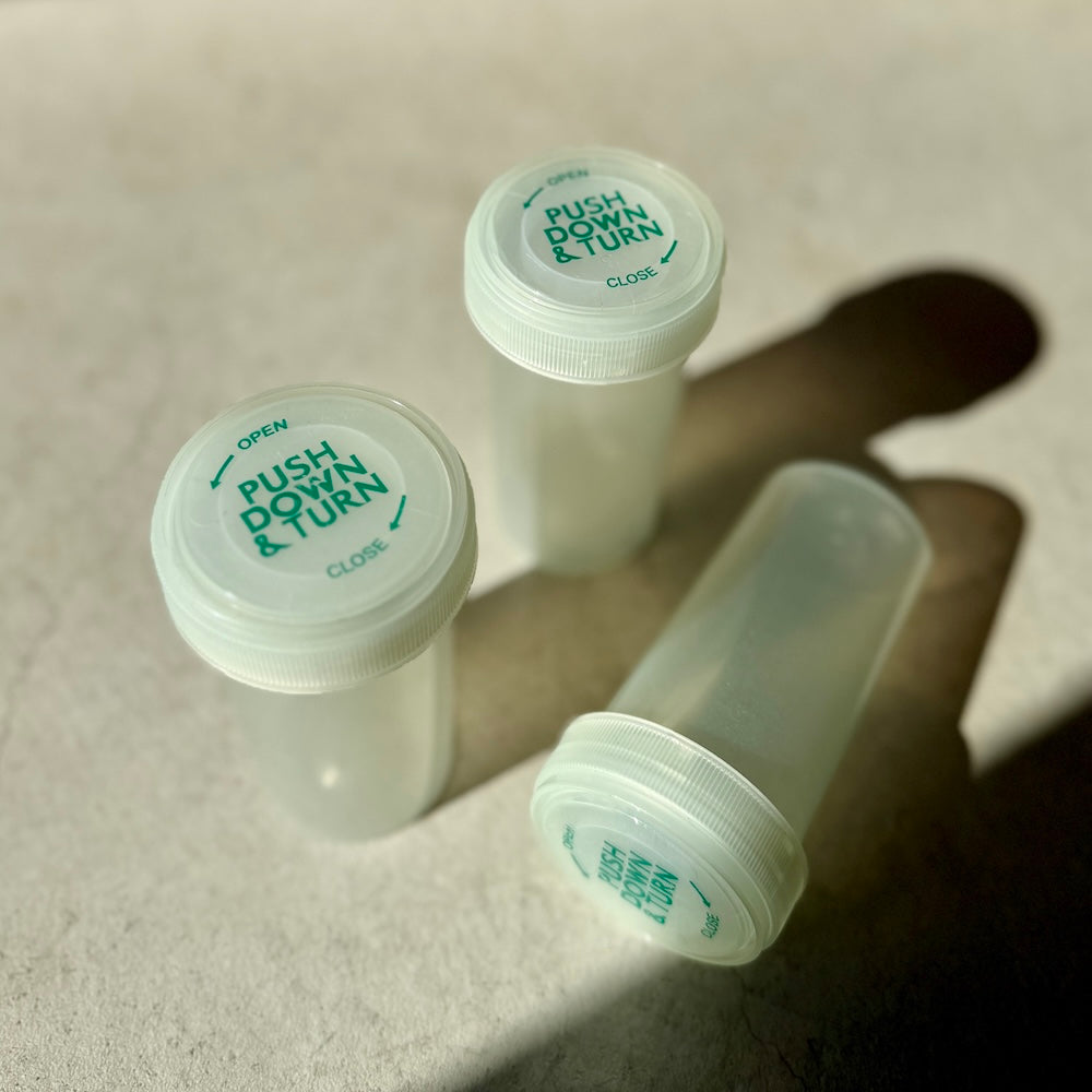 海外ドラマや映画でよく見かけるピルケース。小さなお子様の誤飲を防ぐために、簡単に開けられない構造になっています(蓋を押しながら開けてください)。蓄光仕様なので、暗闇で光ります。蓄光具合・時間は環境(光源の強さや蓄光時間)で変わります。ご理解ある方のみご購入ください。