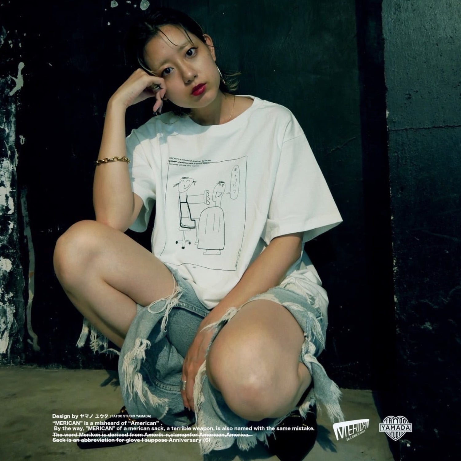 ✔︎「メリケン」ってアメリカンの聞きまちがえ。ちなみに、メリケンサックの「メリケン」もおなじ。 ✔︎年齢世代性別関係なしのおNEWなカルチャーショックTシャツ ✔︎ヤマノユウタ(TATOO STUDIO YAMADA)コラボ