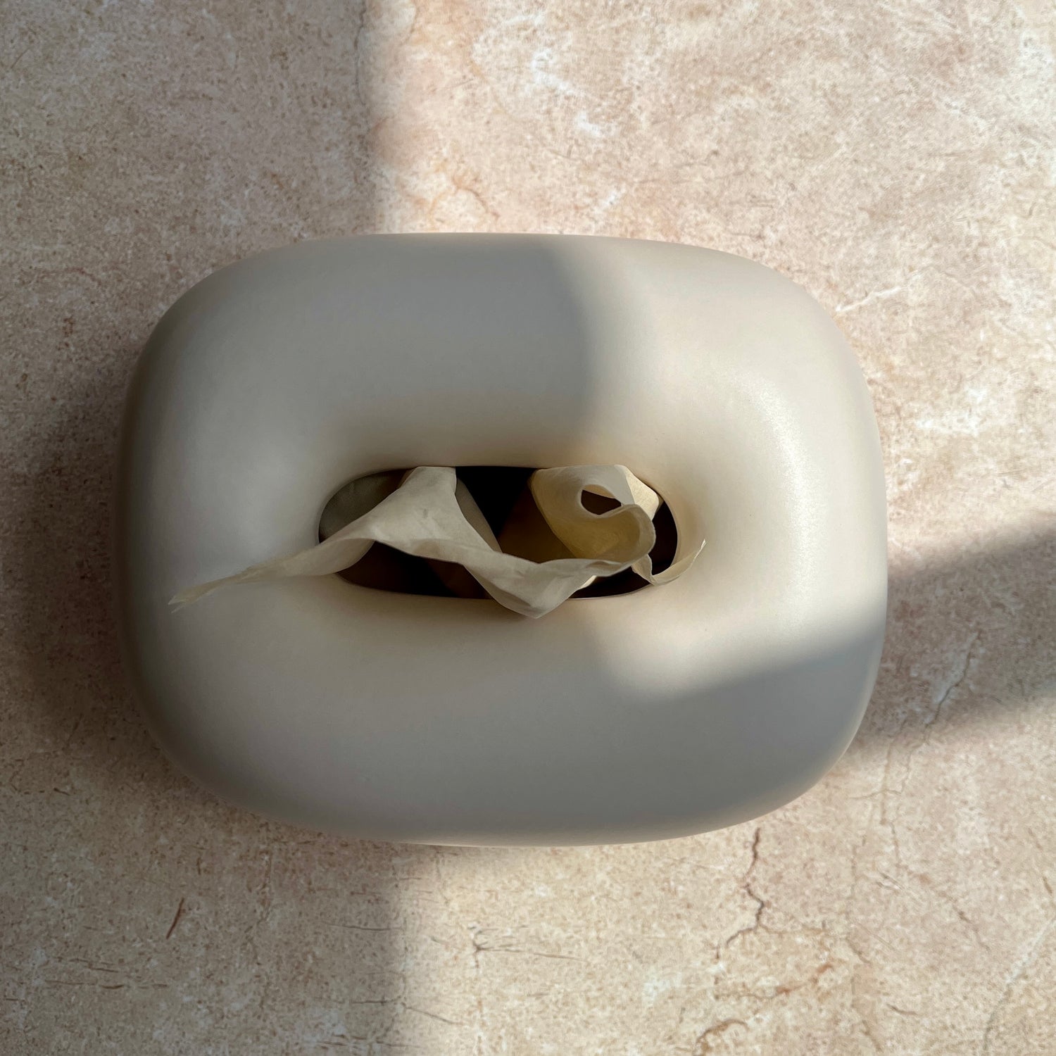 重みのあるセラミック素材で、フォルムも美しく、部屋のコーディネートの一品として存在感を放つ。
