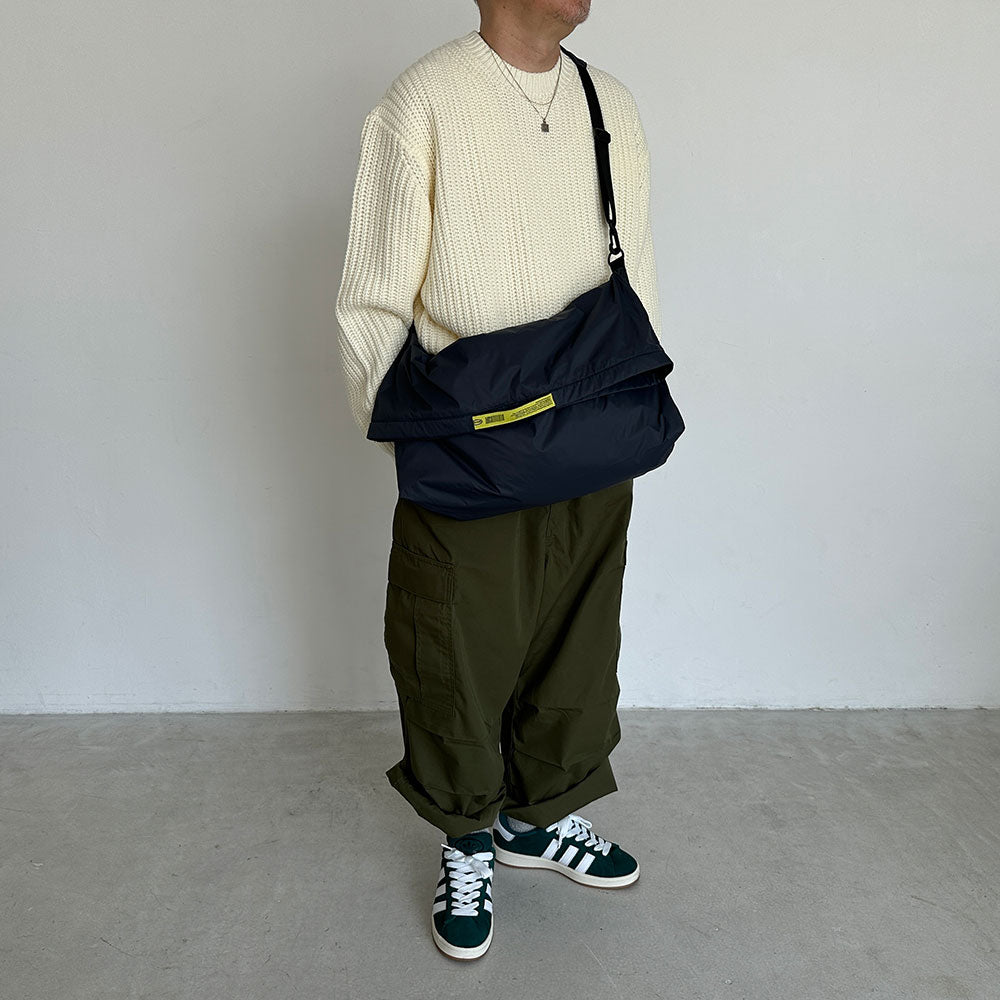 薄手のナイロン生地を使用したライトウェイトなパッカブルショルダーバッグ。サコッシュ、トートバッグ、ショルダーバッグと使い方が分けられる3WAY仕様です。サコッシュの中にバッグ本体を収納してコンパクトに持ち運び、荷物が増えたら中のバッグを取り出してエコバッグとして。サコッシュ、トートバッグとしてそれぞれ別々に使用することも可能。シーンに合わせて様々な使い方ができる軽量バッグです。