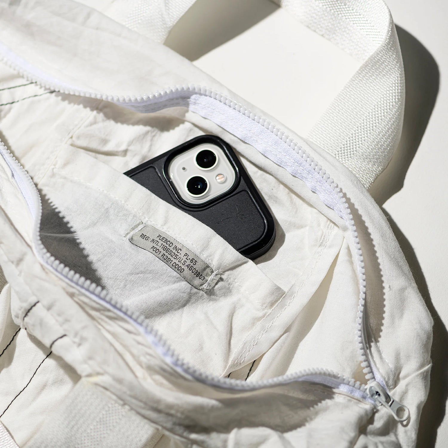 ※引き手のつまみ部分が少し曲がっていることがあります。パラシュート生地ですので自立しません