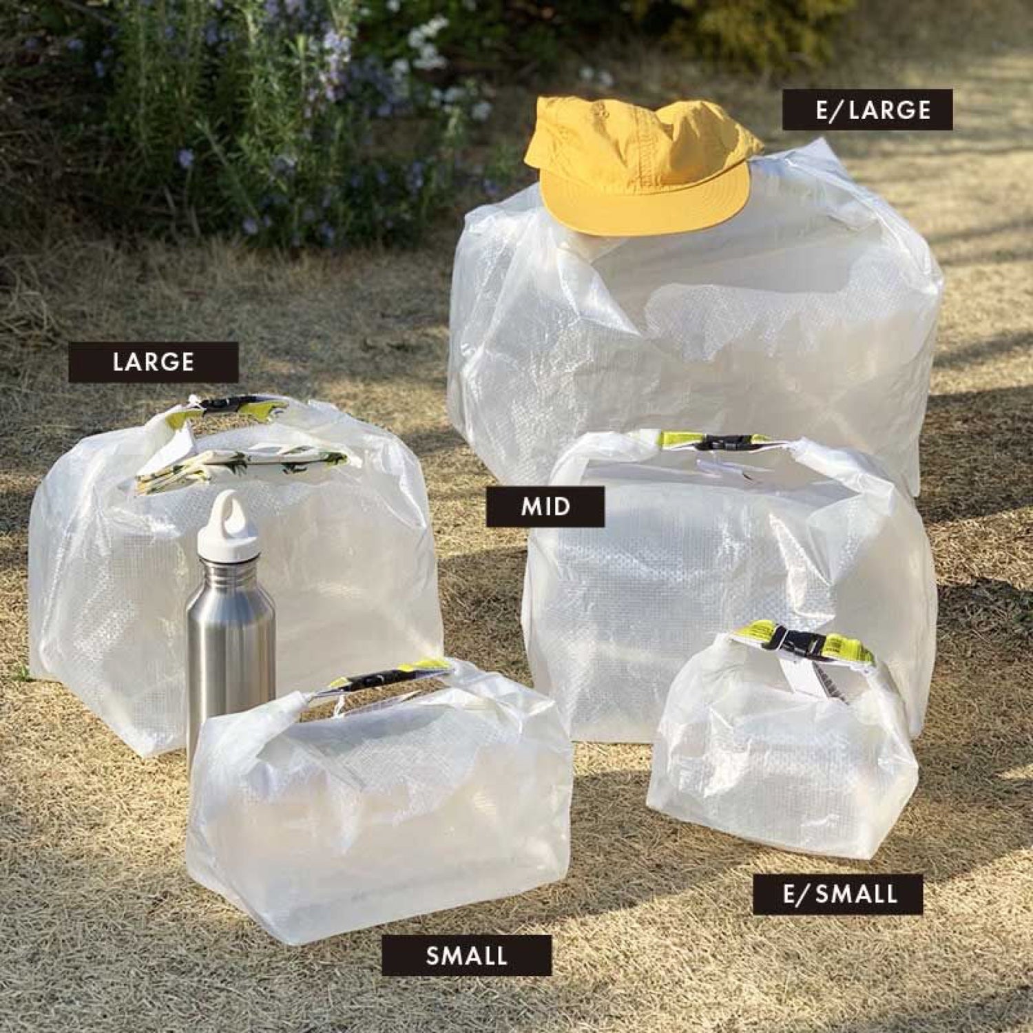 | サイズ | XS:W底面16×H25×D10cm、2L S:W底面22×H30×D15cm、4L M:W底面28×H39×D21cm、9L L:W底面34×H48×D26cm、20L XL:W底面40×H60×D30cm、37L |