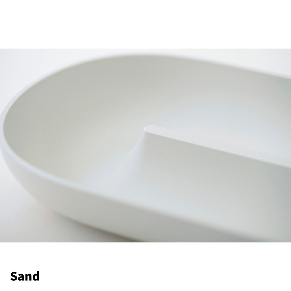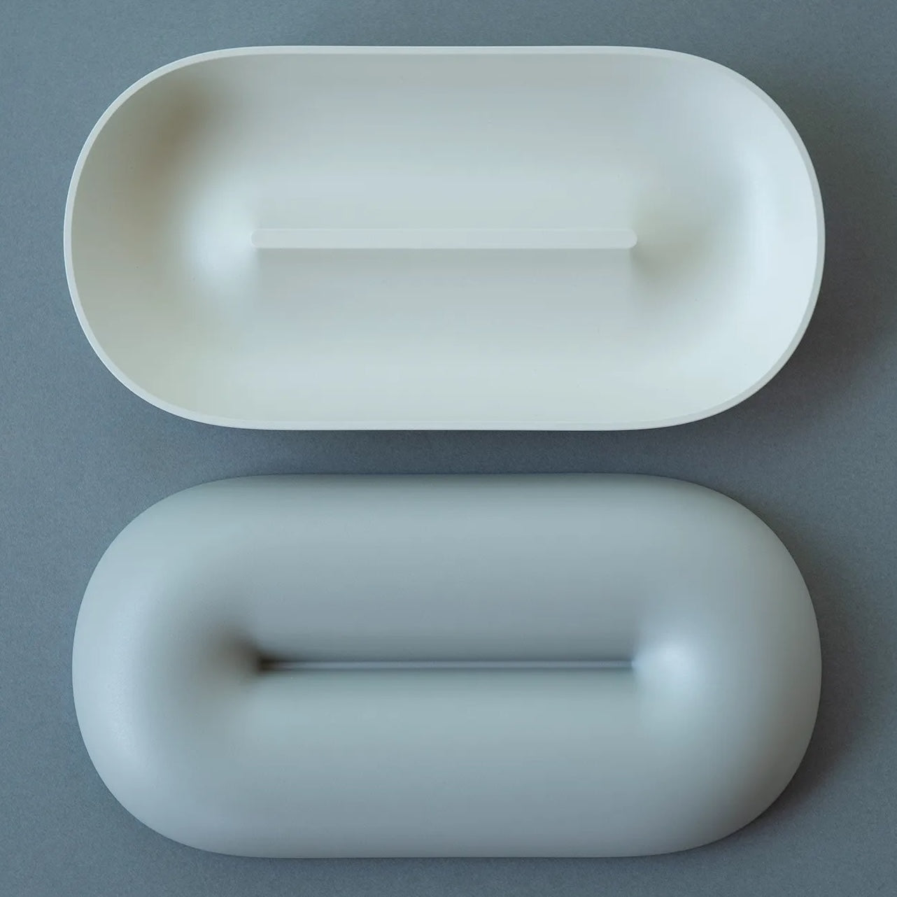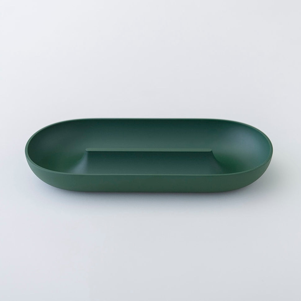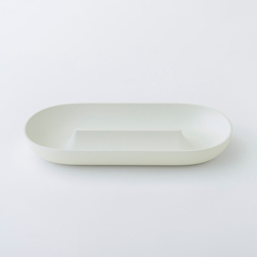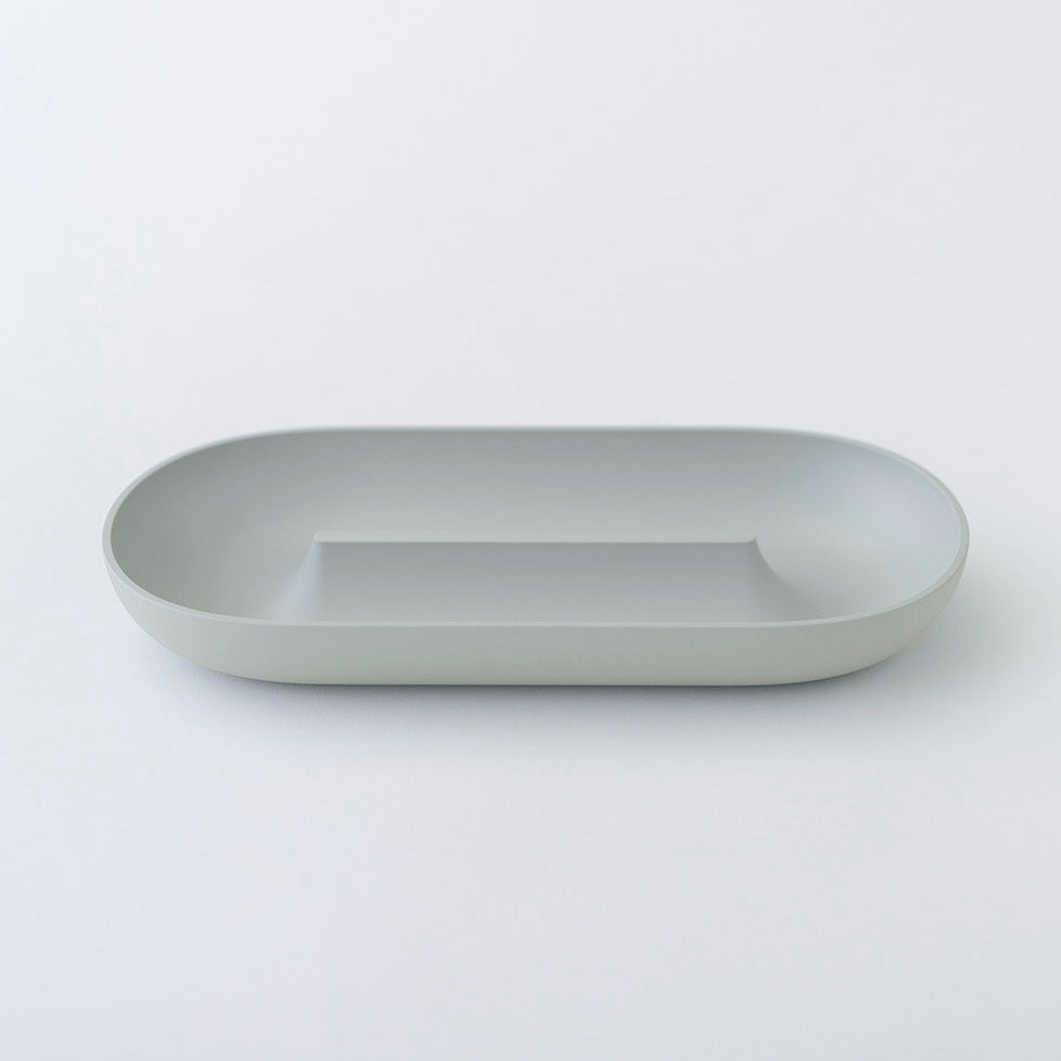 越前漆器の特性である「機械工業から手工業までの“間”=あわい」と、器という存在が受容する「用途の“間”=あわい」。この2つの「あわい」を構成要素としたプロダクト。漆器の盛り皿やプレートのゆるやかな仕切りをイメージしたハーフパイプのフォルム。食卓では、トレーやボウル、プレートとして。デスク周りに置いて、散らばる文房具やメガネをすっきりと受け止めてもらったり。玄関先に置けば、鍵やアクセサリーの「定位置」としてもちょうど良さそうです。こんな風に一定の使い方はあるものの、使い手の日常から生まれる「創意工夫=アレンジ」をお膳立てします。Made in Japan