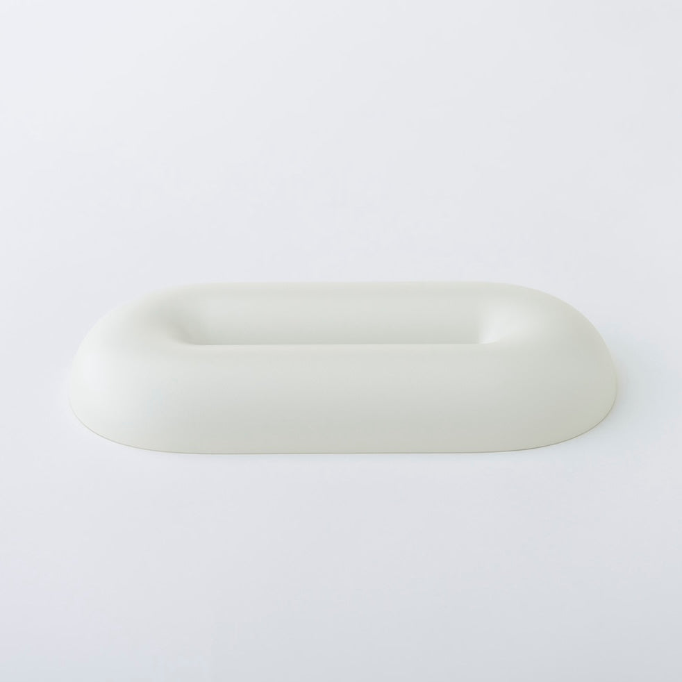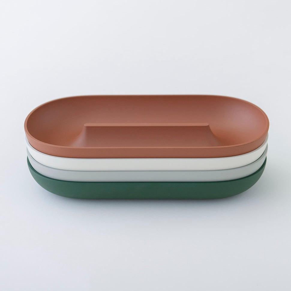 トレイというのは実に曖昧なもので、使い方は所有者の手に委ねられるアイテムだ。ものを受け止められれば形状に制限はないのだから、極論を言えば陶器の器でもなんでも良いのである。この裏も表も定義のないトレーには何を入れようか、と考えながら、今はただその空っぽの佇まいを眺めている。