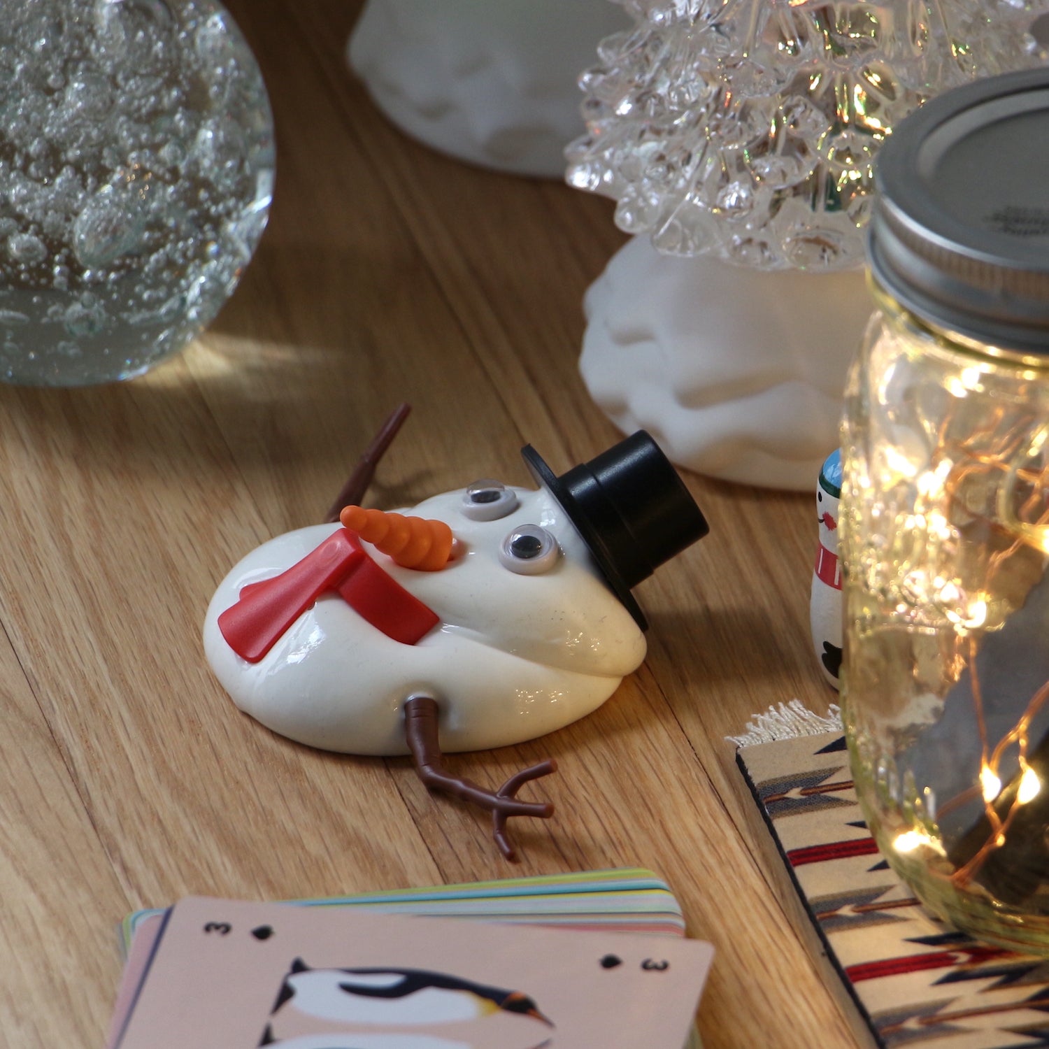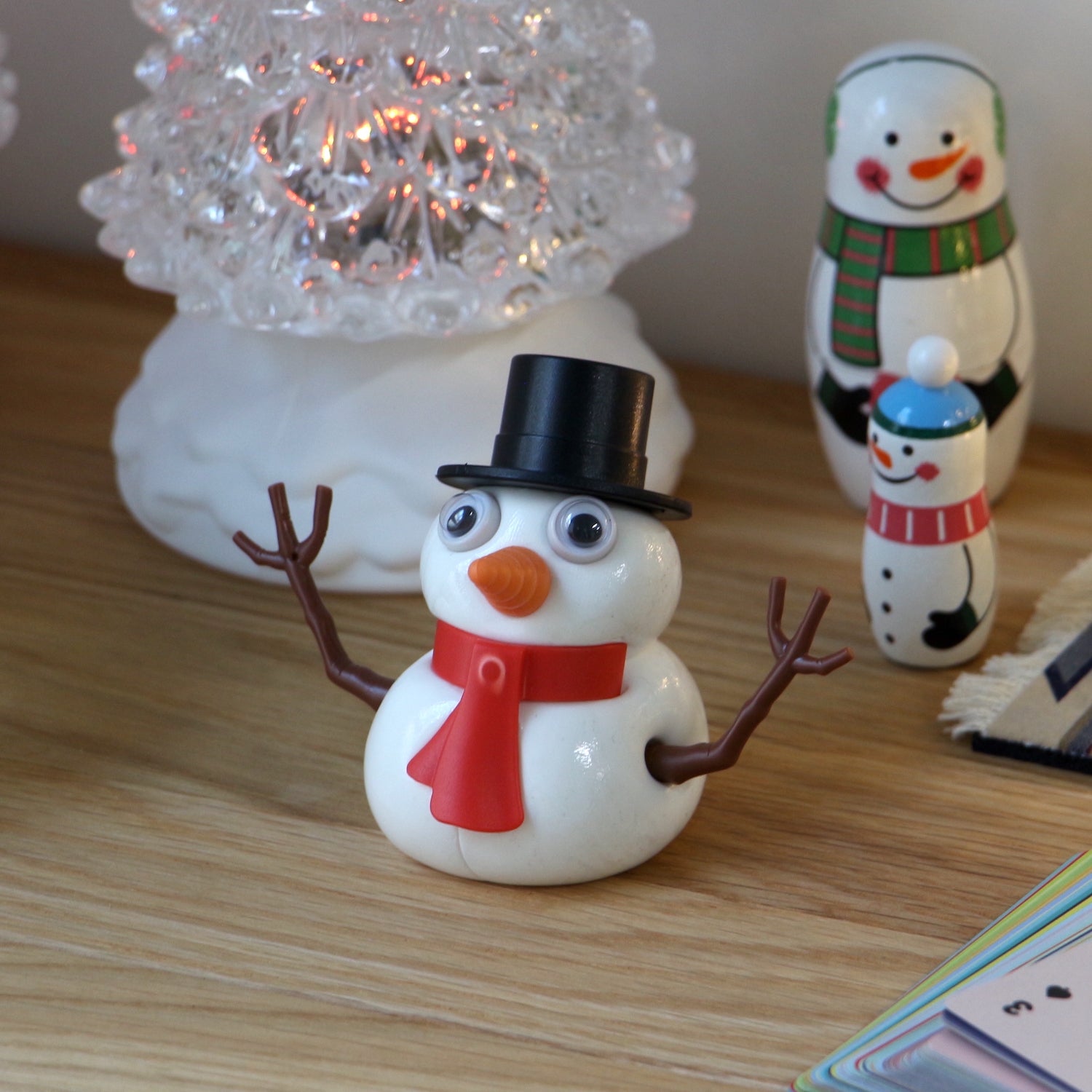 何度でも繰り返しつくって楽しめる、雪だるま制作キット。固まらない不思議な素材で、作ってしばらくすると、ゆっくりと溶けて1時間程でペタンコに。雪だるまづくりの醍醐味は、自分の手で冷たい雪に触れながら形をつくり、家族や友達と協力して世界にひとつだけの雪だるまを完成させる達成感の喜びです。そして溶けてしまった時のちょっとだけ残る切なさも思い出のひとつ。本当に溶けてしまうような雪の儚さを感じながら、目や鼻などのパーツの位置を調整しながら色々な表情をつくって、満足するまで雪だるまづくりとその切なさを何度でも楽しめます。これで夏でも冬でもオールウェイズ、"雪だるまつくろう"。