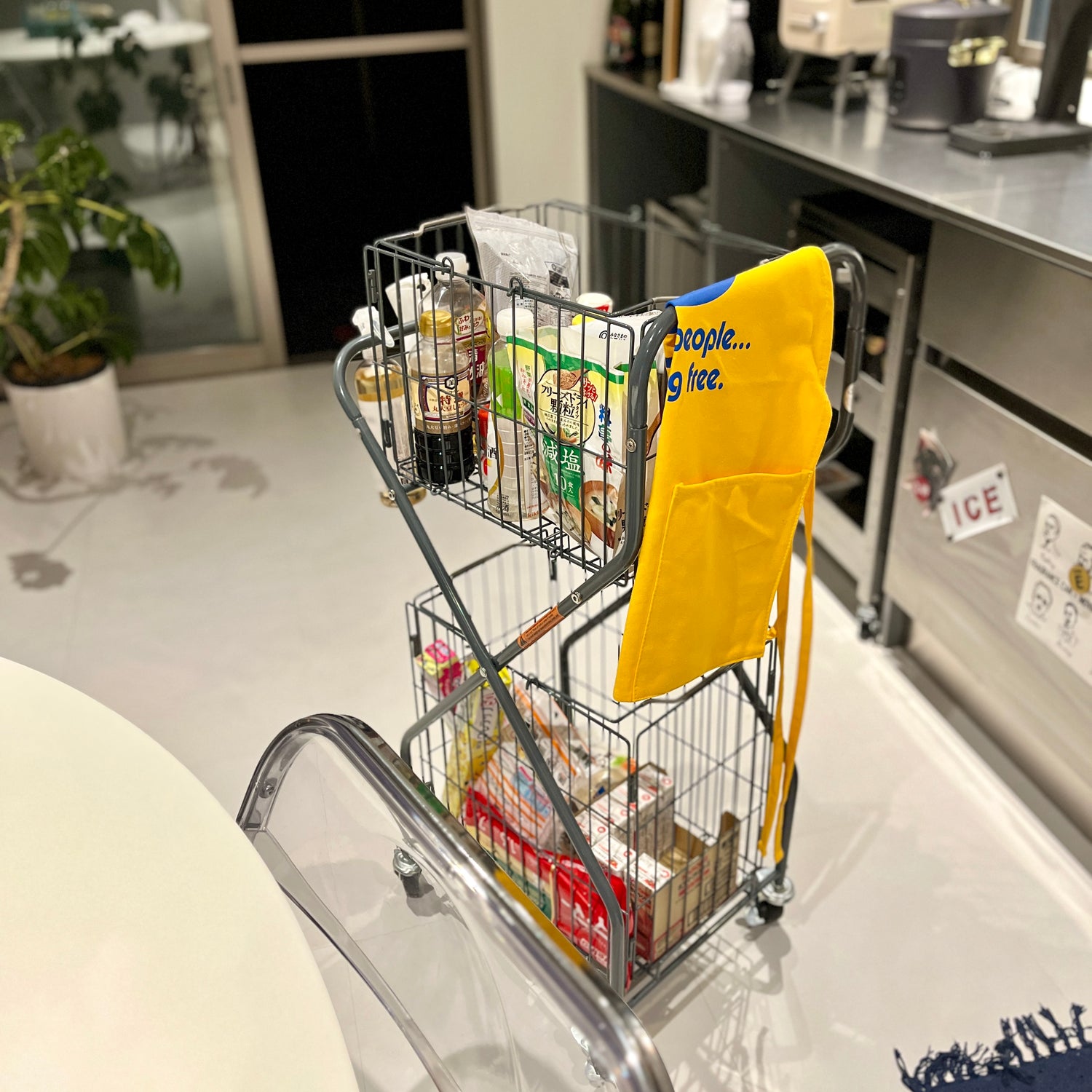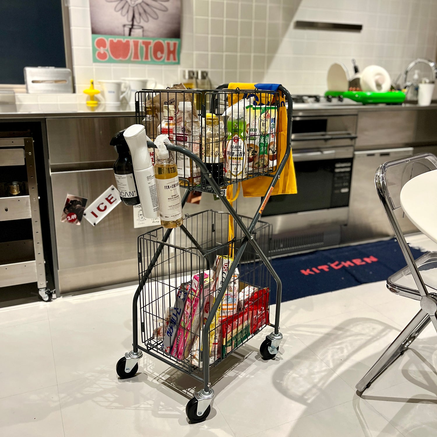 これ、雰囲気を出すという意味でも一家に1台、いや、2台必要。うちだったらアトリエと、キッチンと、バスルームと、、、、あれ、3台必要だ。リビングだったら雑誌なんかを整理して、キッチンだったらミネラルウォーターやソース缶、食材のストックを整理しよう。バスルームだったら洗濯物入れて、下のバスケットには洗剤類。ああ、想像しただけでもかっこいい。バスケットは取り外して単体でも使用可能。