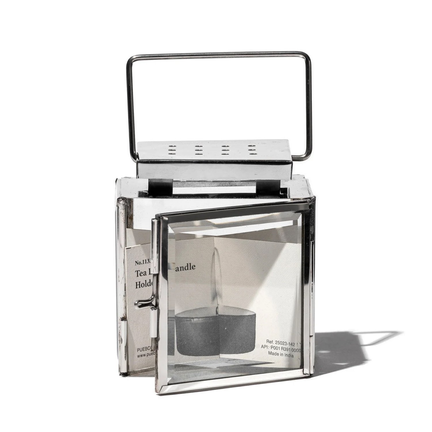 ティーライトキャンドルは付属しておりません。キャンドルの燃焼により本体(特に天面)が非常に熱くなりますので十分にご注意ください。製品の縁(ステンレス部分のエッジ)が鋭利になっております。注意してお取り扱いください。1,2,3枚目の画像のように持ち手は上がったままは止まりません。