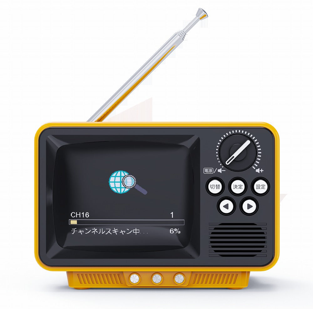 一家だんらんのお茶の間で、家族みんなで観ていたブラウン管テレビ。そんな懐かしいデザインを忠実に再現した、コンパクトなワンセグテレビです。
