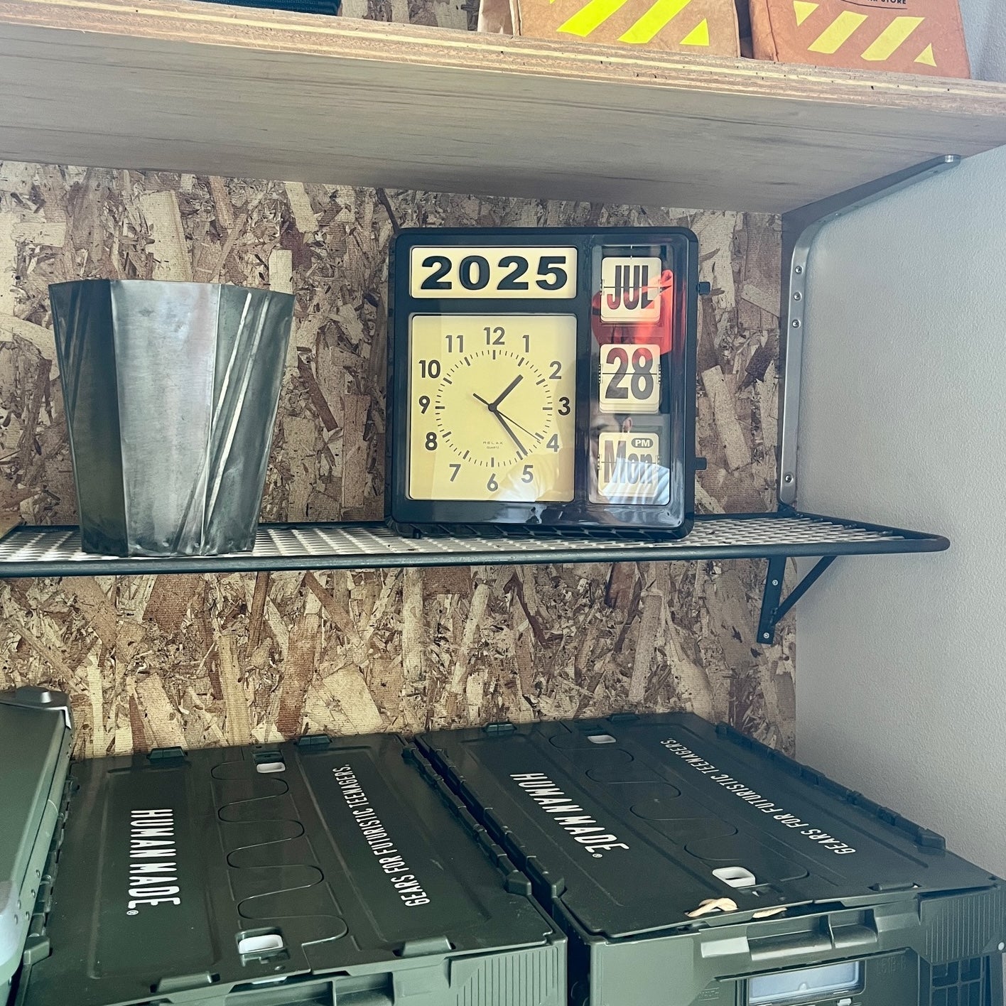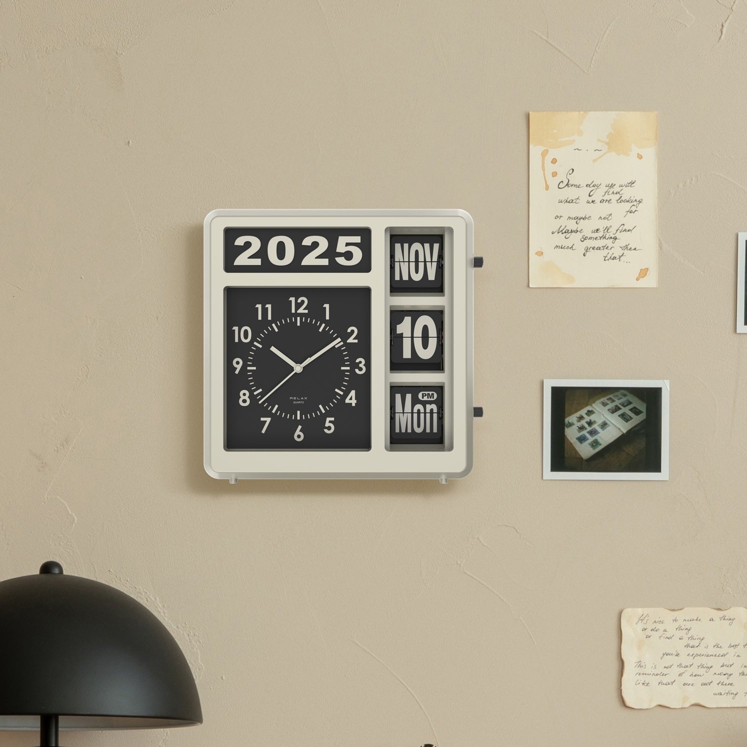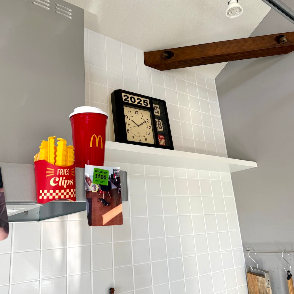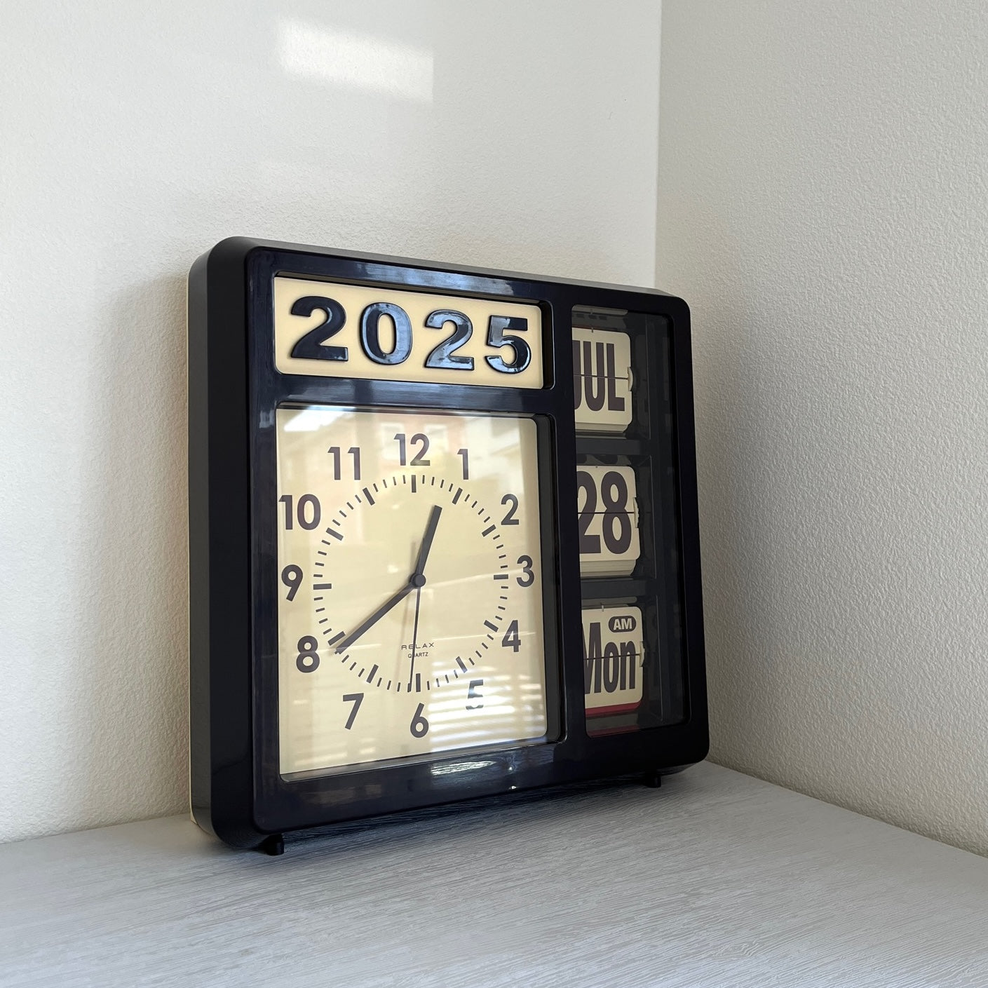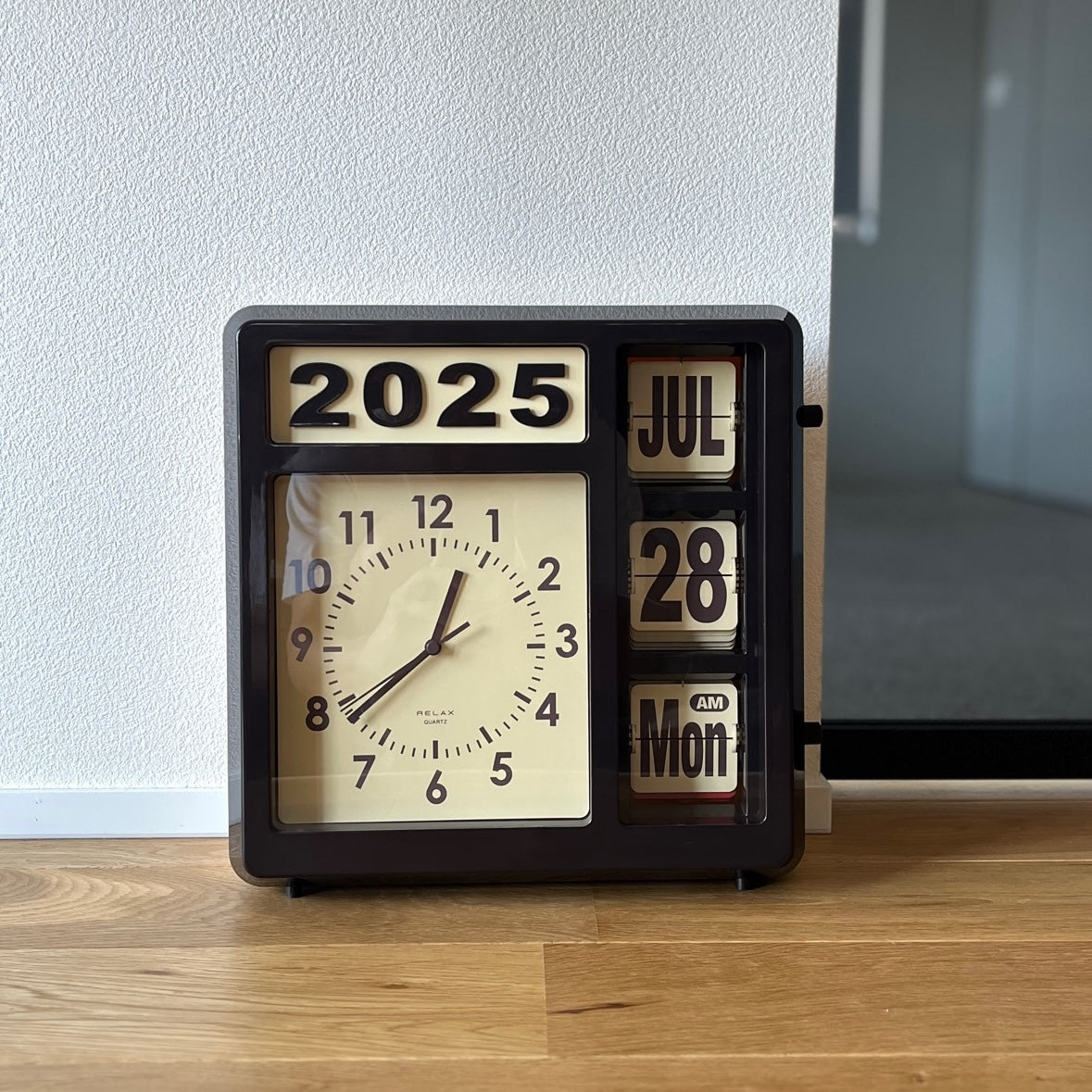 今日って何日?と思ったときに、ふと視界に入る。時間も日付もこれひとつで。でも、便利だからじゃなくて、ただここにあるだけでいいと思わせてくれる存在。少しレトロで、どこか無機質で、でも妙に愛嬌がある。そんな絶妙なバランスのカレンダークロックです。置いても、壁にかけても。空間の主役にならず、でも確実に印象を残してくれる。日付が静かに切り替わるたび、「今日はどう過ごそうか」と、少しだけ立ち止まれる。そんな存在です。