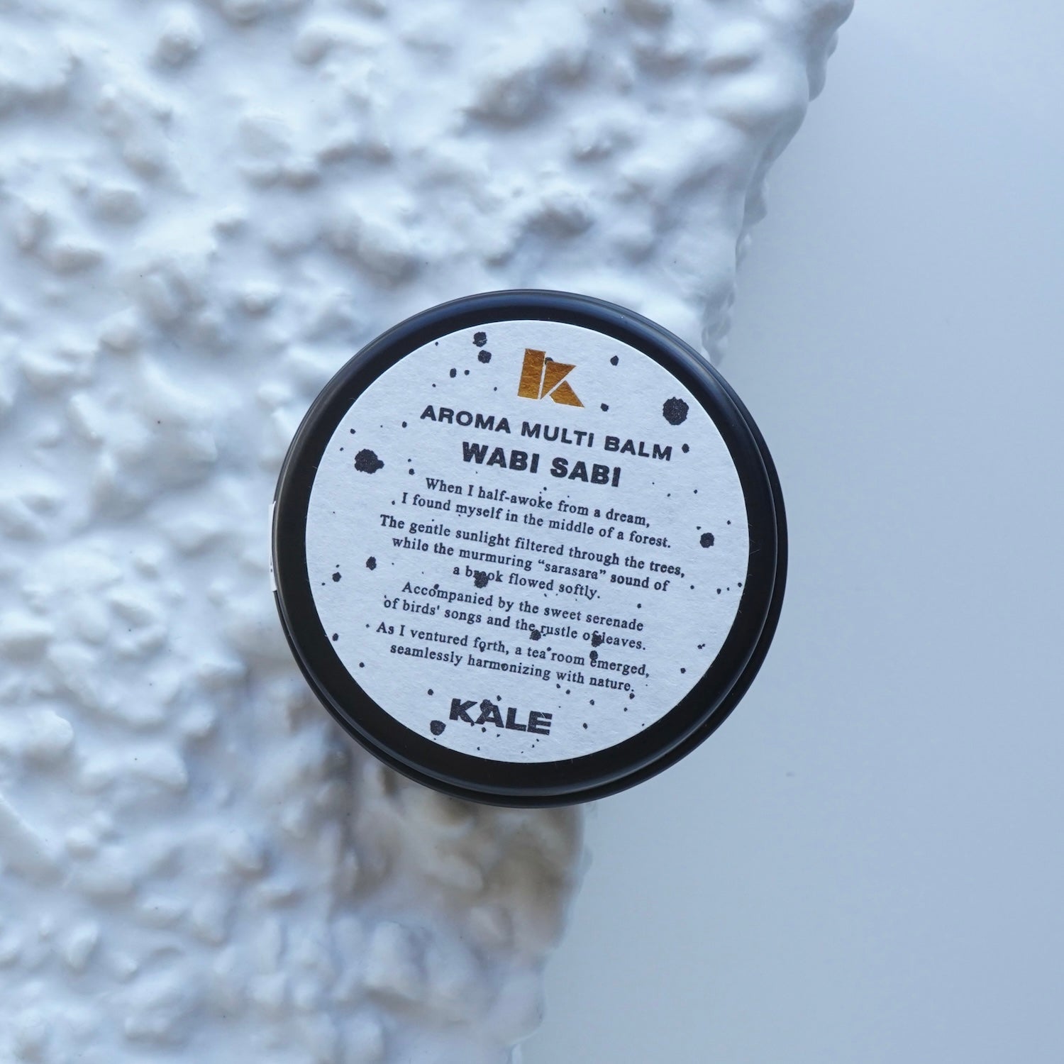 日常の喧騒から離れ、自然の恵みを感じる「森の茶室」をイメージし調香されたアロママルチバーム"WABI SABI"は、日本の伝統的な美意識である「侘び寂び(わび・さび)」を表現し、身体と心を穏やかな調和へと導きます。
