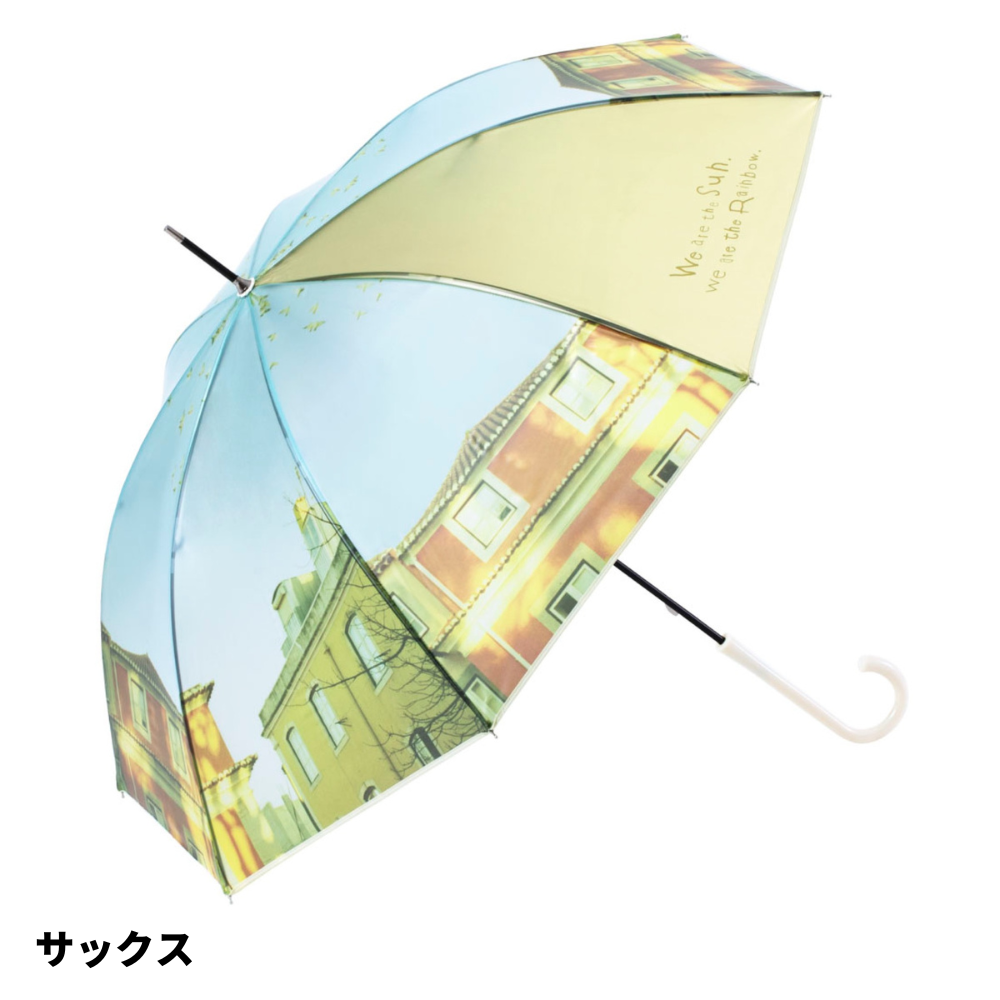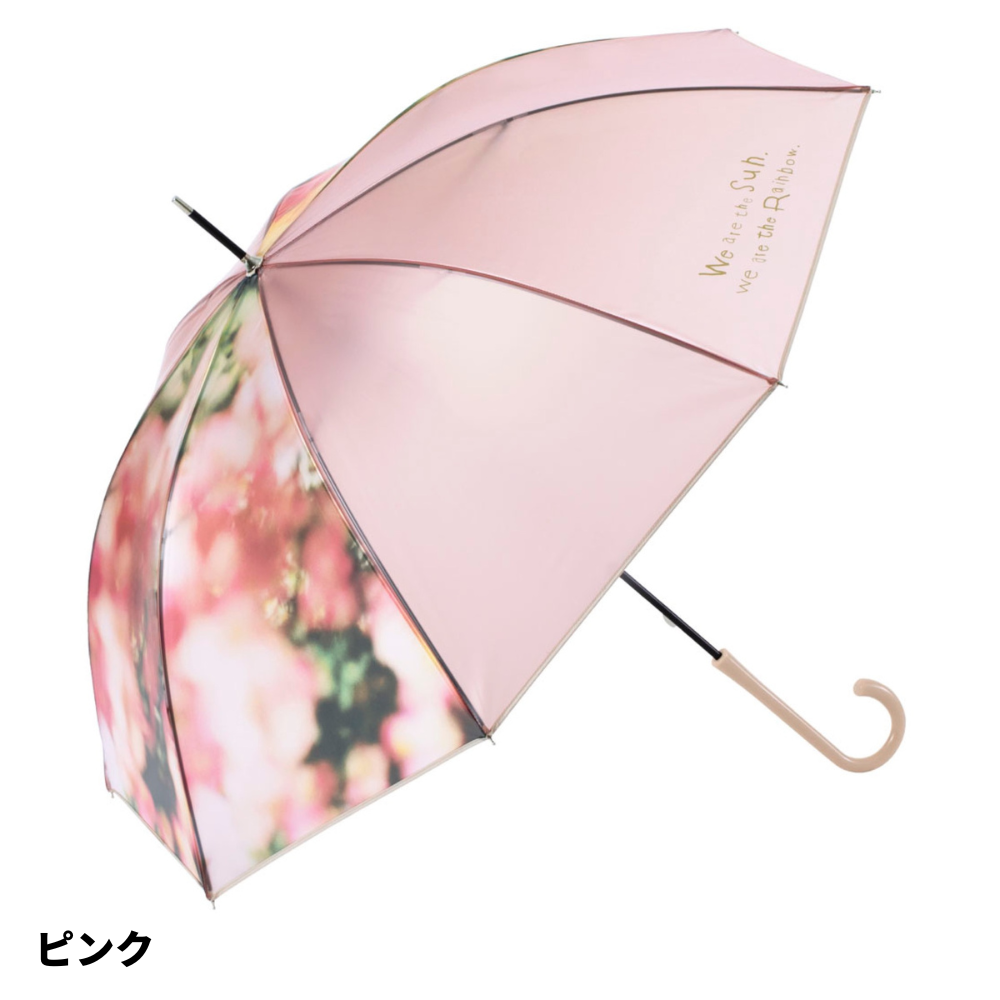 憂鬱な雨の日もすっごく楽しくなっちゃう傘だよ、わーい!ビニール傘にプリントしてあるから傘の中も明るいのに可愛いんです。"私たちが太陽で、私たちが虹なのだ”ってゆう文字が入っています。雨の日でも虹になって太陽になってルンルンできるアイテムです。