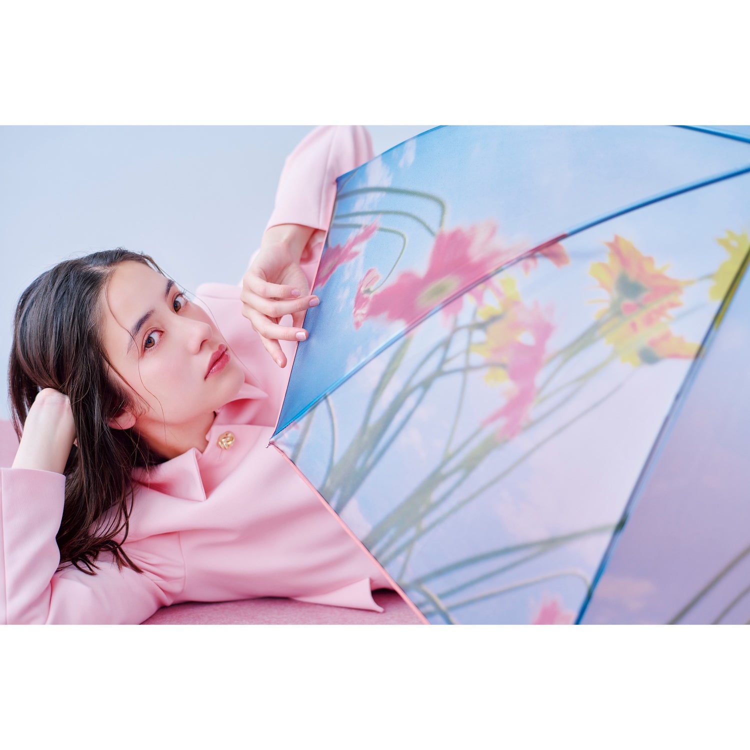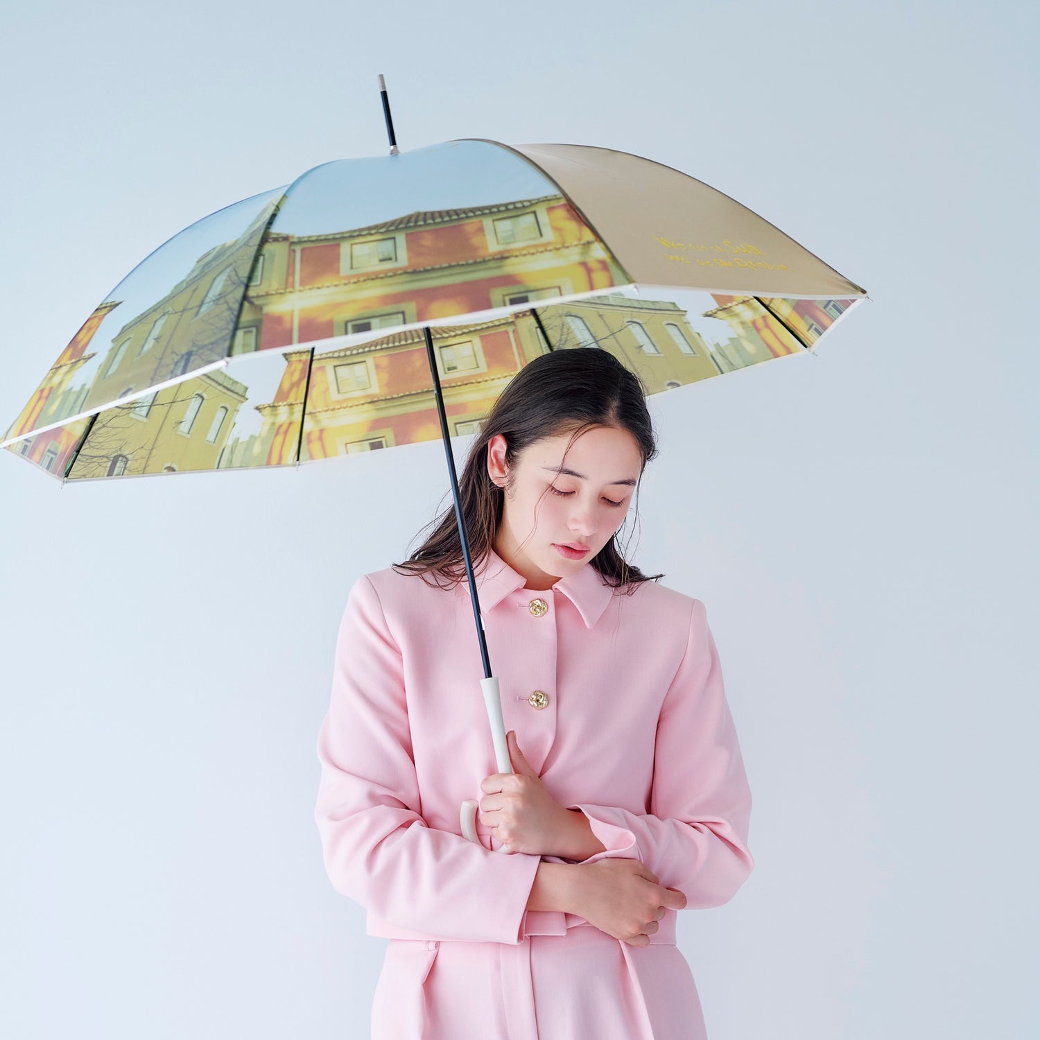 記憶の中に流れる時間のような優しい光や色の写った画が、傘にも映し出されたら素敵な情景になるのだろう、それを差して、包まれる人もきっと雨の日を穏やかに楽しく過ごすことができるのだろうと、デザイナーの強い想いからコラボレーションが実現。パウダリー生地の幻想的なテクスチャーと花盛氏の世界観をぜひご覧ください。