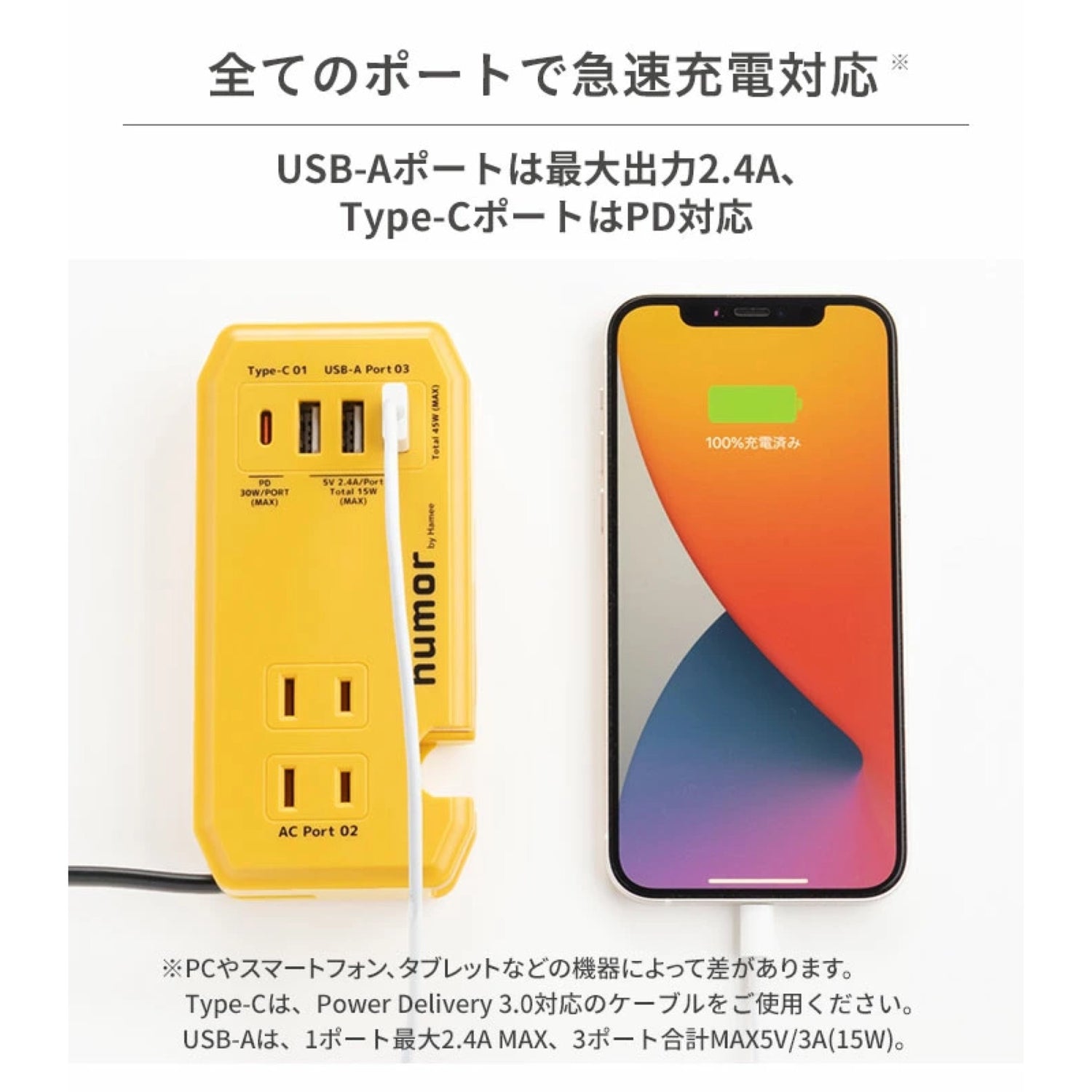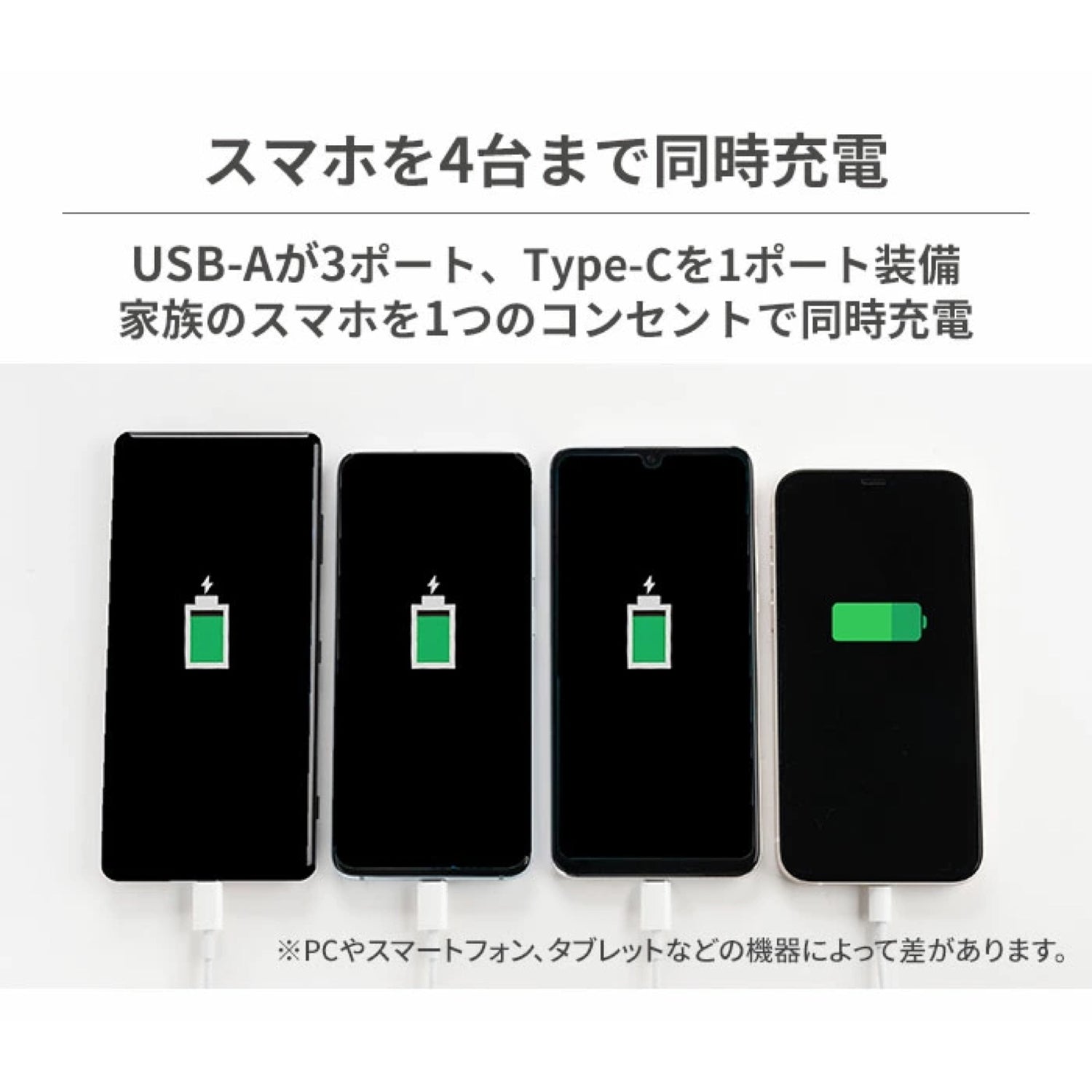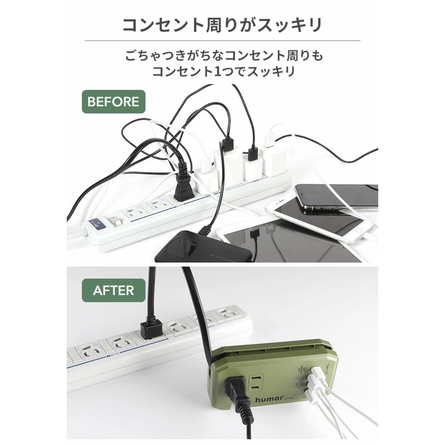 スマートにケーブルがまとまり、複数デバイスを同時に充電ができるシンプルなデザインの充電ステーションです。コンセント×2、USB TypeA×3、そしてUSB TypeCの差込口が一台にまとまっており、友人とのカフェでのミーティングに重宝しています。僕はパソコン、スマホ、Bluetoothイヤホンをつなぐ事が多くて、この充電ステーションがあれば複数デバイスの充電が、同時に素早くかつ効率的におこなえます。あらゆる電子機器を扱う時代、仕事のデスク周りやご家庭の充電プラグが、すっきり片付けば気持ちいいですよね。