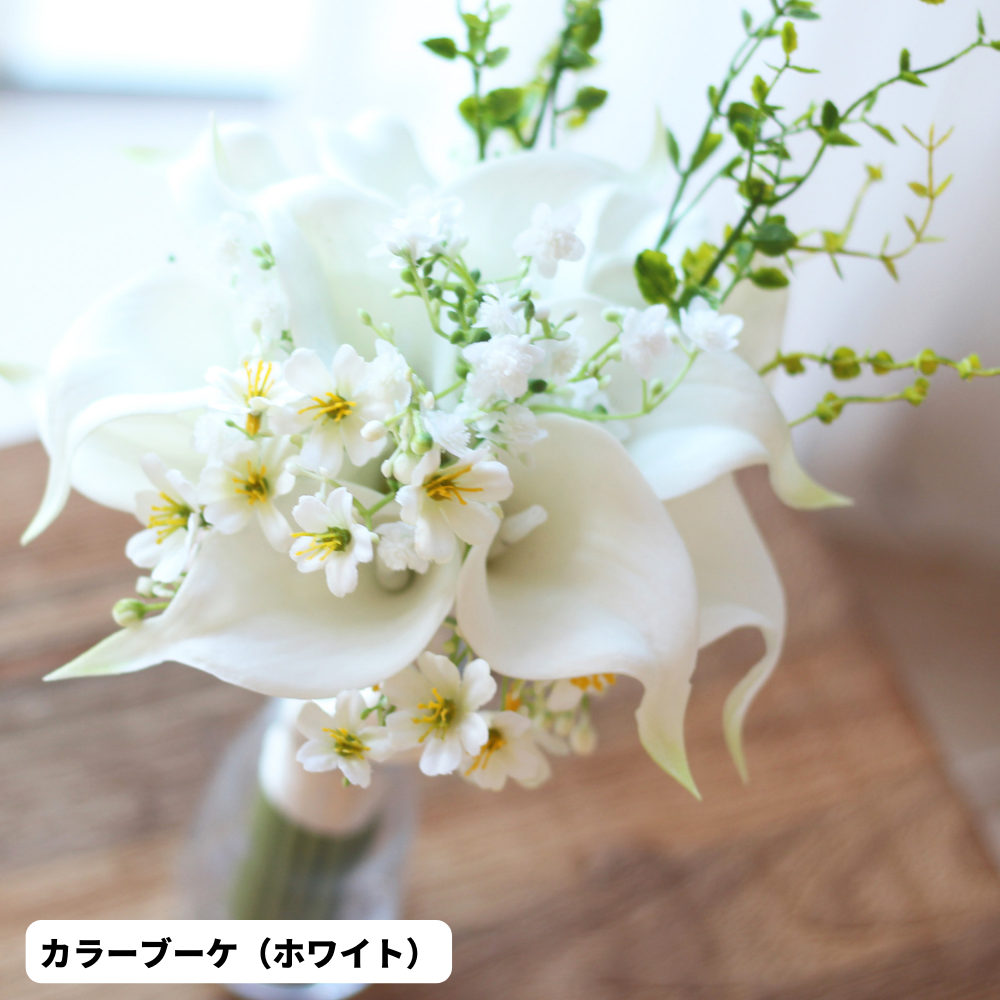 ※ブーケコレクションのお花部分はデリケートな作りで使用場所や環境により材質の特性上、使用経日による変色が起こります。直射日光に当たらないように窓際を避けて飾っていただくことをおすすめいたします。またホワイトカラーは純白のため経過による黄ばみ等が気になる方はカラーがついたものをご購入することをおすすめいたします。