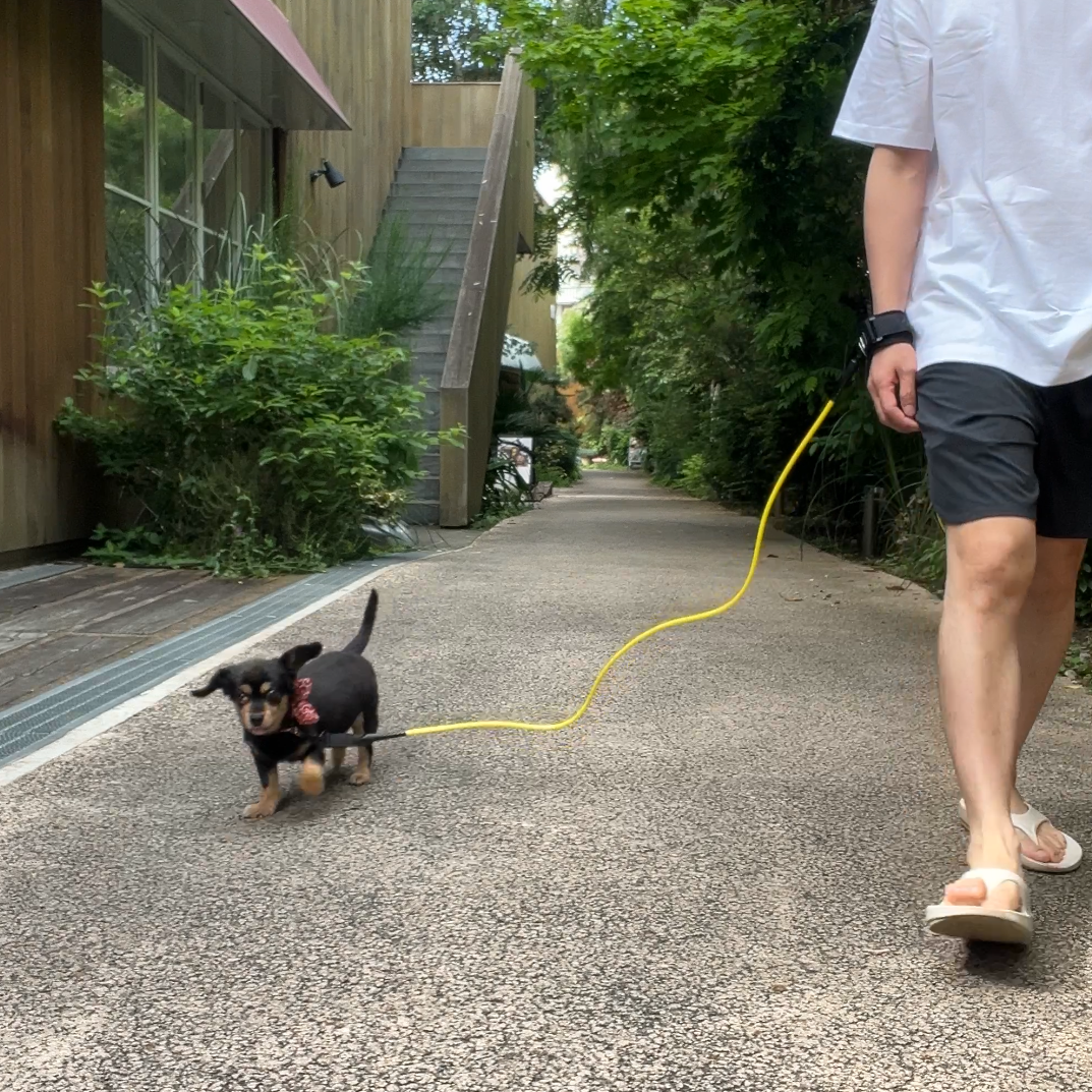 サーフィンで使用するリーシュコードをアレンジした、愛犬との散歩用リーシュ(リード)です。手で持つだけではなく、手首に固定することで両手をフリーにすることができます。パッケージデザインはアートディレクターHIROCK氏書き下ろしと、拘ったデザインでプレゼントにも喜ばれそうなアイテムです。