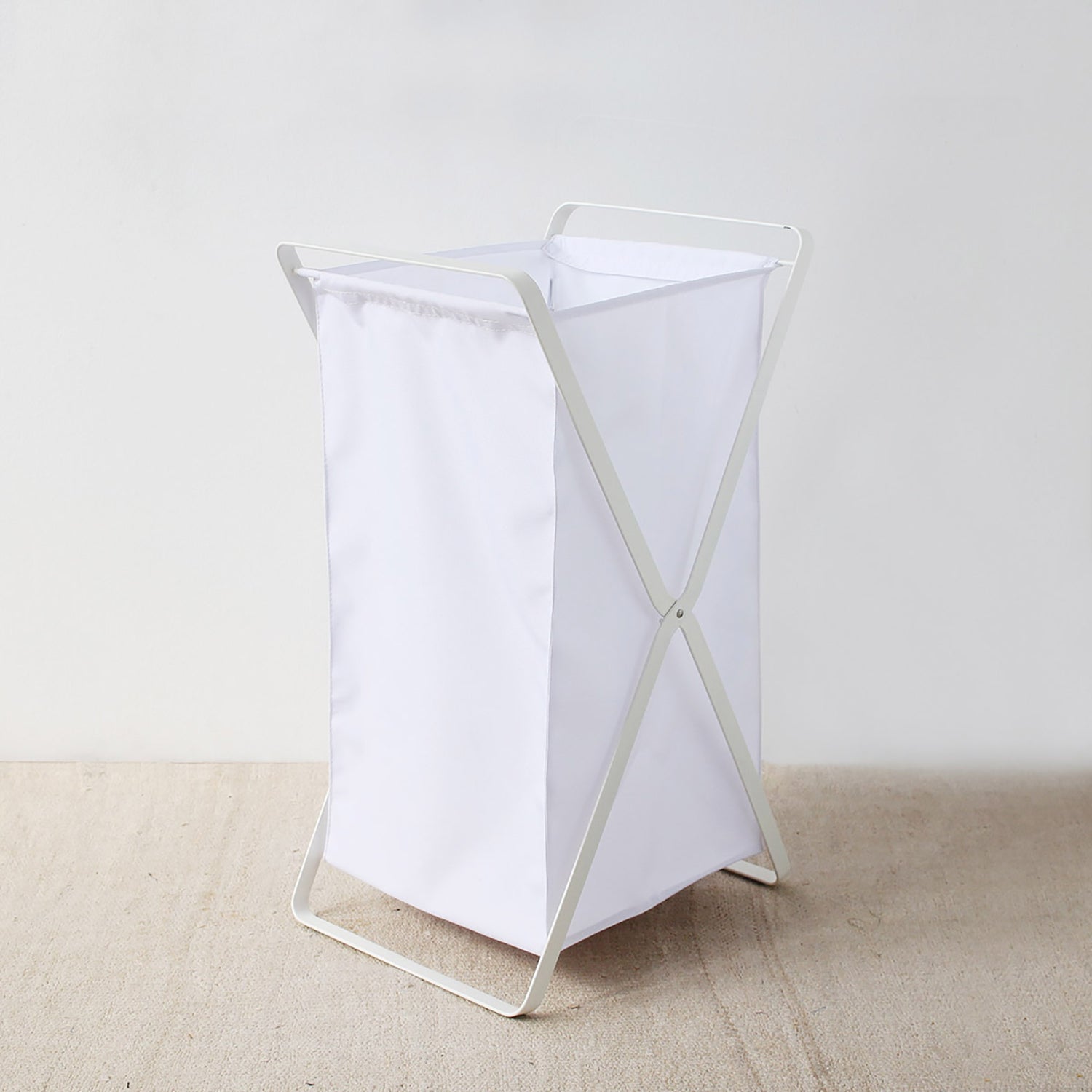 スチール製のフレームに、厚手で丈夫なポリエステル素材を組み合わせたランドリーバスケット。