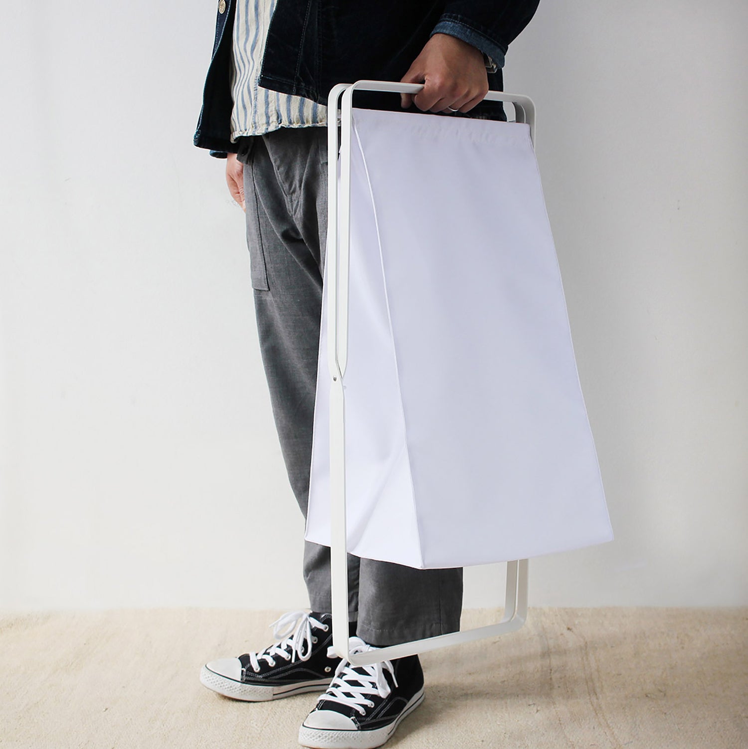 スチール製のフレームに、厚手で丈夫なポリエステル素材を組み合わせたランドリーバスケット。45Lの大容量でたくさんの衣類が入るので使い勝手は抜群。フレームは折りたたみができるため、片手で持ち運んだり、コンパクトに収納も。どんな空間にもすんなりと溶け込むシンプルなデザイン、確かな実用性が魅力のランドリーバスケットです。